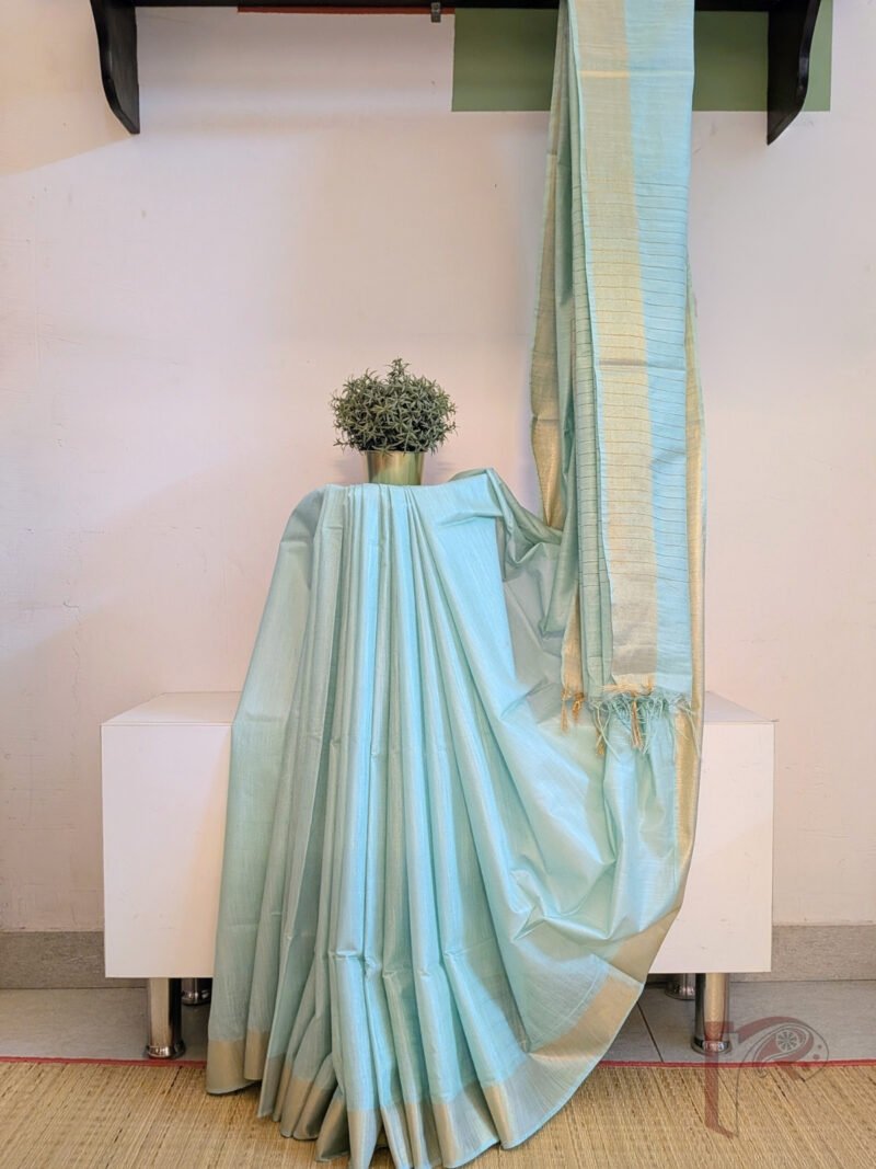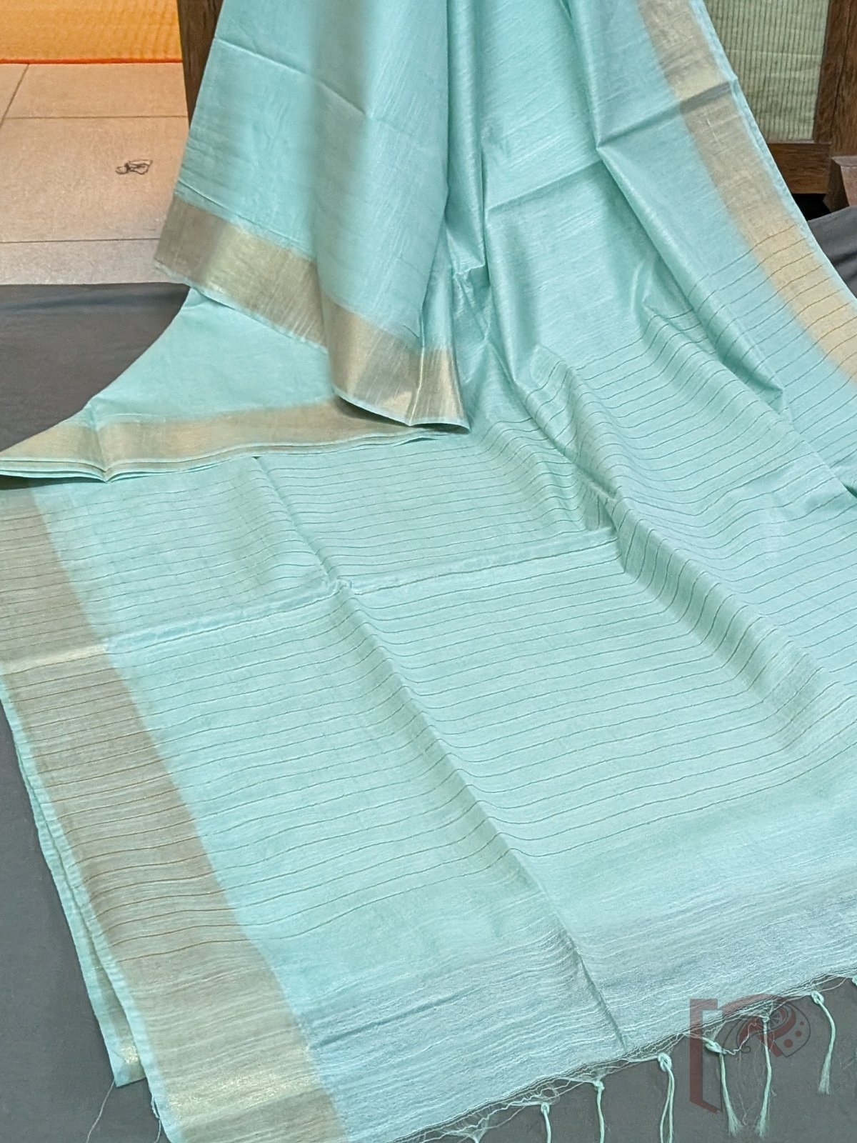 Woven in Bhagalpur, a region celebrated for its silk heritage, these sarees embody lightweight luxury, graceful drape, breathable silk texture, and subtle festive elegance. The running blouse pieces with zari accents allow effortless styling while maintaining continuity in design. Whether styled traditionally or with modern blouses, these sarees offer classic sophistication, effortless elegance, and year-round wearability.