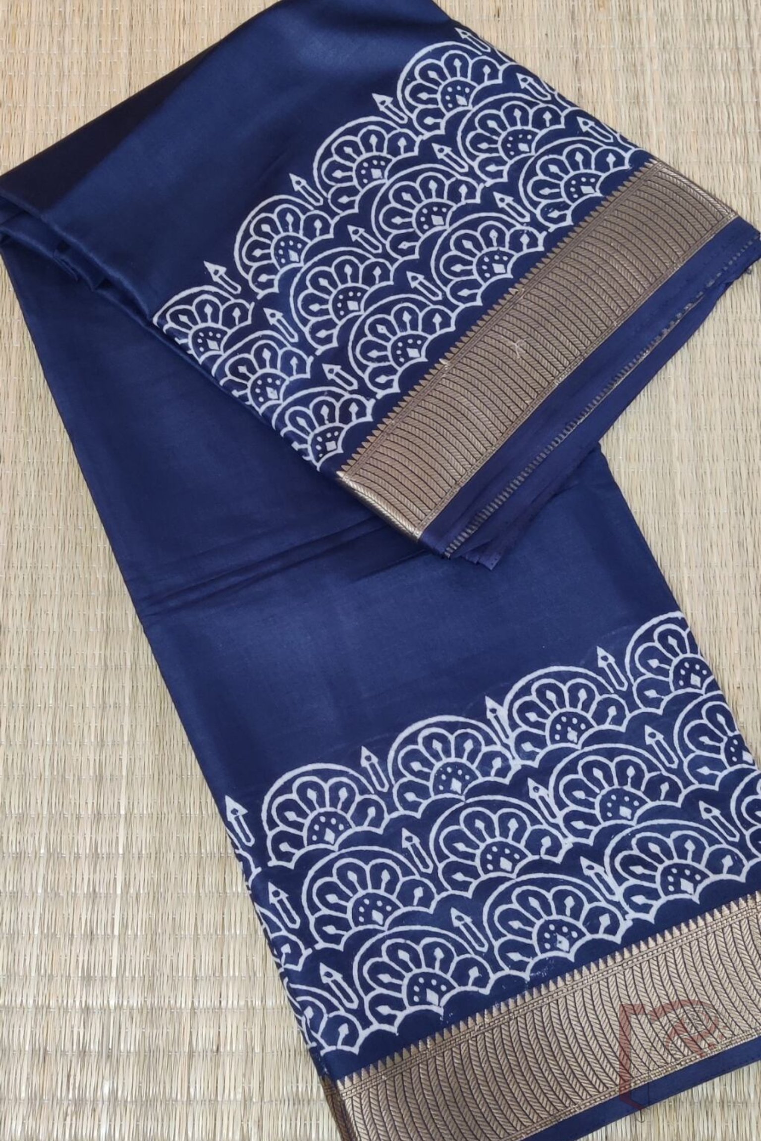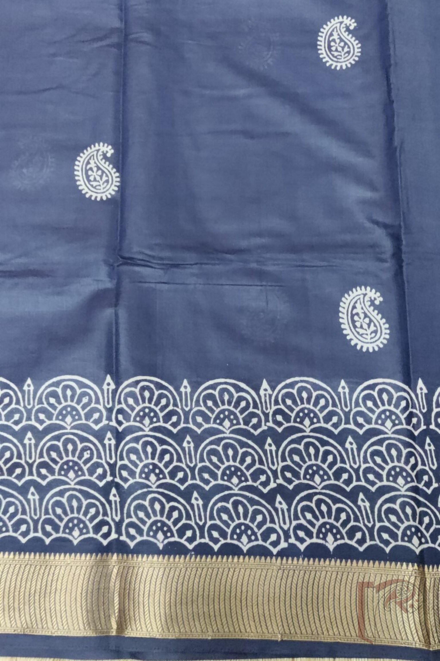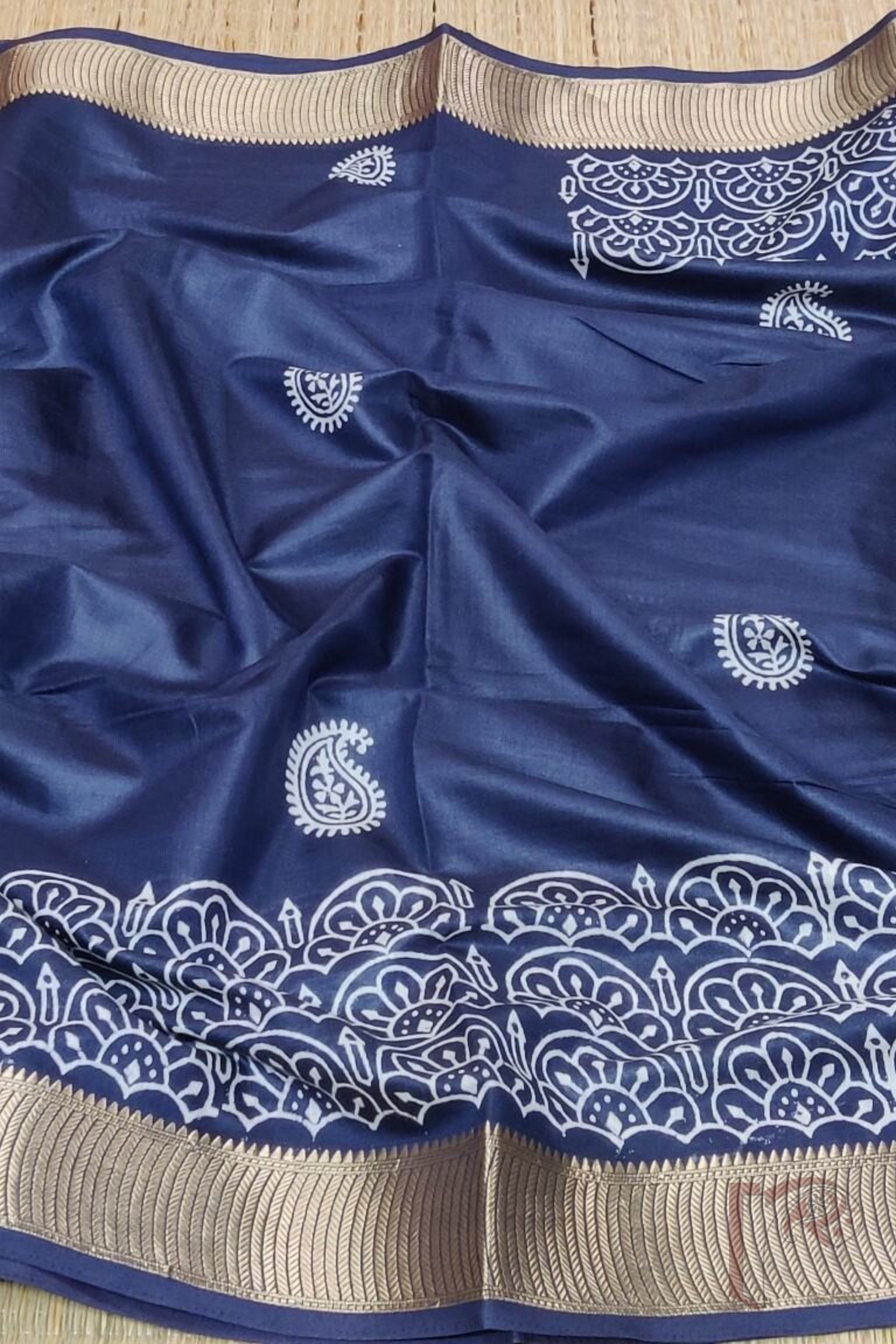 Ketia Kriti – Navy Blue Ketia Silk Saree with Mango and Arch Motifs