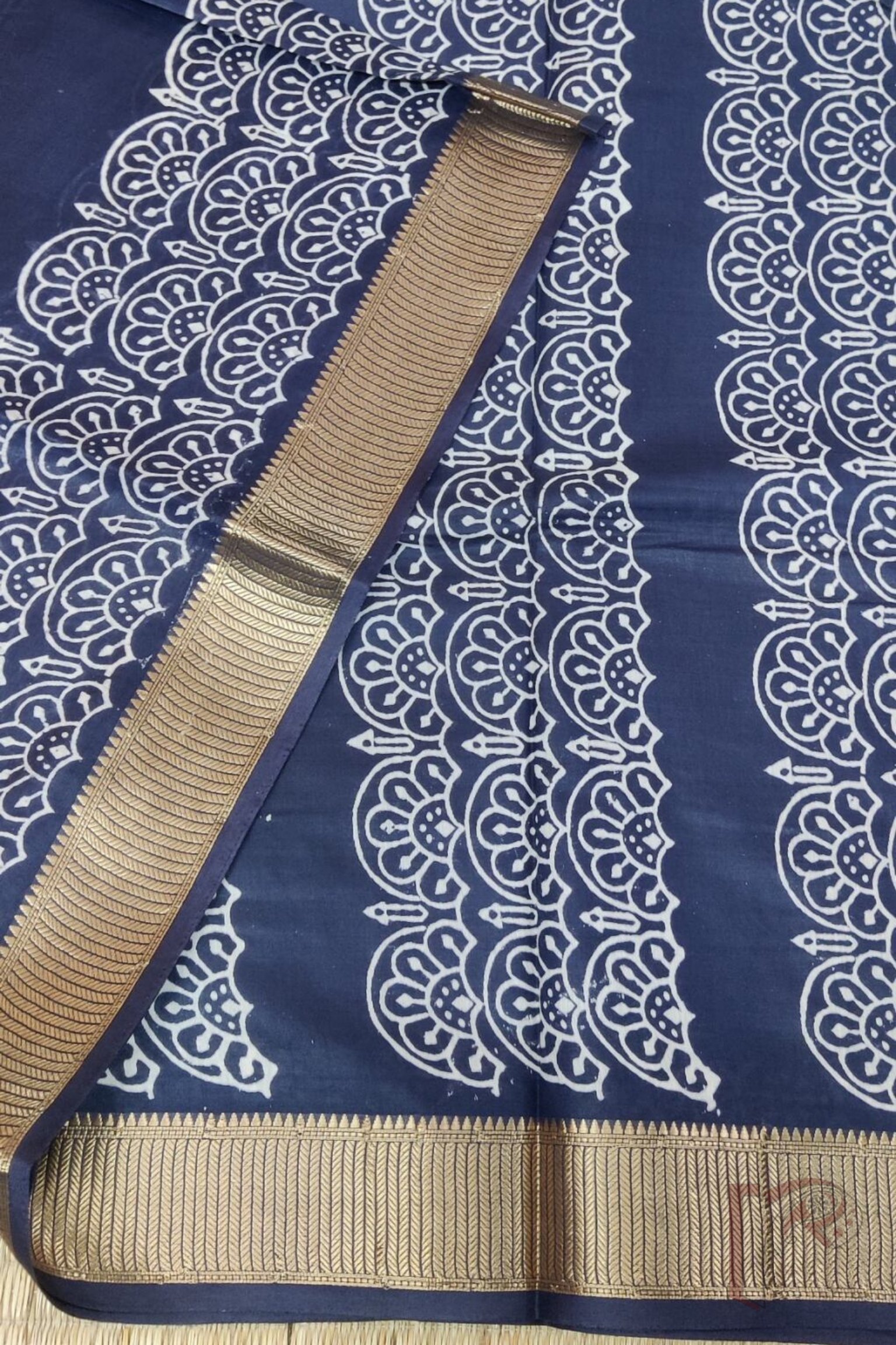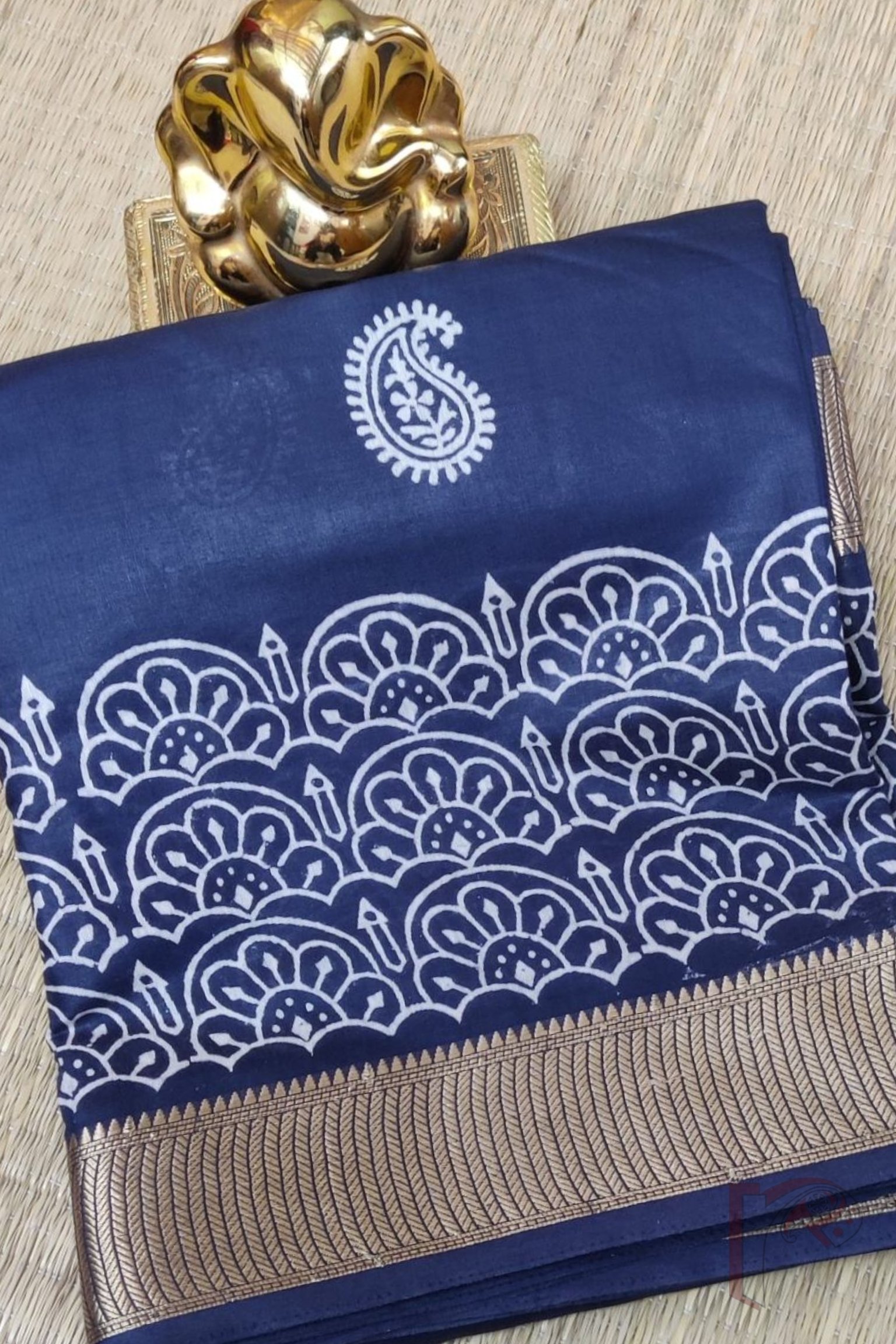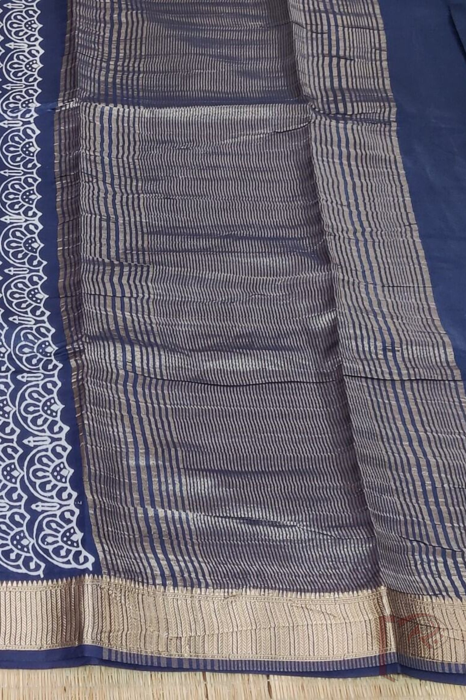 Ketia Kriti – Navy Blue Ketia Silk Saree with Mango and Arch Motifs