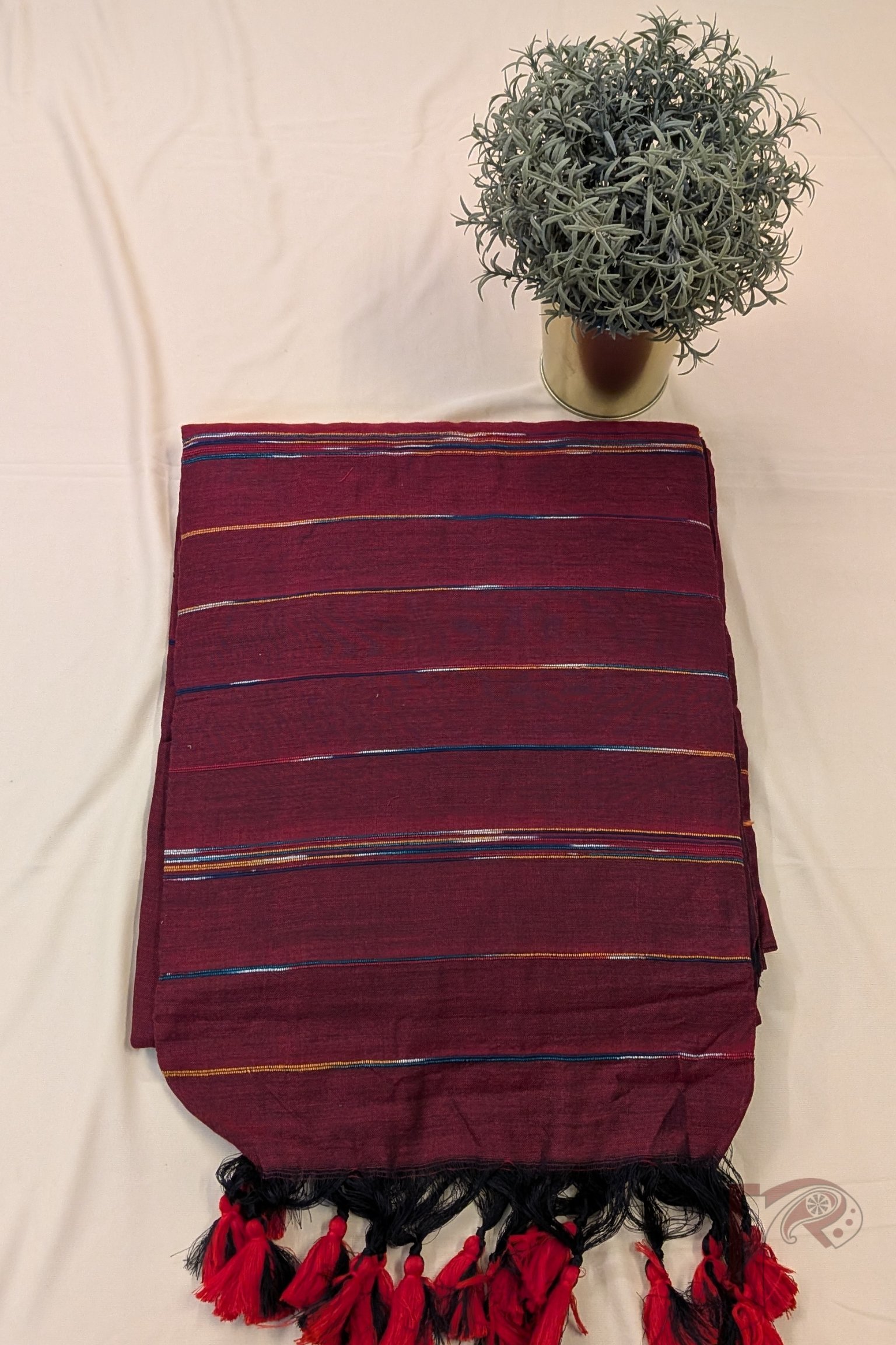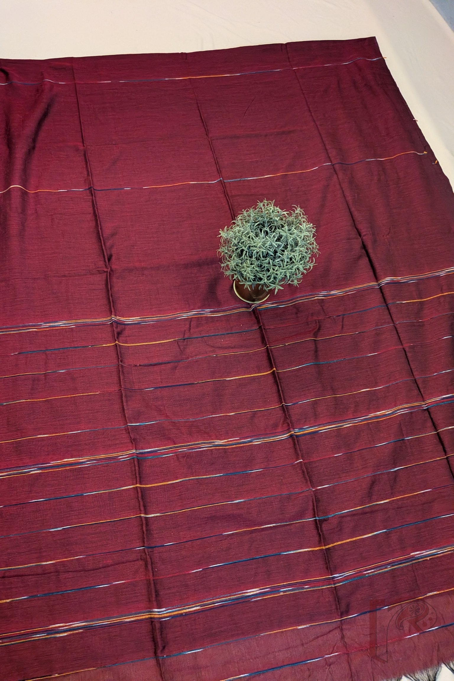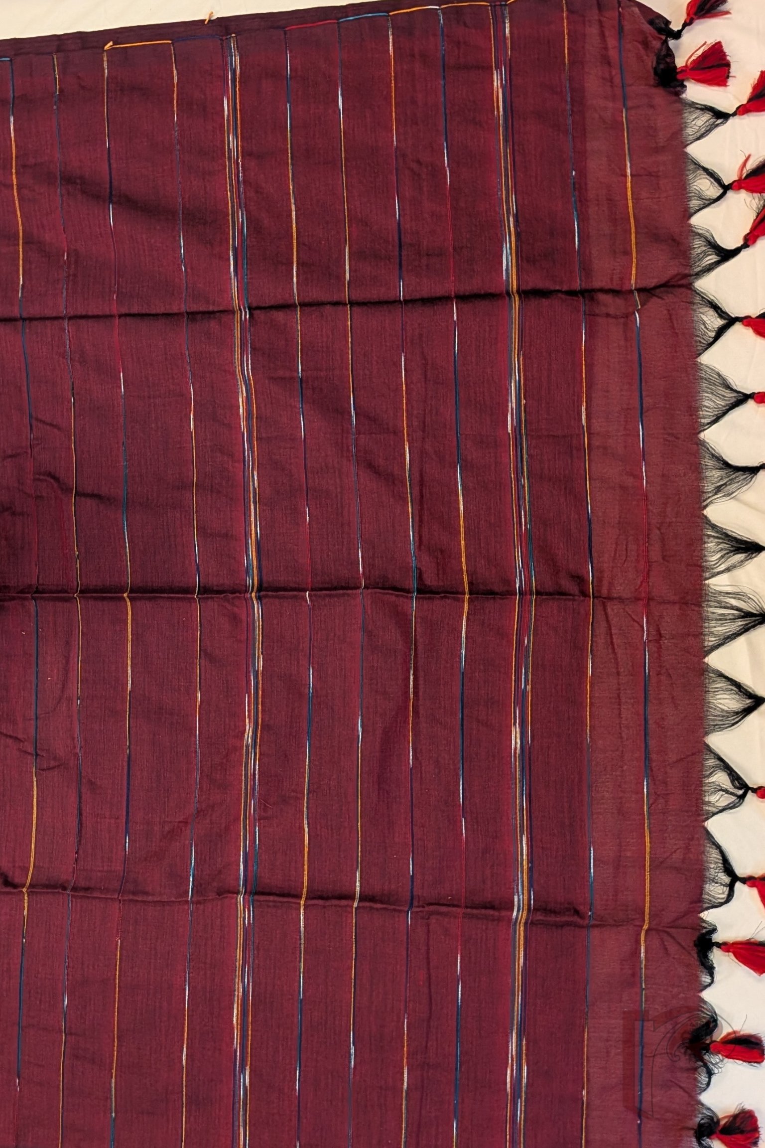 Khesh Katha: Maroon Khesh Cotton Saree with Multicolour Woven Line Pattern Saree