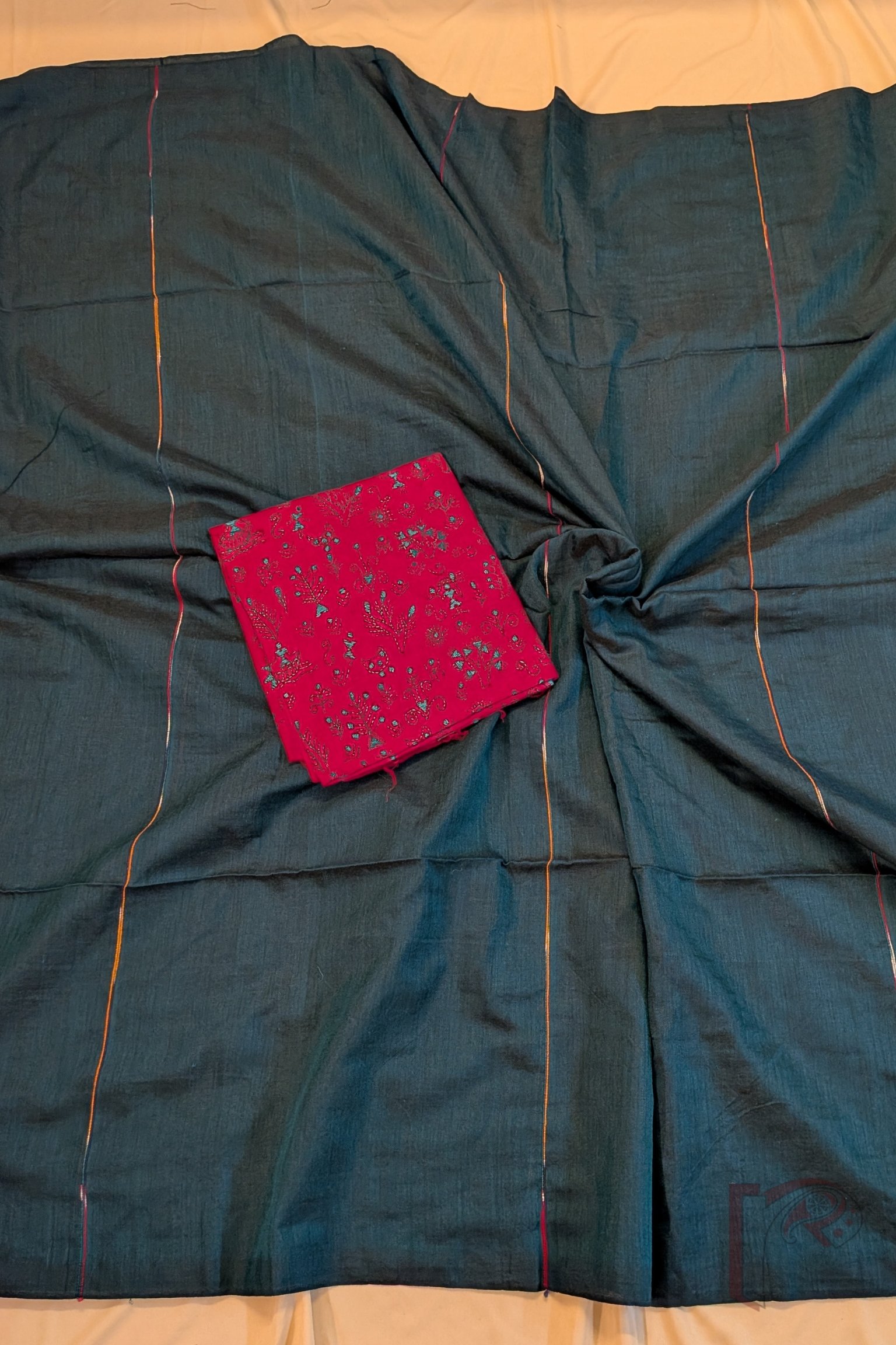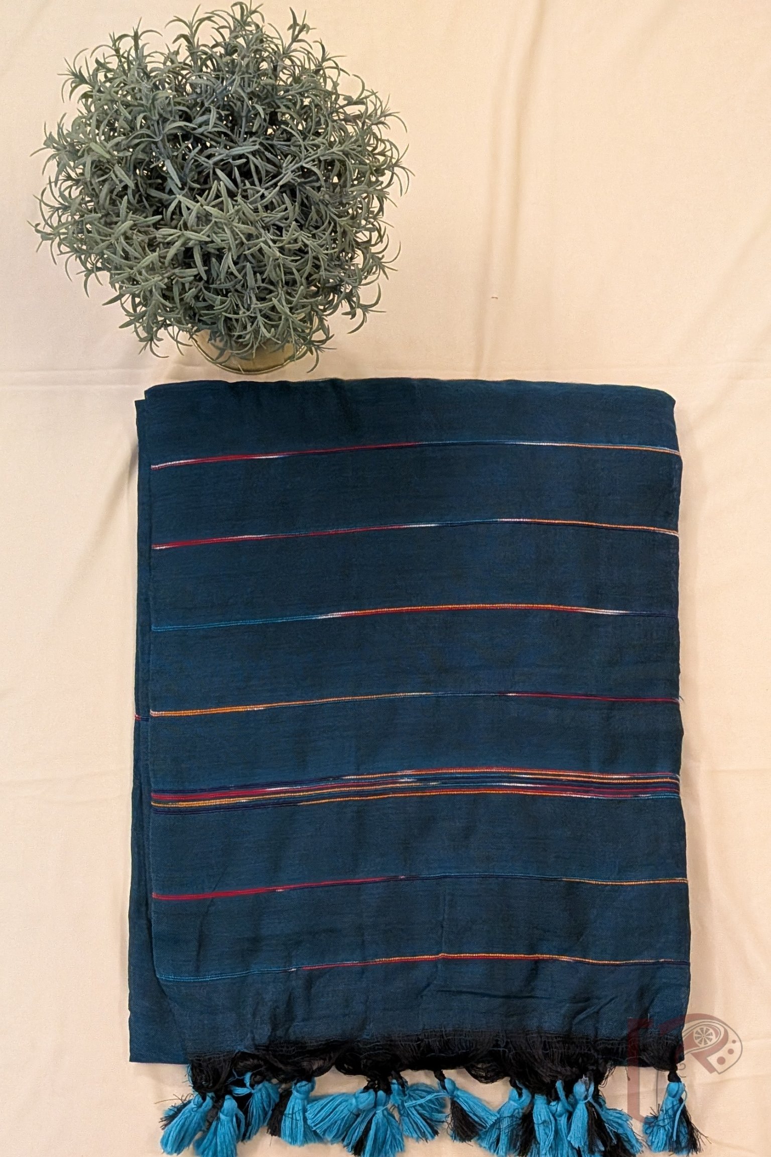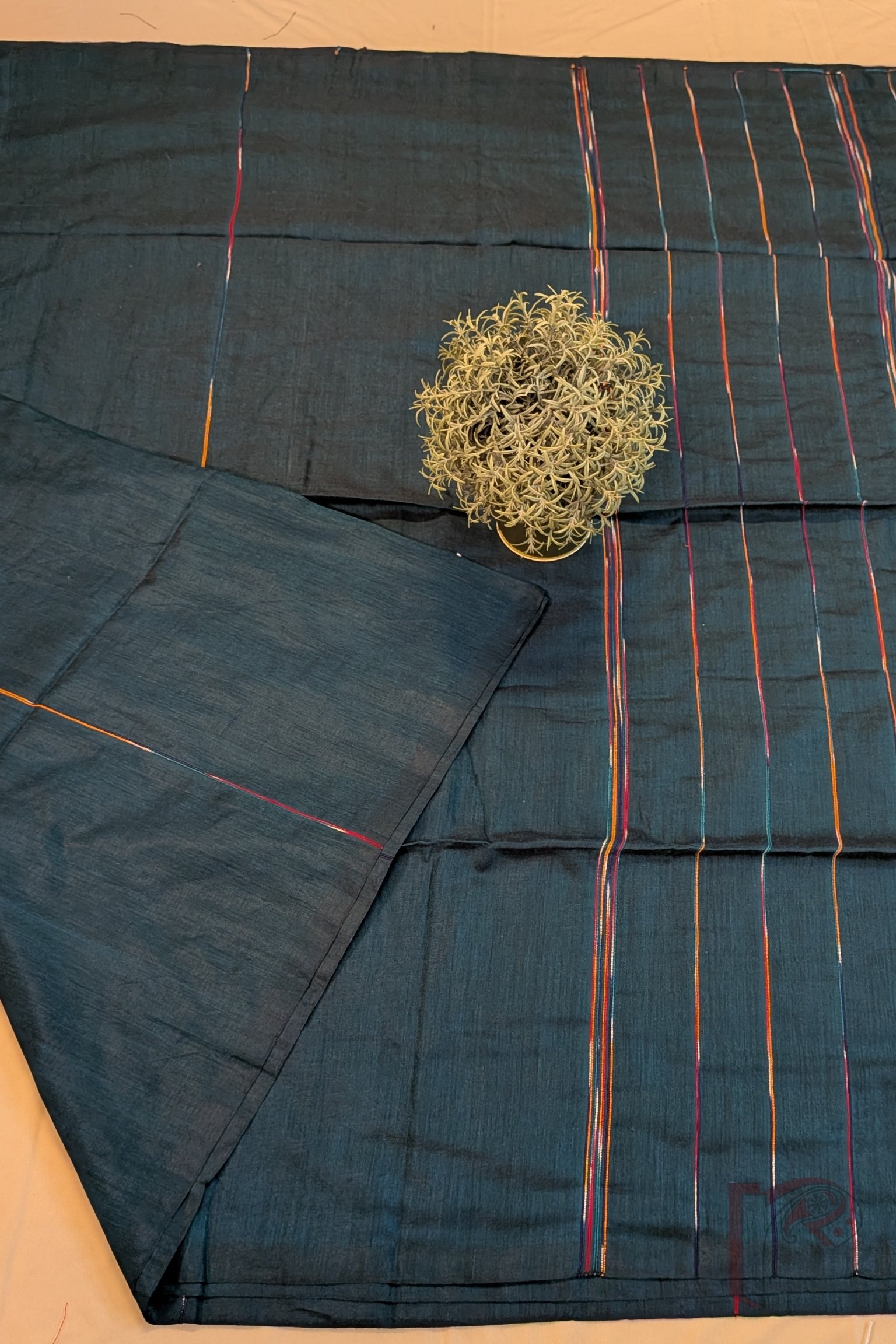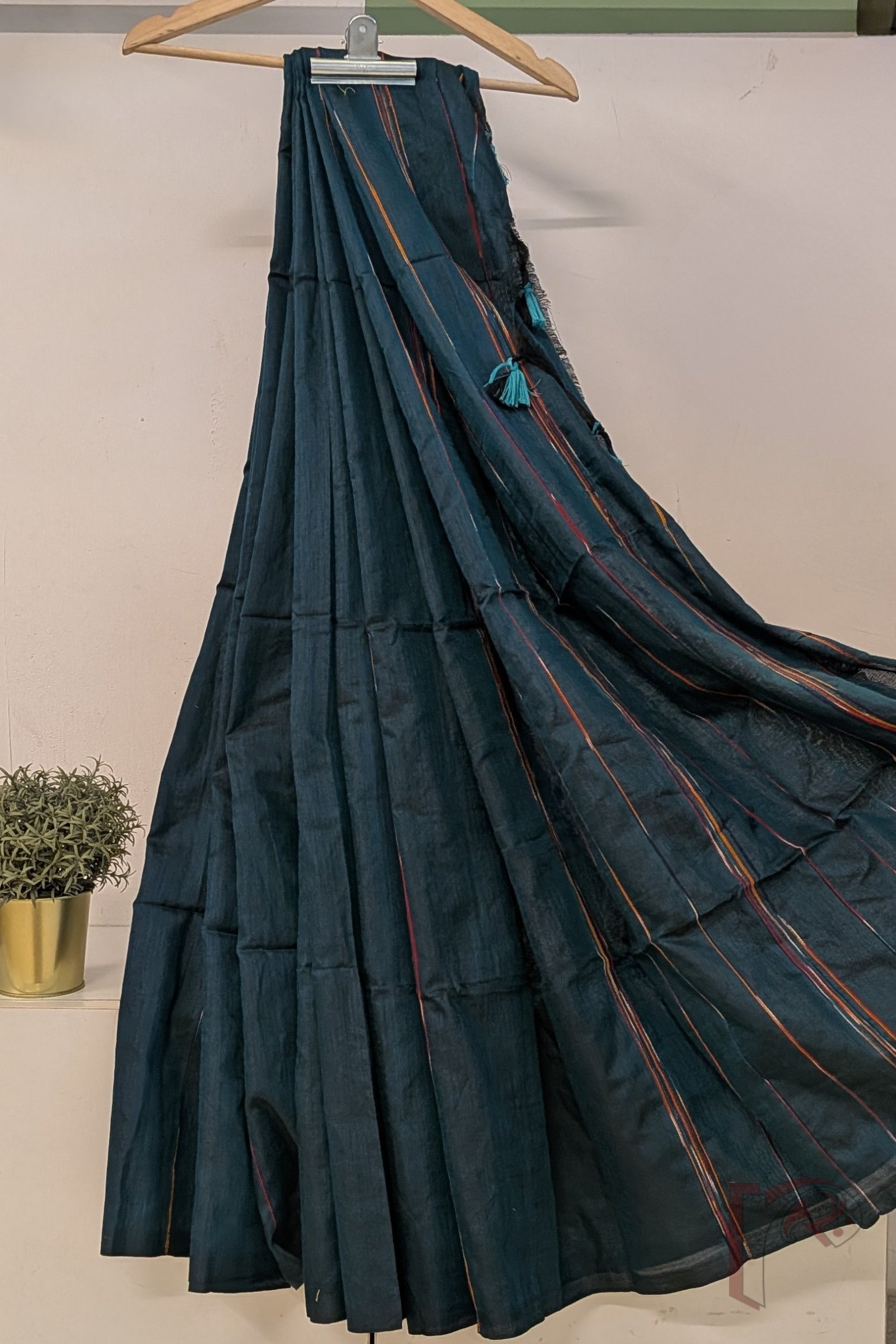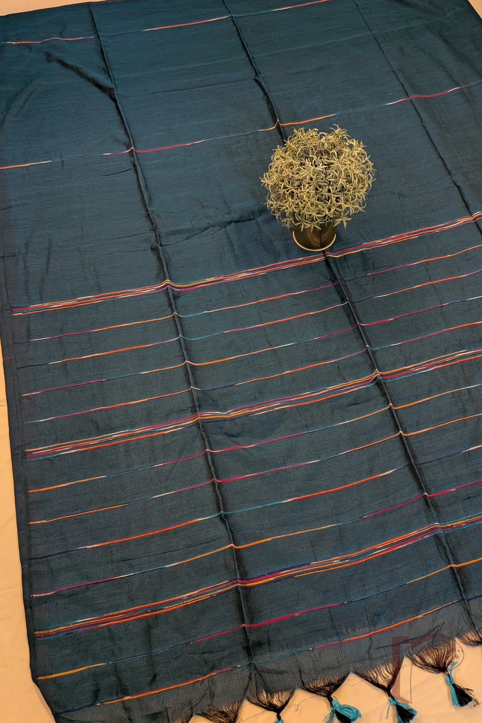 What makes these sarees truly special is their minimal yet artistic design, where the plain body is gently enhanced with multicolour woven thread lines running across the fabric. The spacing of the lines on the body creates a calm rhythm, while the pallu features the same lines placed closer together, forming a subtle visual statement. This understated design makes the saree incredibly versatile, allowing it to be styled effortlessly with printed, embroidered, or Kantha blouses, creating endless possibilities for personal expression.