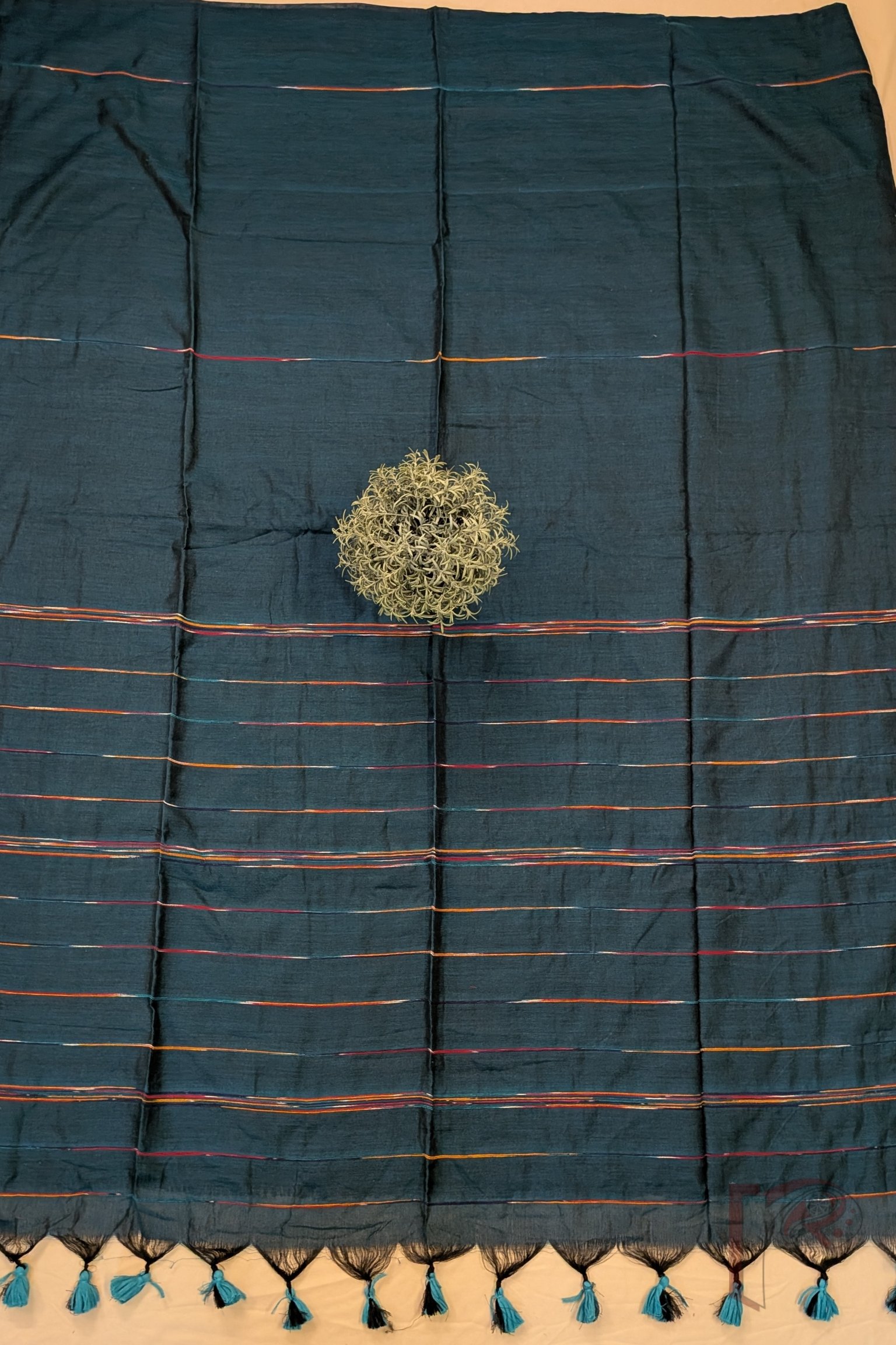 This smart sea green Khesh cotton saree exudes freshness and elegance with its soothing colour palette and subtle design. The plain body is adorned with multicolour woven thread lines placed gracefully apart, creating a calm visual flow across the fabric. The pallu is enhanced with closely grouped woven lines that add texture and depth to the drape. Crafted using the traditional Khesh weaving technique, the saree features a beautifully rustic handloom texture and sustainable charm. Its versatile simplicity allows it to pair effortlessly with printed, block print, or Kantha blouses, making it a stylish everyday choice.