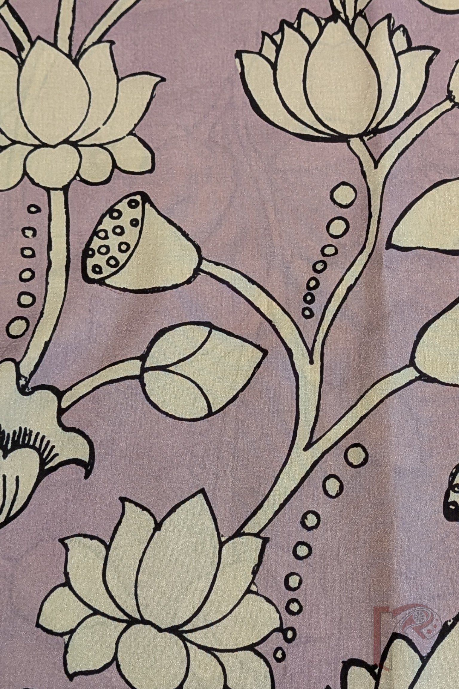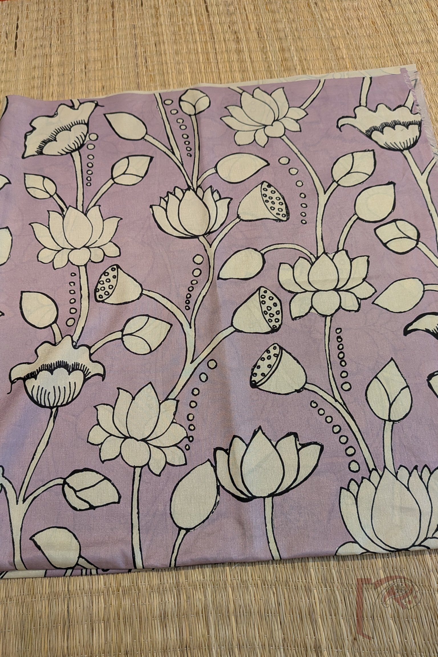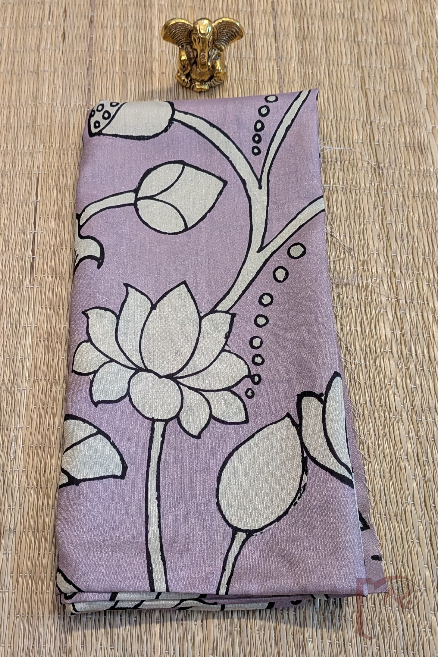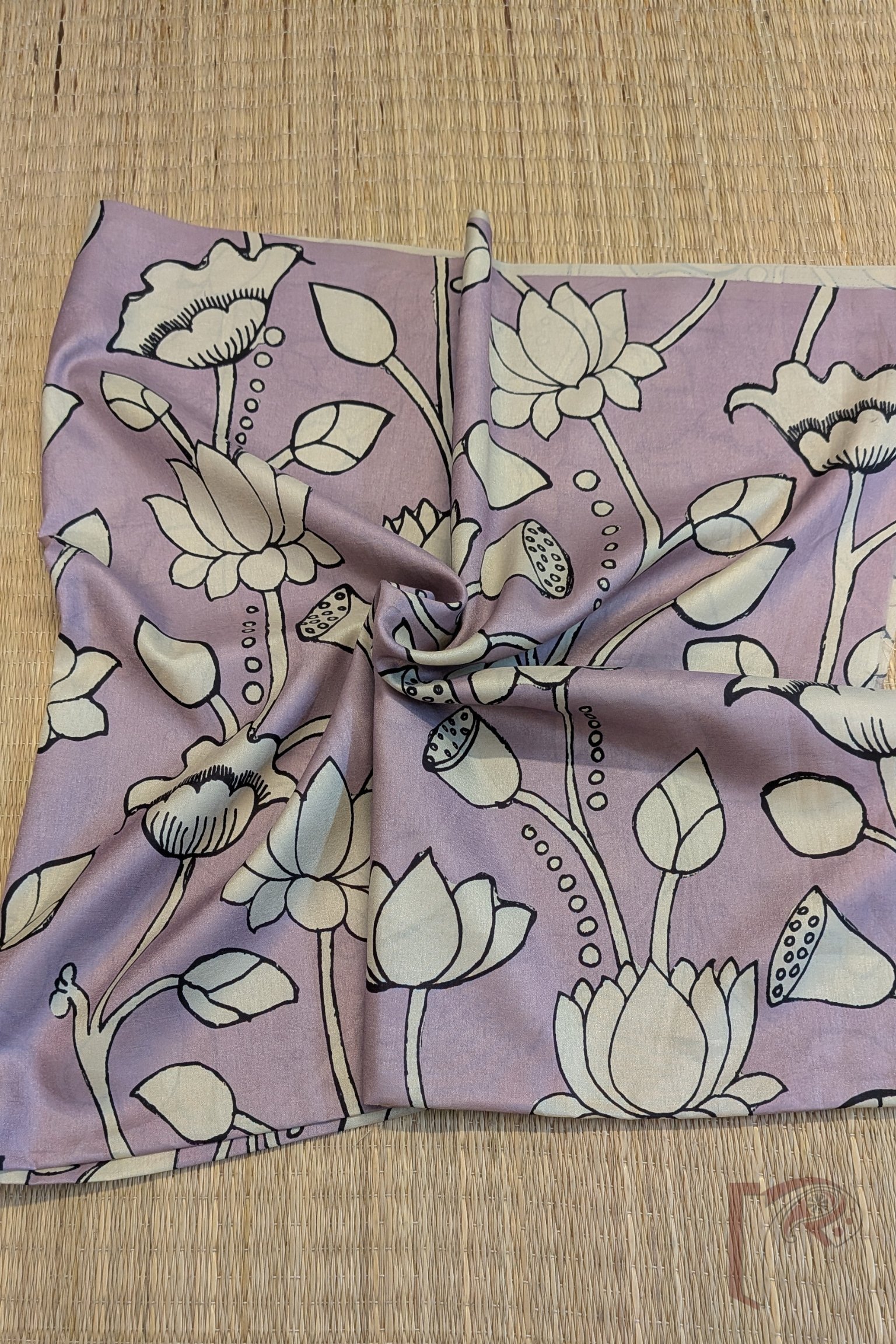 Lavender Dupion Silk Kalamkari Blouse with Lotus and Bud Motifs