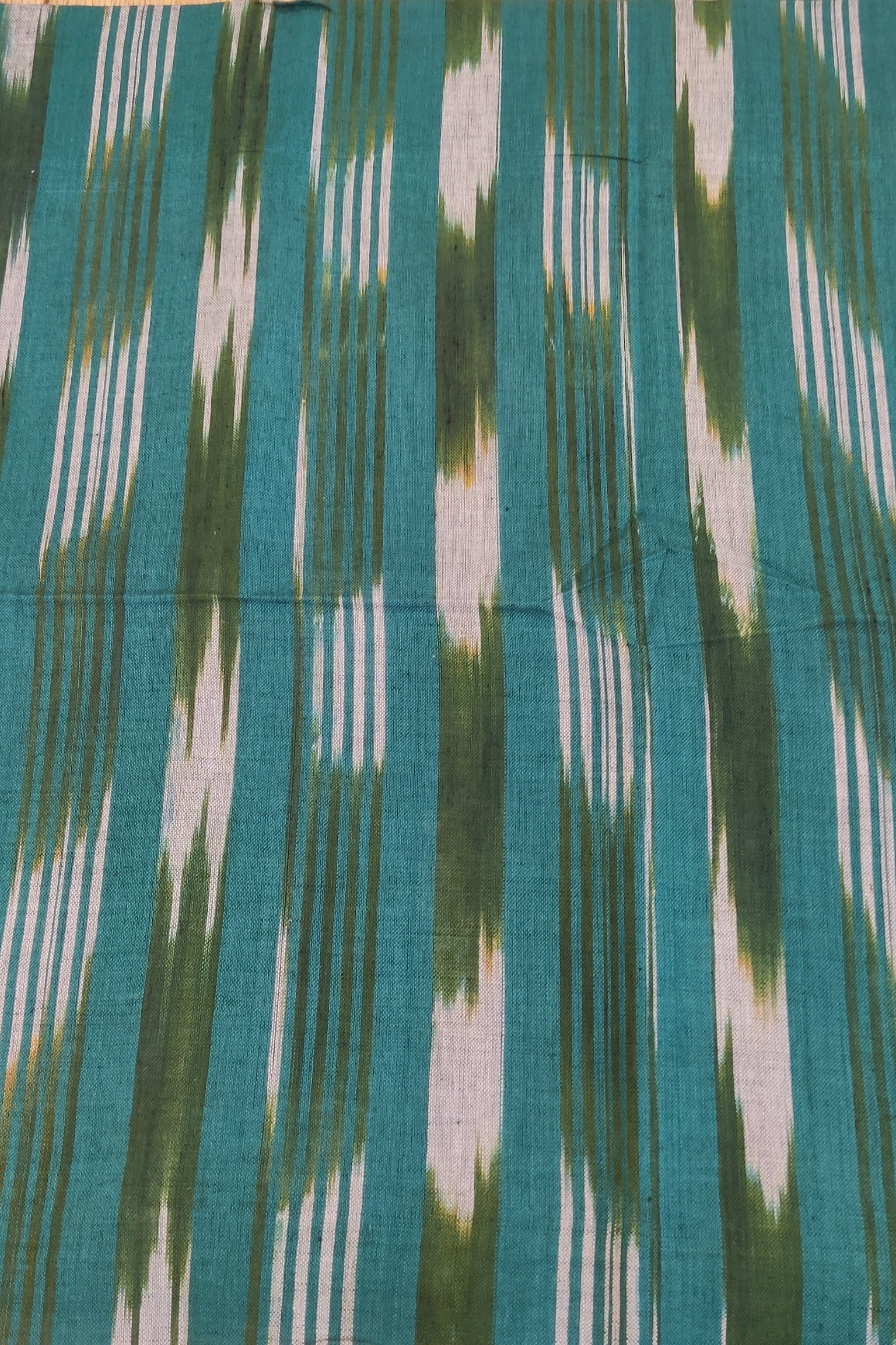 Leaf Green Sambalpuri Cotton Ikkat Blouse Piece with Dark Green White Thick Stripes