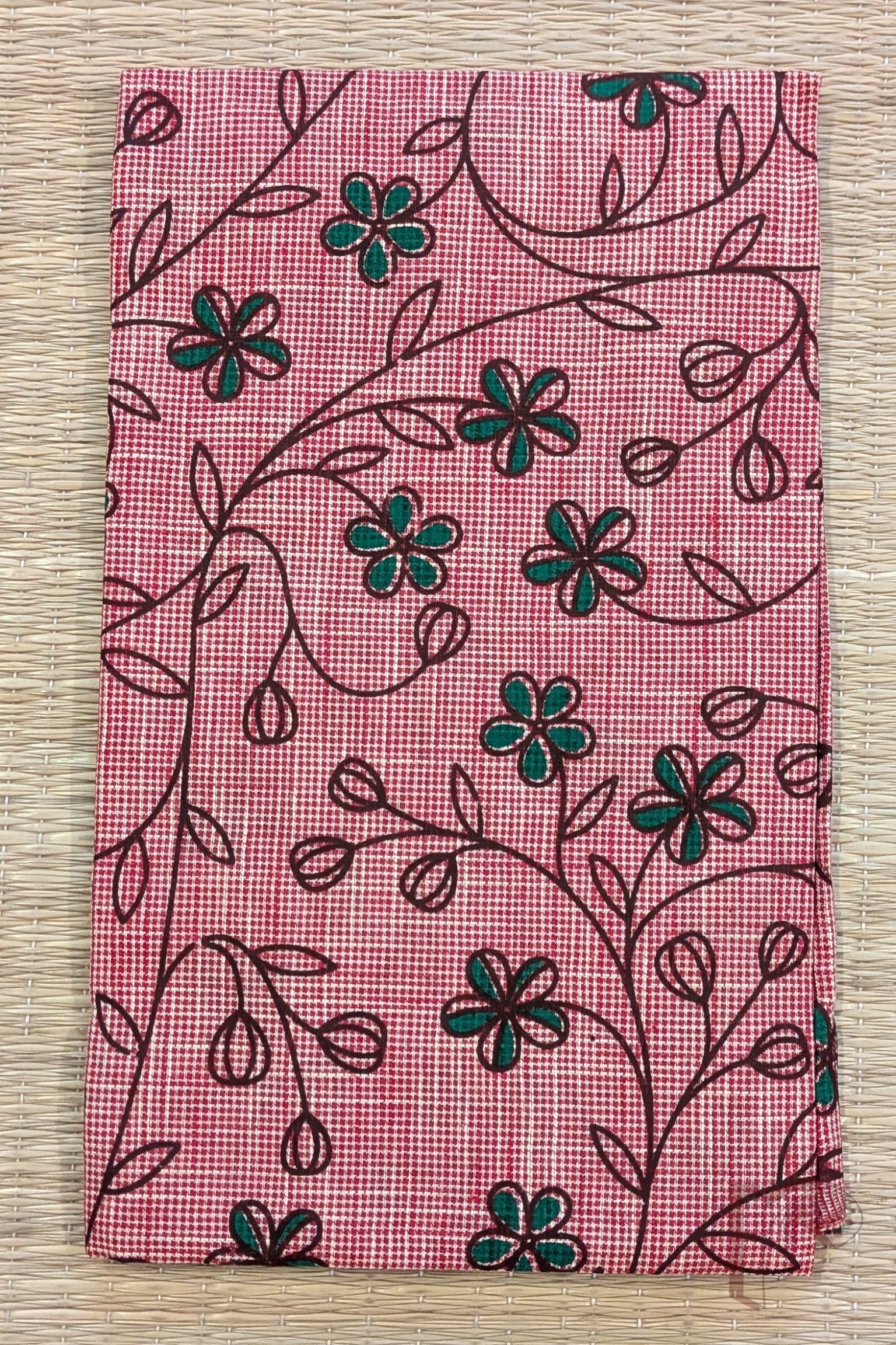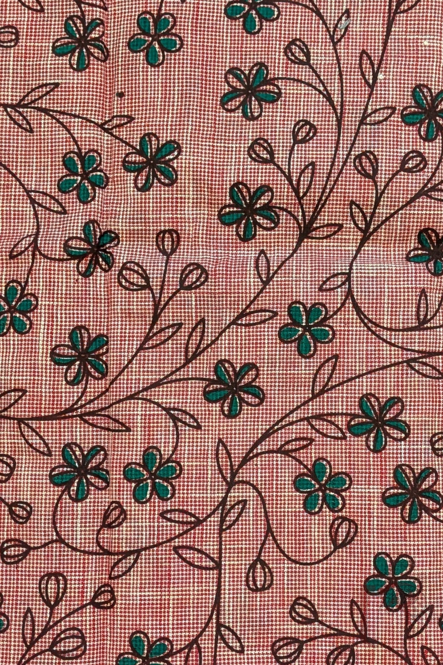 Light Maroon South Cotton Handloom Blouse with Green and Coffee Brown Floral Stem Print