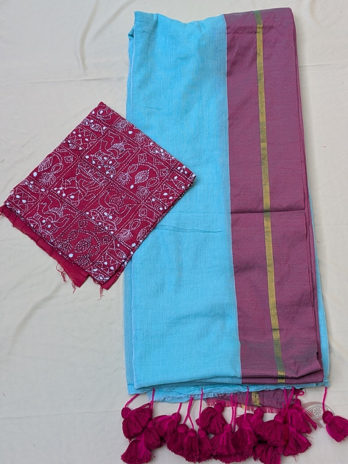 Designed for styling flexibility, these sarees come without a blouse piece, allowing you to pair them with hand embroidered blouses, printed cotton blouses, or classic south cotton styles. With their soft texture, minimal borders, and graceful drape, these khadi cotton sarees are perfect for those who appreciate comfort-driven elegance and handcrafted beauty.