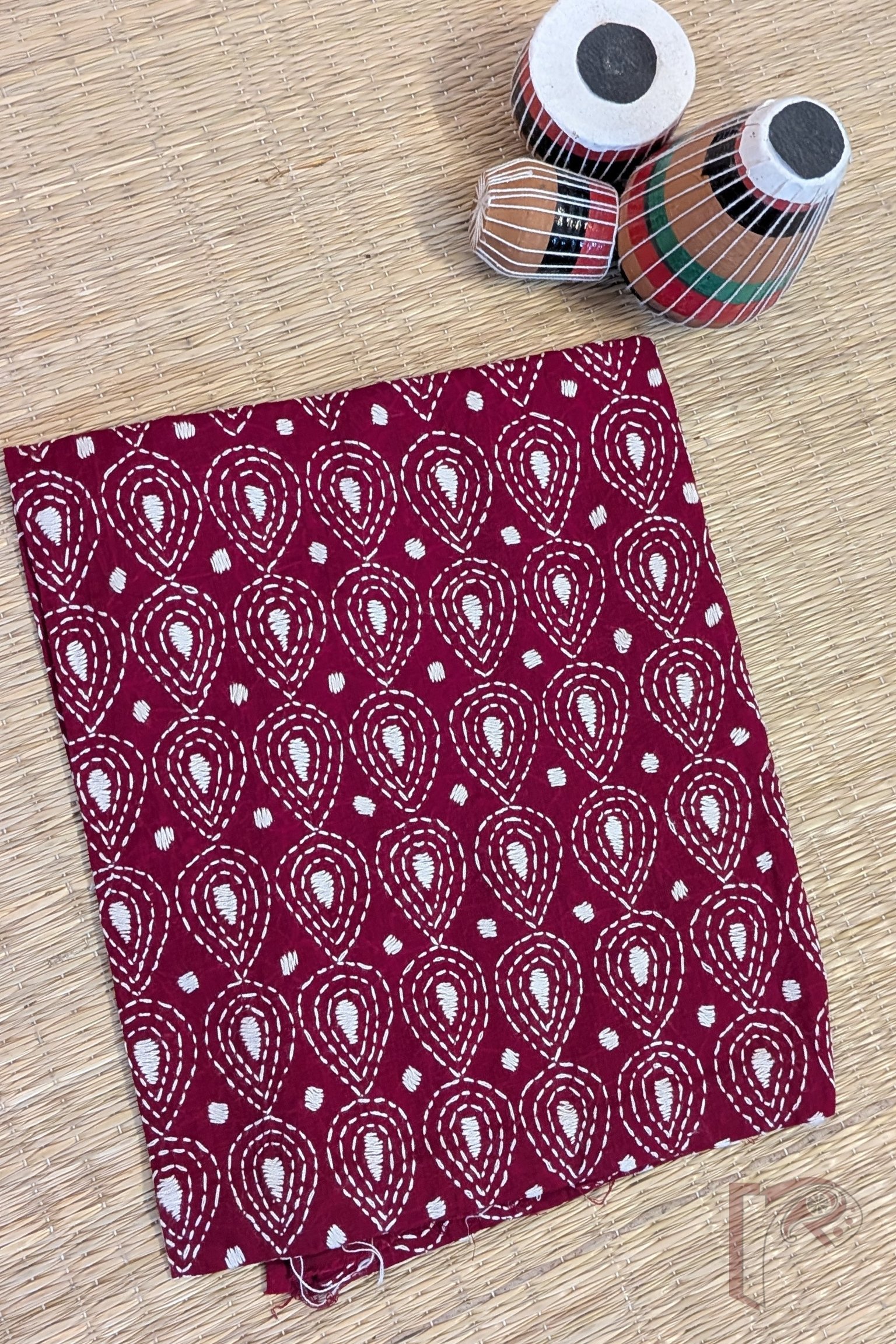 Maroon Cotton Blouse with White Tear Drop and Circular Kantha Motifs