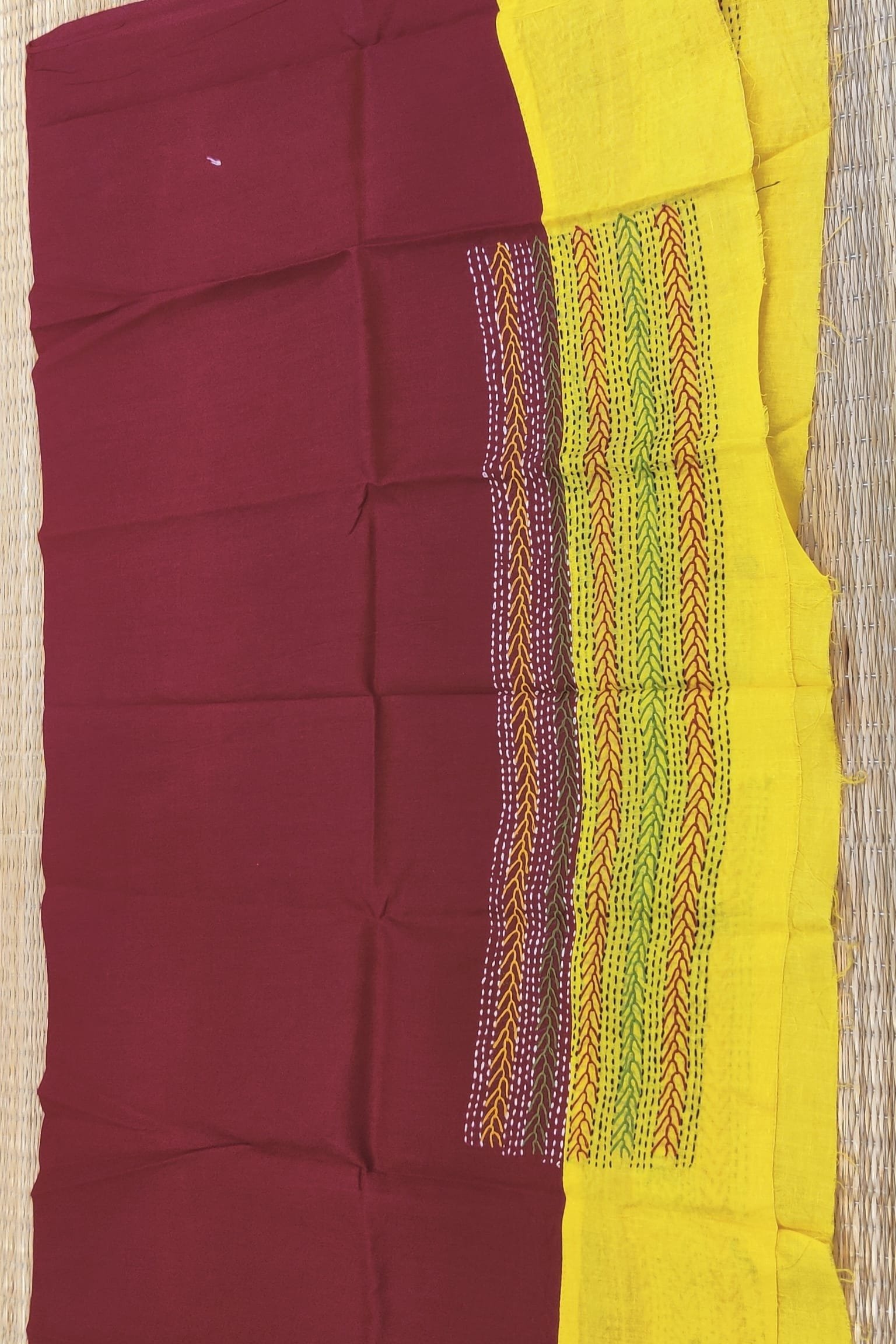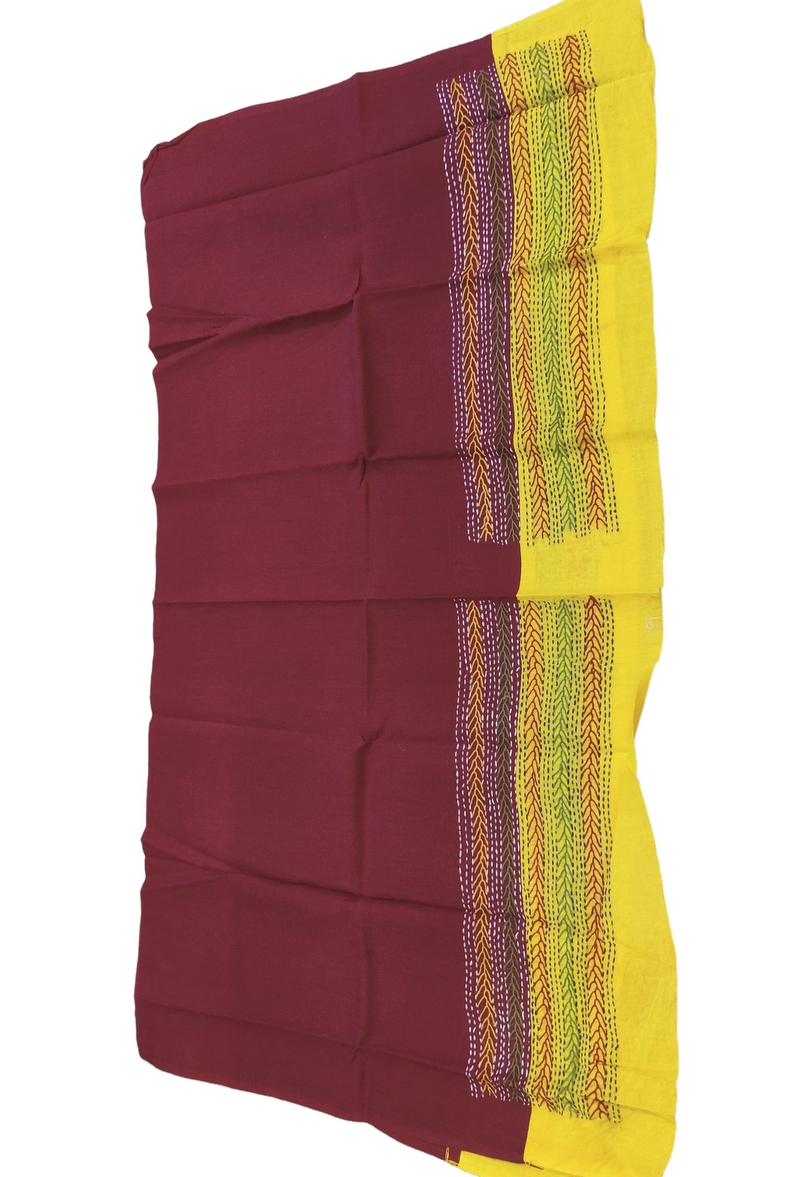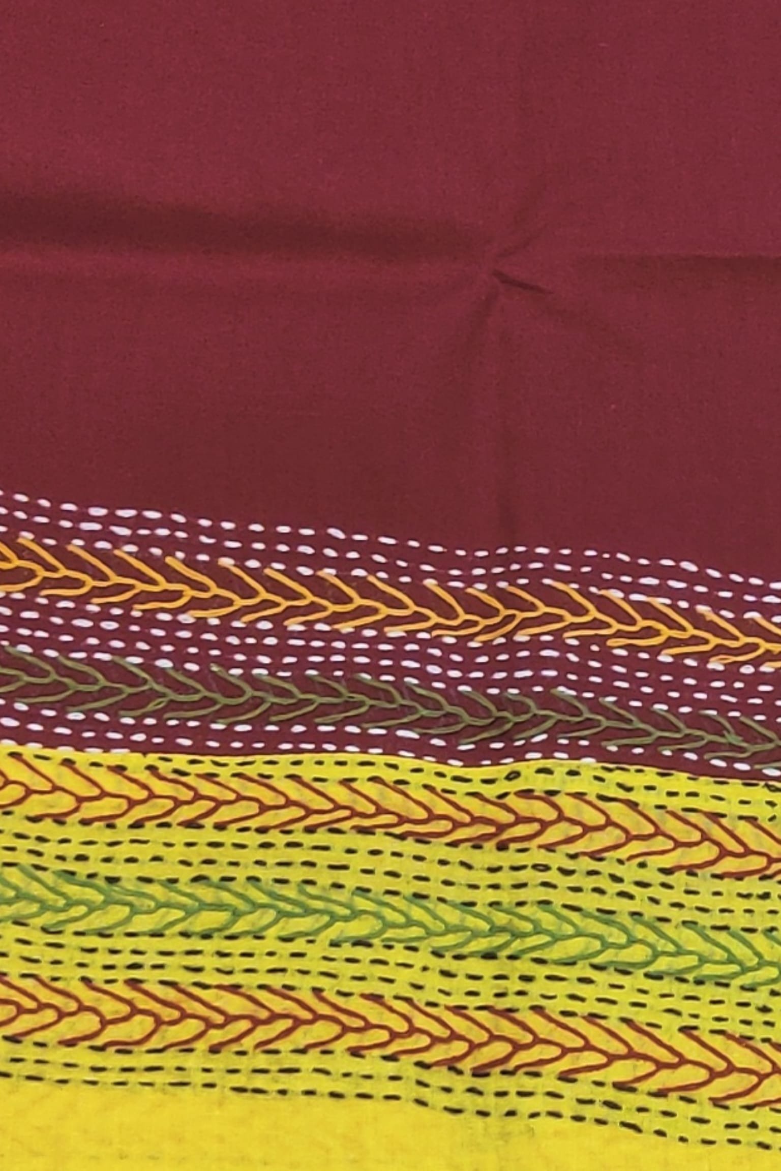 Maroon Cotton Blouse with Yellow Attached Border and Multicolour Hand Embroidery