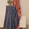 This rich fudge brown Mulmul cotton saree is a striking fusion of earthy tones and vivid detailing. The body features a beautifully balanced Ajrakh-style leaf print and geometric triangle motifs, all hand block-printed in a bold burnt orange hue. These vibrant patterns add visual rhythm and warmth to the deep brown base, giving the saree a sophisticated yet grounded charm. The border mirrors the saree’s base colour and carries the same orange block prints, ensuring continuity and understated elegance. Accompanied by a matching blouse with coordinated block print, this saree is an ideal choice for art lovers, conscious dressers, and those who appreciate traditional craft with a contemporary twist.