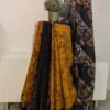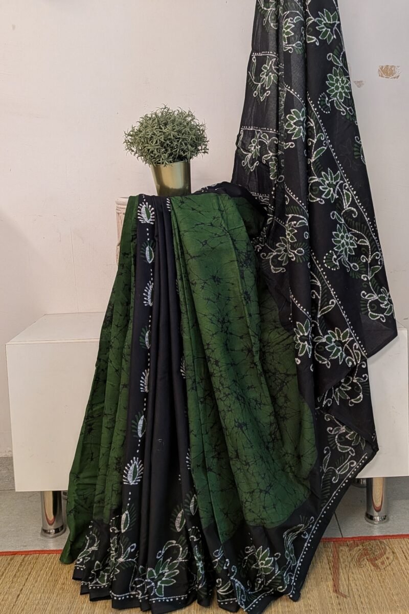 Mulmul Muse – Green and Black Half & Half Hand Batik Mulmul Saree with Floral Motifs