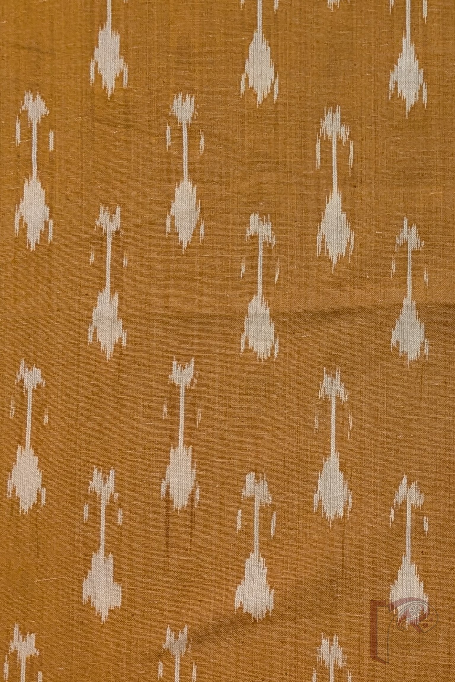 Bright and cheerful, this mustard yellow Ikkat cotton blouse piece displays delicate flower bud motifs on slender stems woven in cream. The warm mustard tone beautifully complements the soft cream detailing, creating a balanced and radiant look. Made with fine quality cotton and intricate motif placement, this piece brings together vibrancy and traditional charm effortlessly.