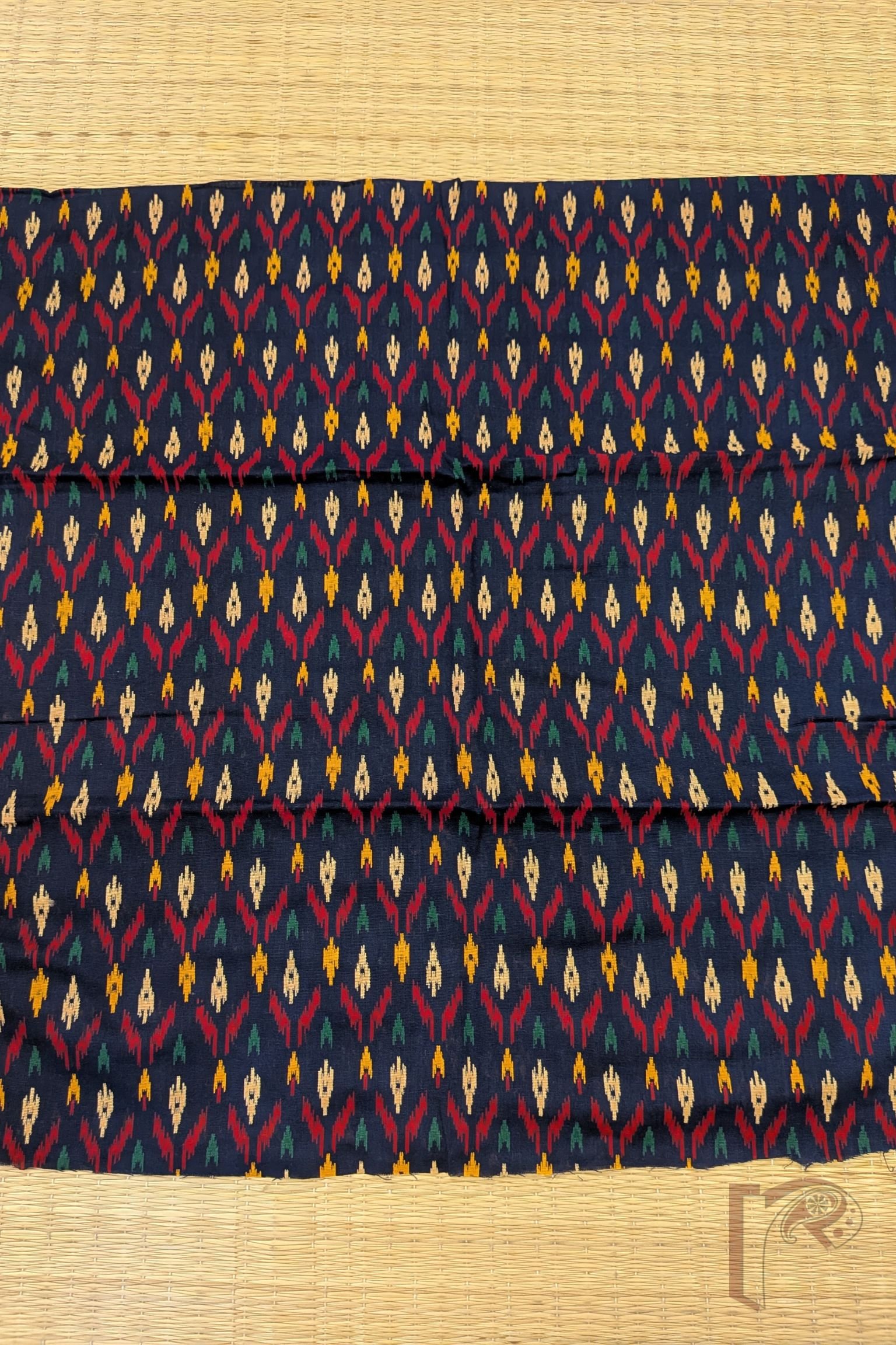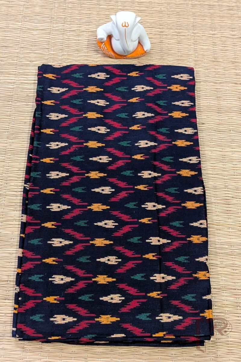 Navy Blue Cotton Bandhej Blouse Piece with Multicolour Ikat Pattern
