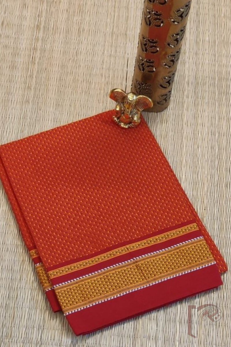 Orange and Red Khun Weave Ilkal Blouse Piece with Golden-White Thread Border
