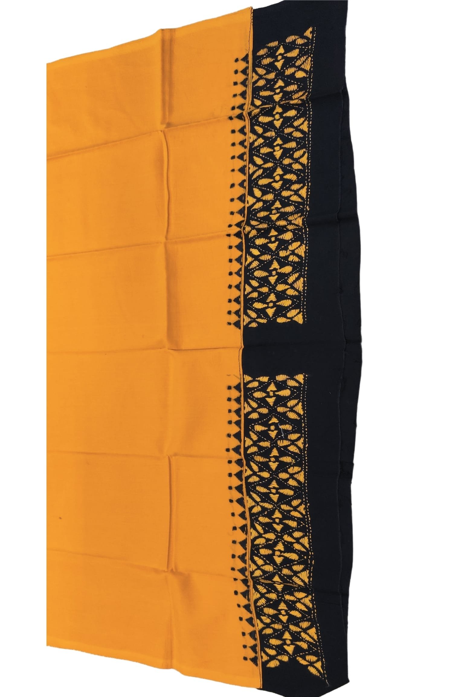 A striking orange cotton blouse enhanced with a black cotton attached border, this piece offers a bold contrast that stands out beautifully. The blouse is carefully hand embroidered, adding subtle detailing that elevates its handcrafted appeal. Perfect for mixing and matching, this blouse pairs effortlessly with handloom sarees, textured cottons, and even silks. The soft cotton fabric ensures ease of wear while the thoughtful embroidery creates a smart, versatile, and stylish ethnic look suitable for everyday elegance or festive occasions.