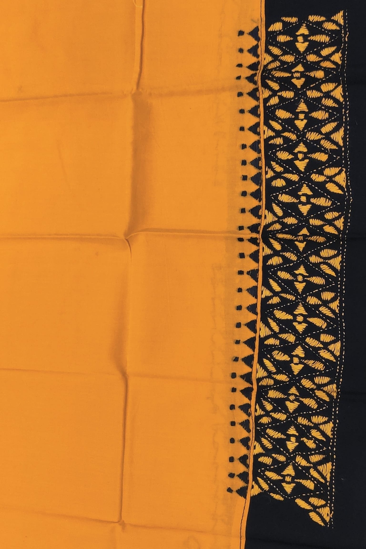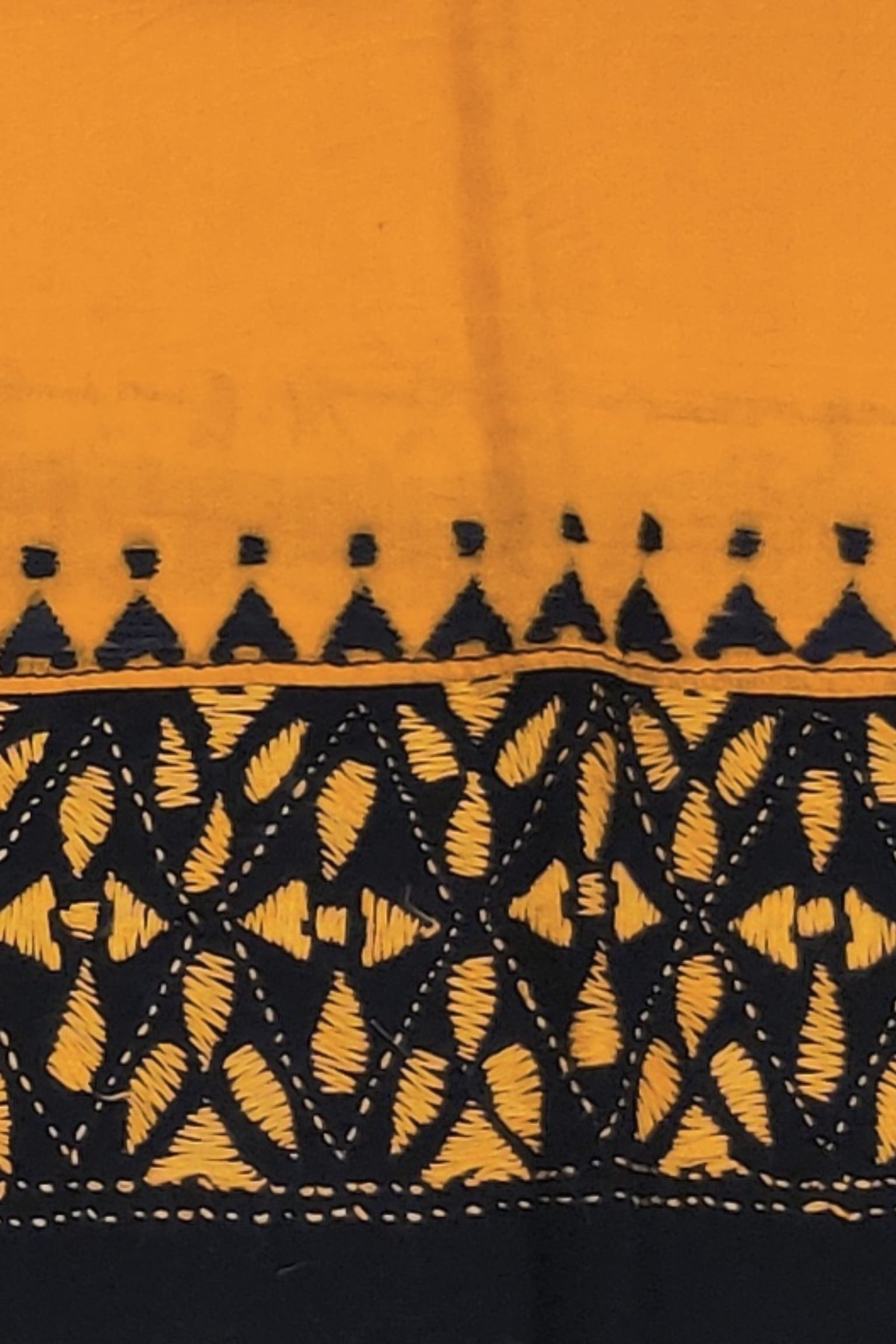 Orange Cotton Blouse with Black Attached Border and Hand Embroidery