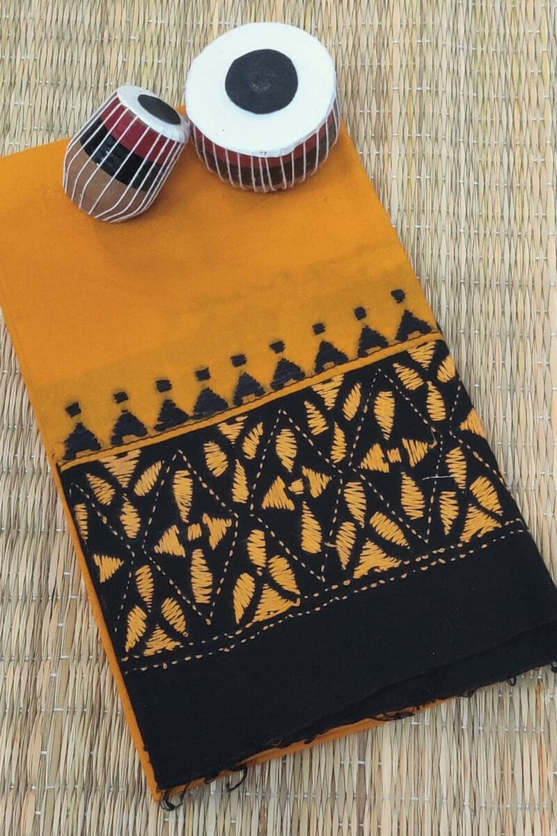 The subtle yet captivating Kantha embroidery adds a layer of texture and artistic appeal, making these blouse pieces versatile for both casual and festive wear. Their soft, breathable cotton ensures comfort while maintaining a refined, polished look. Whether you’re looking to add a pop of color to your wardrobe or embrace the elegance of traditional Indian craftsmanship, these unstitched Kantha blouse pieces offer endless possibilities for creating your own personalized style statement. Perfect for those who appreciate fine detailing, vibrant colors, and the charm of handmade artistry, these blouses bring a touch of West Bengal’s cultural richness to your wardrobe.