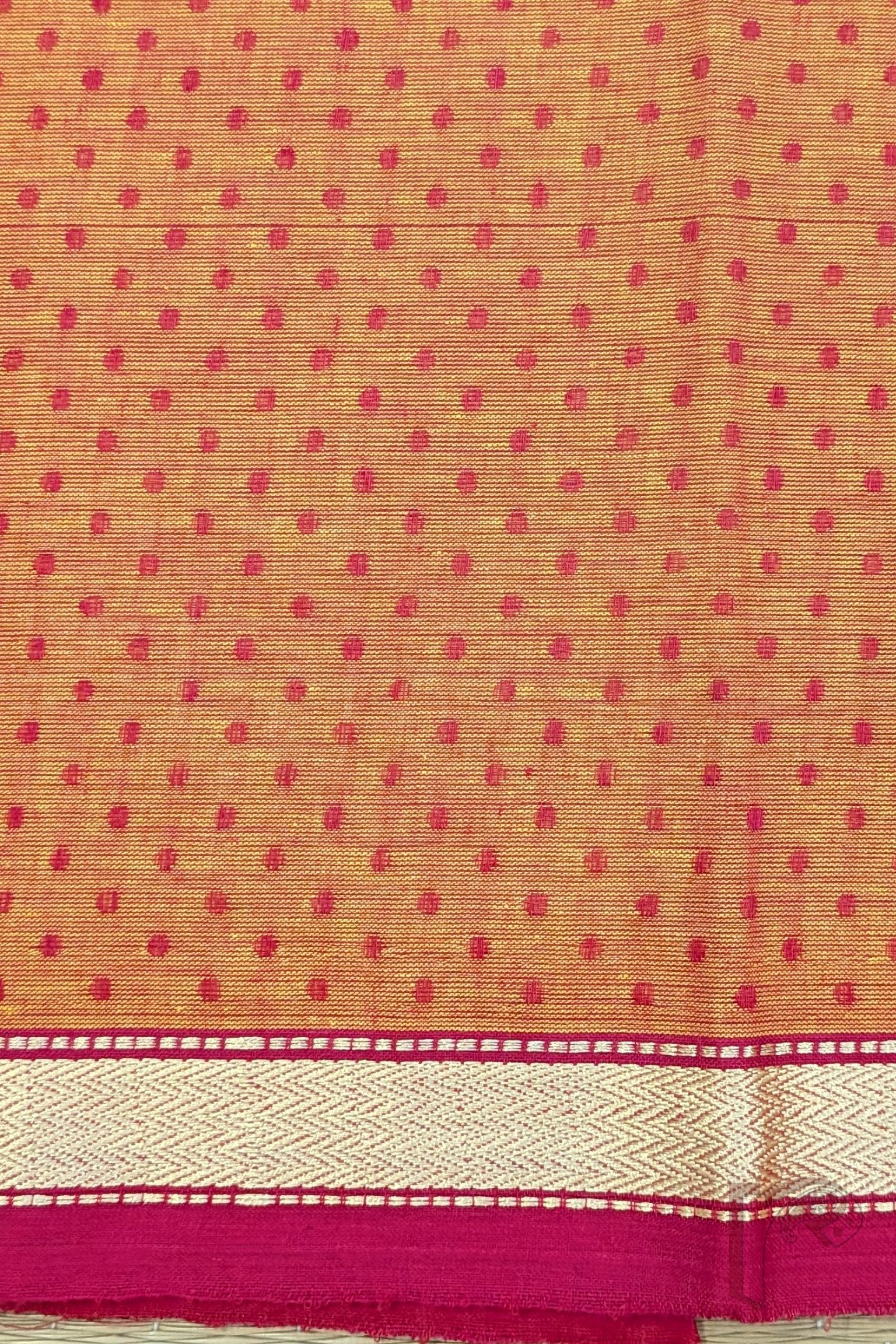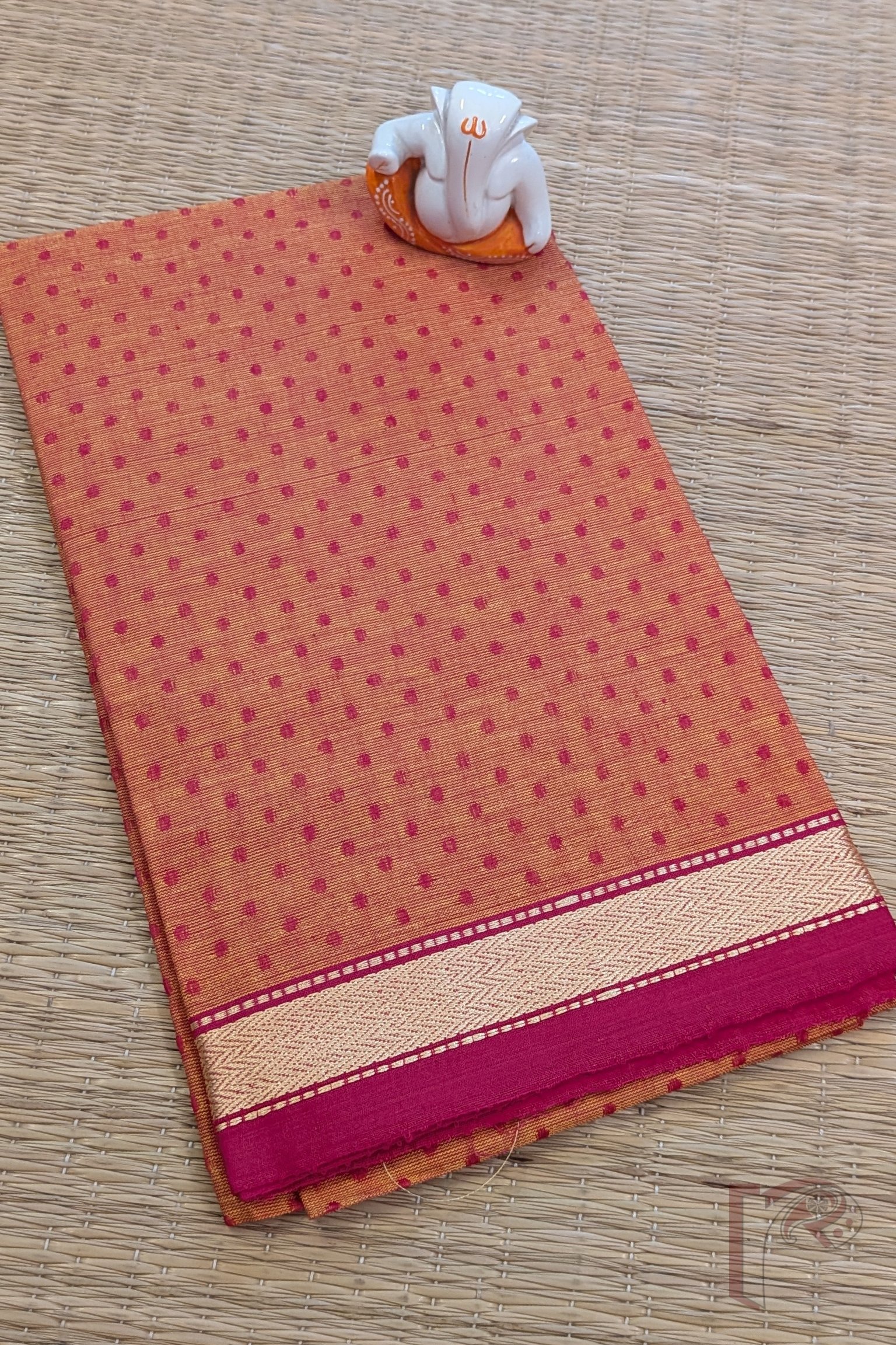 Orange Mangalgiri Cotton Blouse with Hot Pink Booties and Gold Thread Border