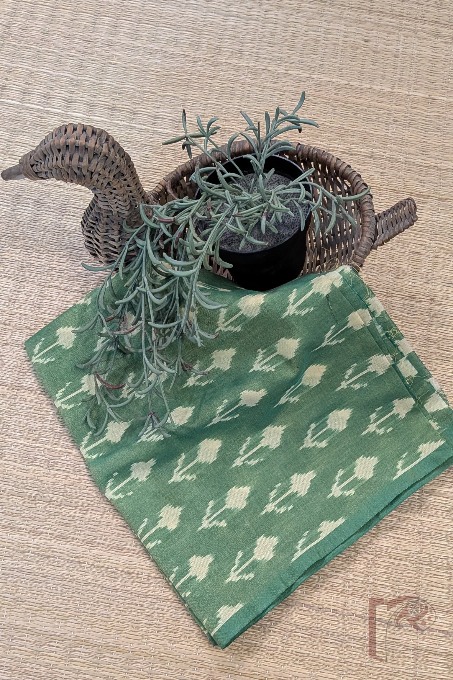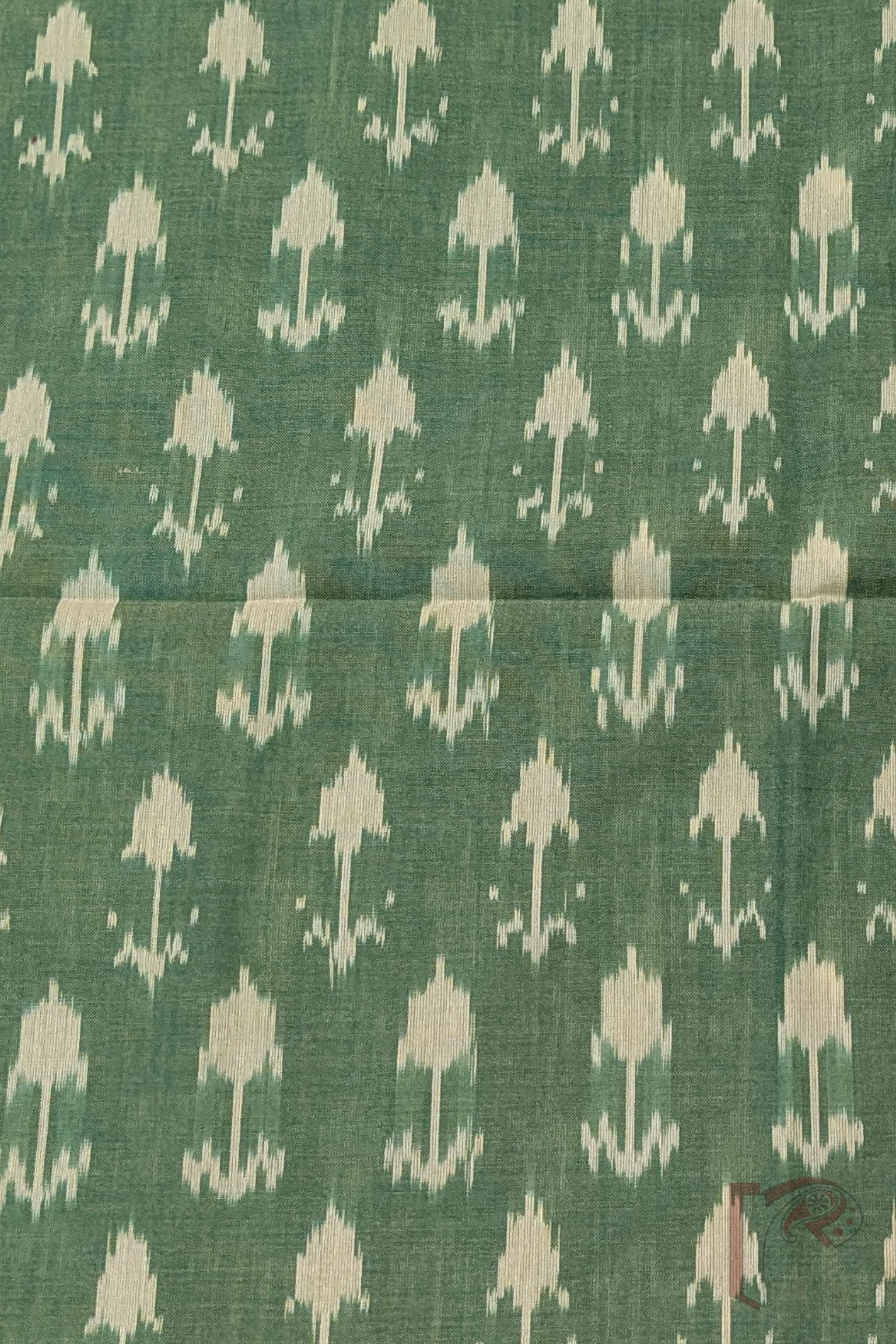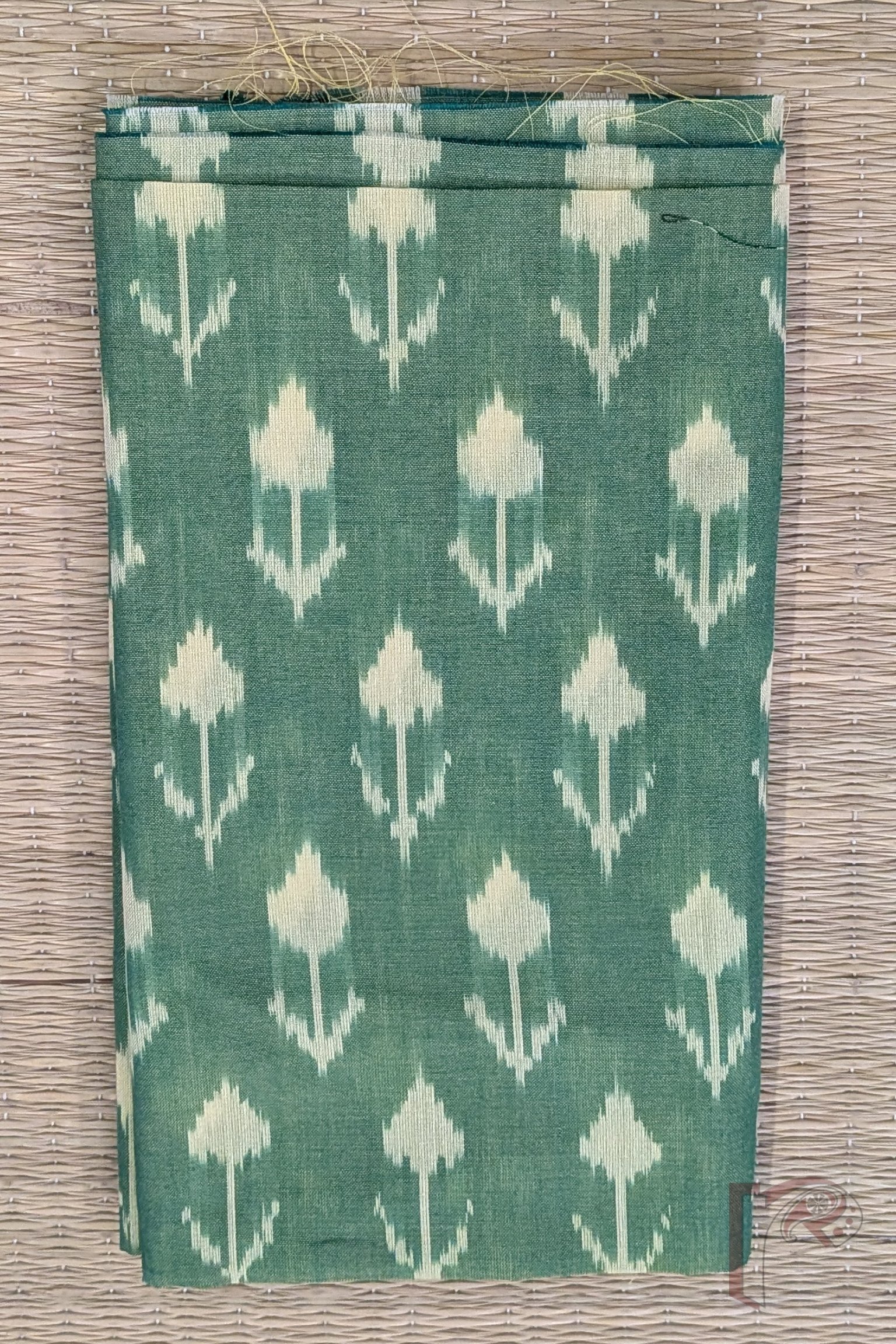Parrot Green and Cream Flower Bud Stem Mercerized Cotton Ikkat Blouse Piece