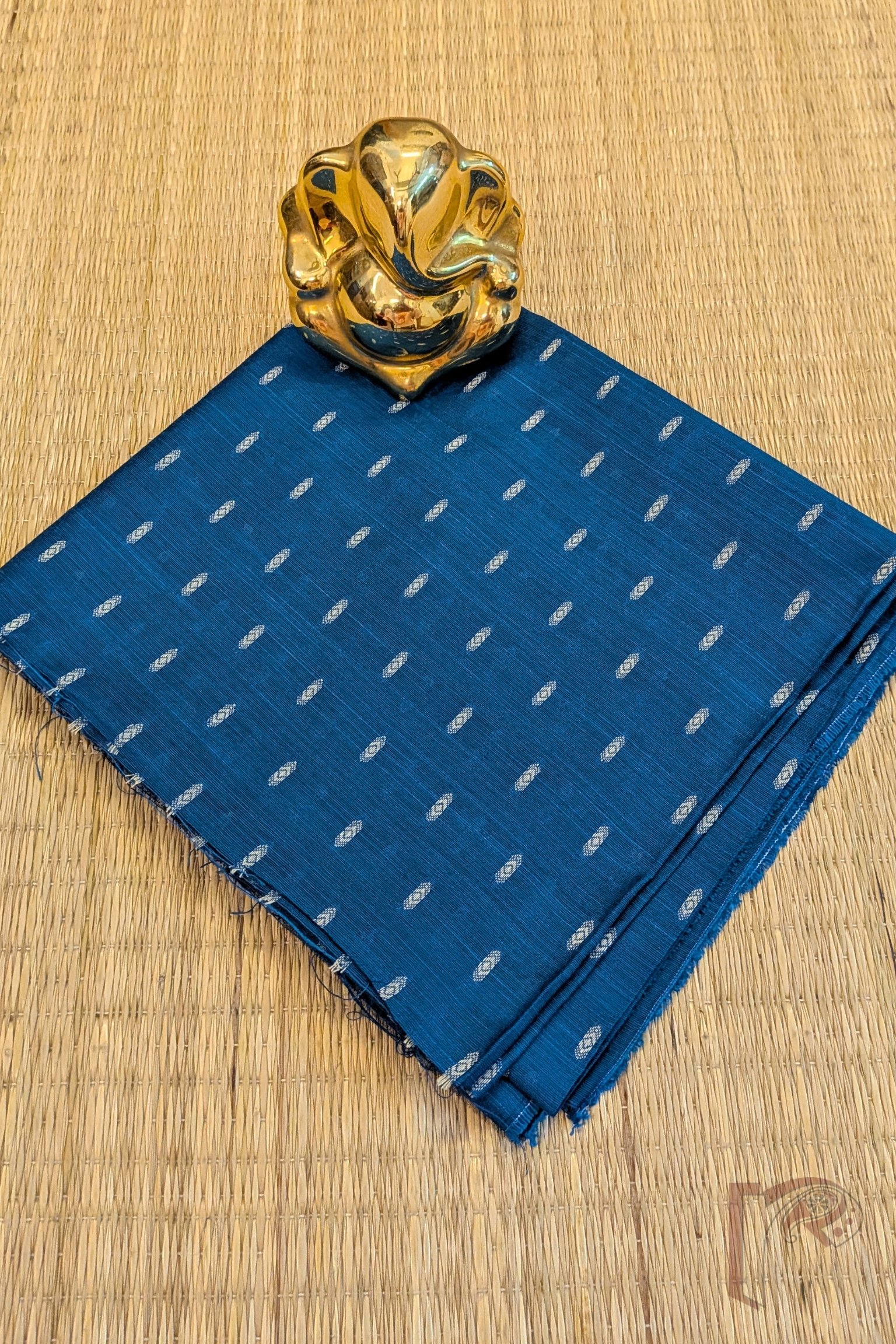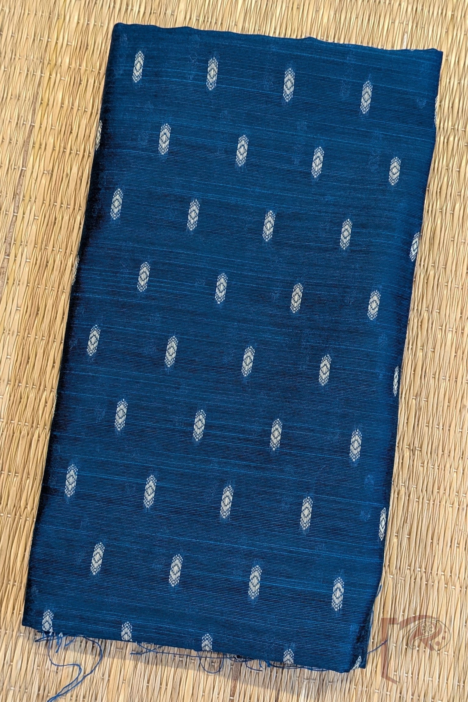 Peacock Blue Cotton Silk Machine Weave Unstitched Blouse Piece with Cream Diamond Motifs