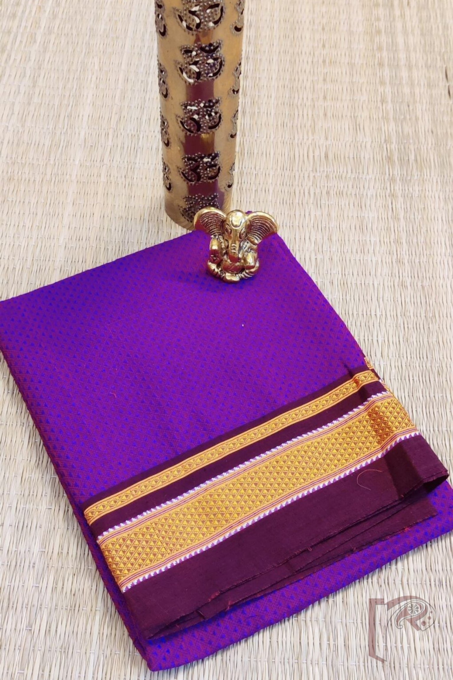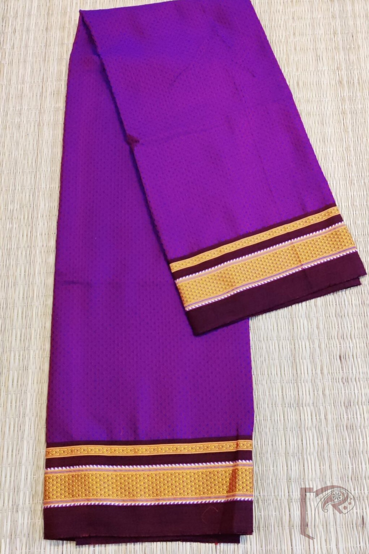 Purple and Deep Maroon Khun Weave Ilkal Blouse Piece with Golden-White Thread Border