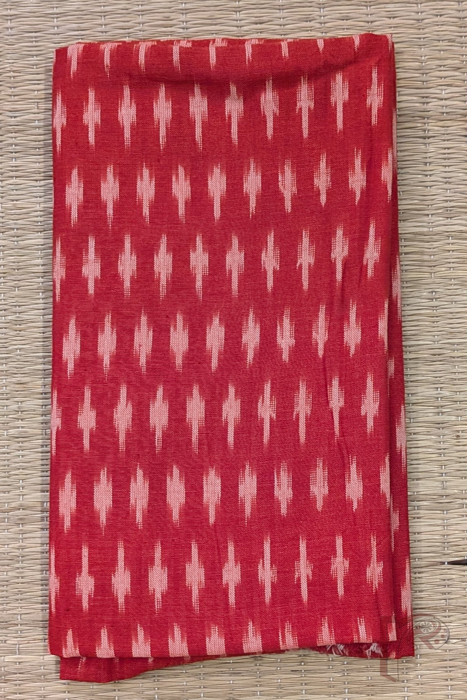 Red and Cream Plus Motif Mercerized Cotton Ikkat Blouse Piece