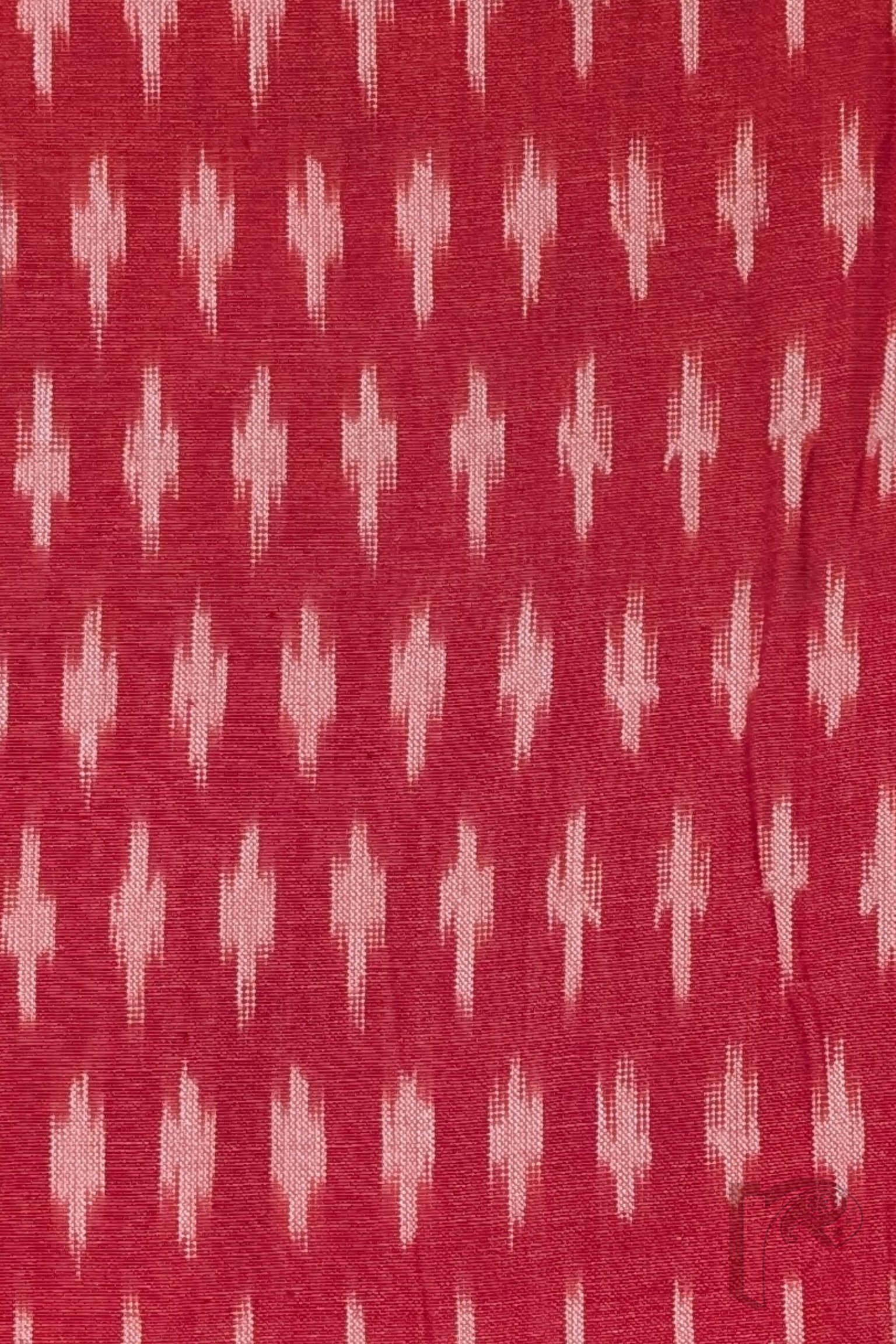This vibrant red mercerized cotton Ikkat blouse piece features small cream motifs resembling delicate plus signs arranged across the fabric. The geometric layout creates a rhythmic and balanced design that enhances its timeless appeal. The sheen of the mercerized cotton amplifies the richness of the red base while keeping the fabric breathable. Designed with enhanced fiber strength and crisp motif clarity, this blouse piece delivers both durability and radiant elegance, making it a versatile ethnic wardrobe essential.