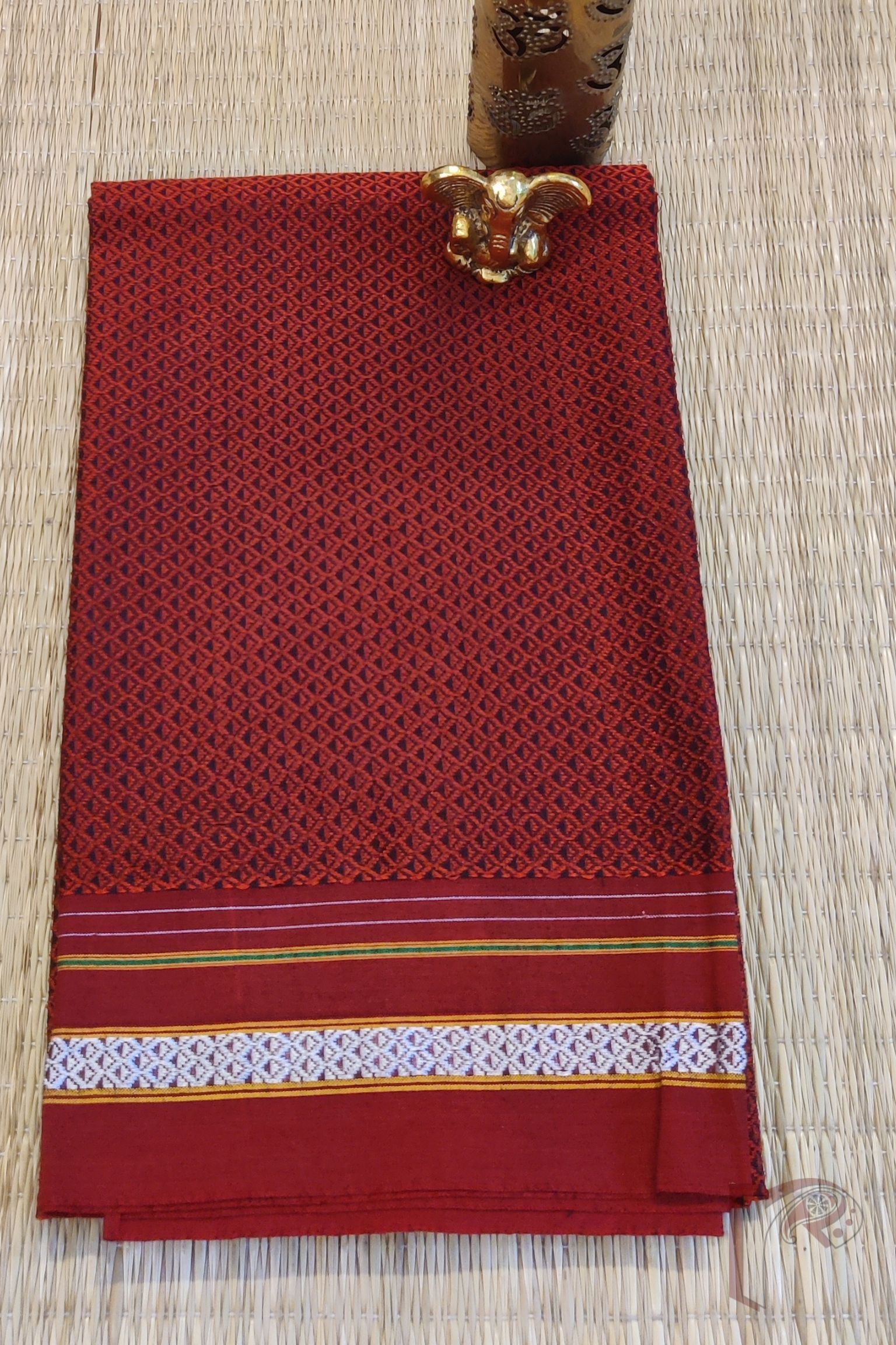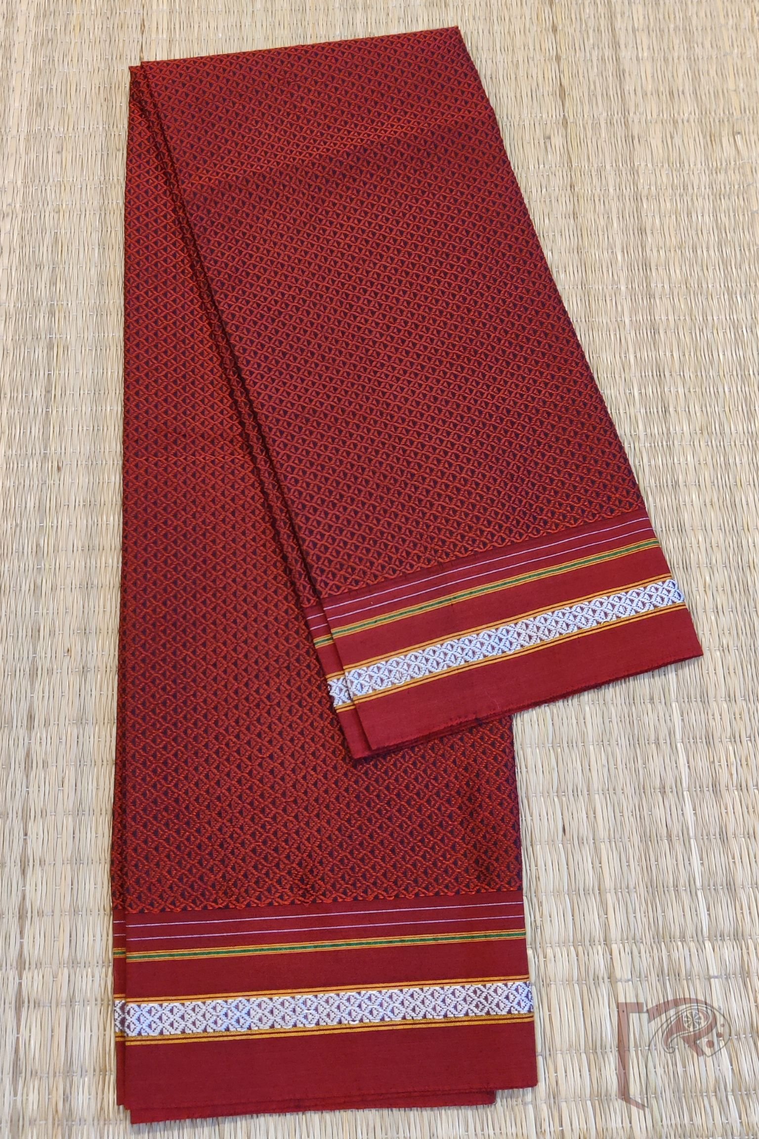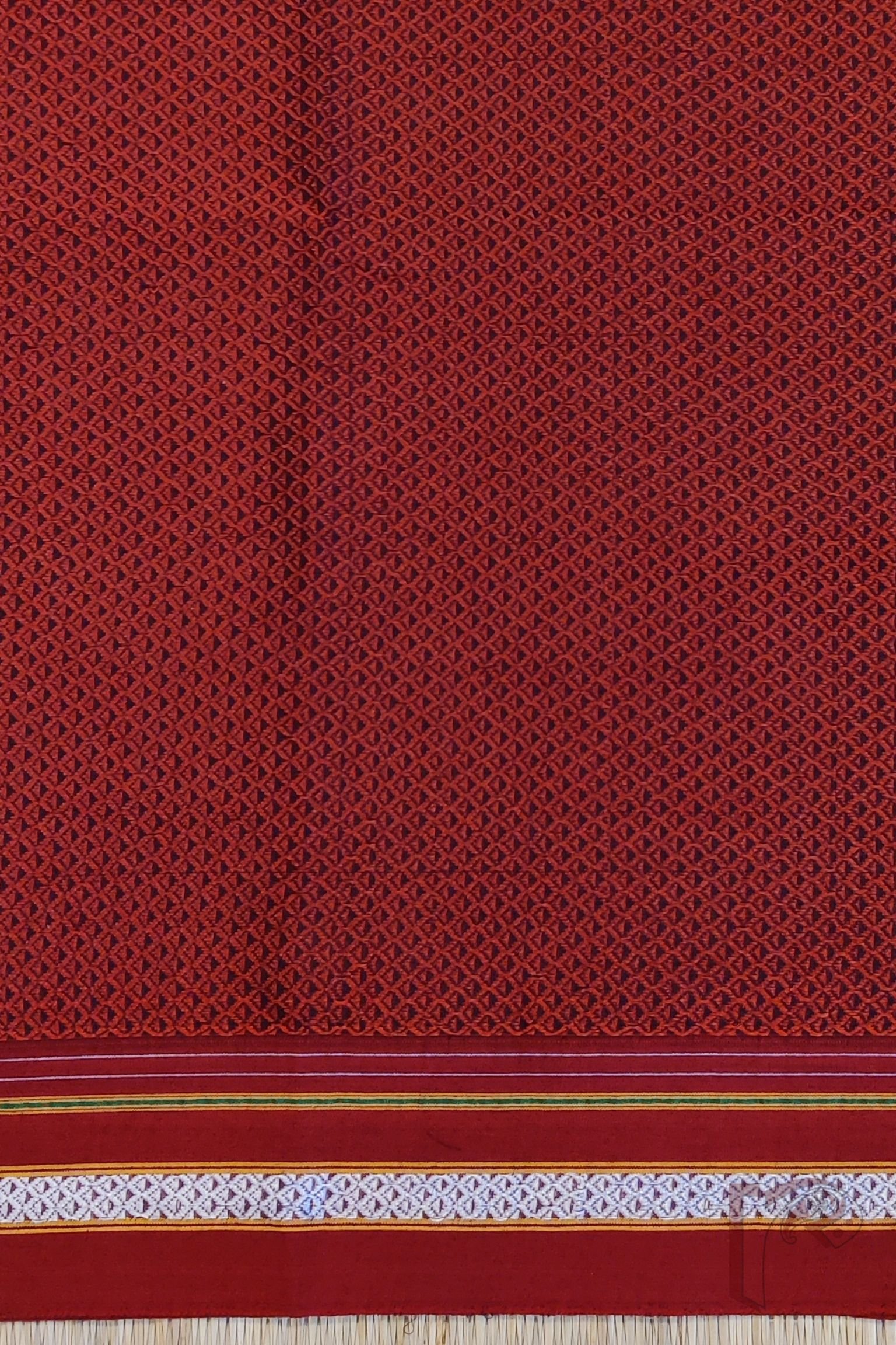 A classic red cotton silk Ilkal blouse piece crafted in the traditional Khun weave, featuring a matching red border delicately interlaced with white threadwork. The tone-on-tone combination is elevated by the subtle texture of the weave, creating a look that is elegant, versatile, and timeless. The cotton silk blend offers a soft sheen and effortless drape, making this blouse piece a graceful choice for both festive sarees and daily handloom pairings.