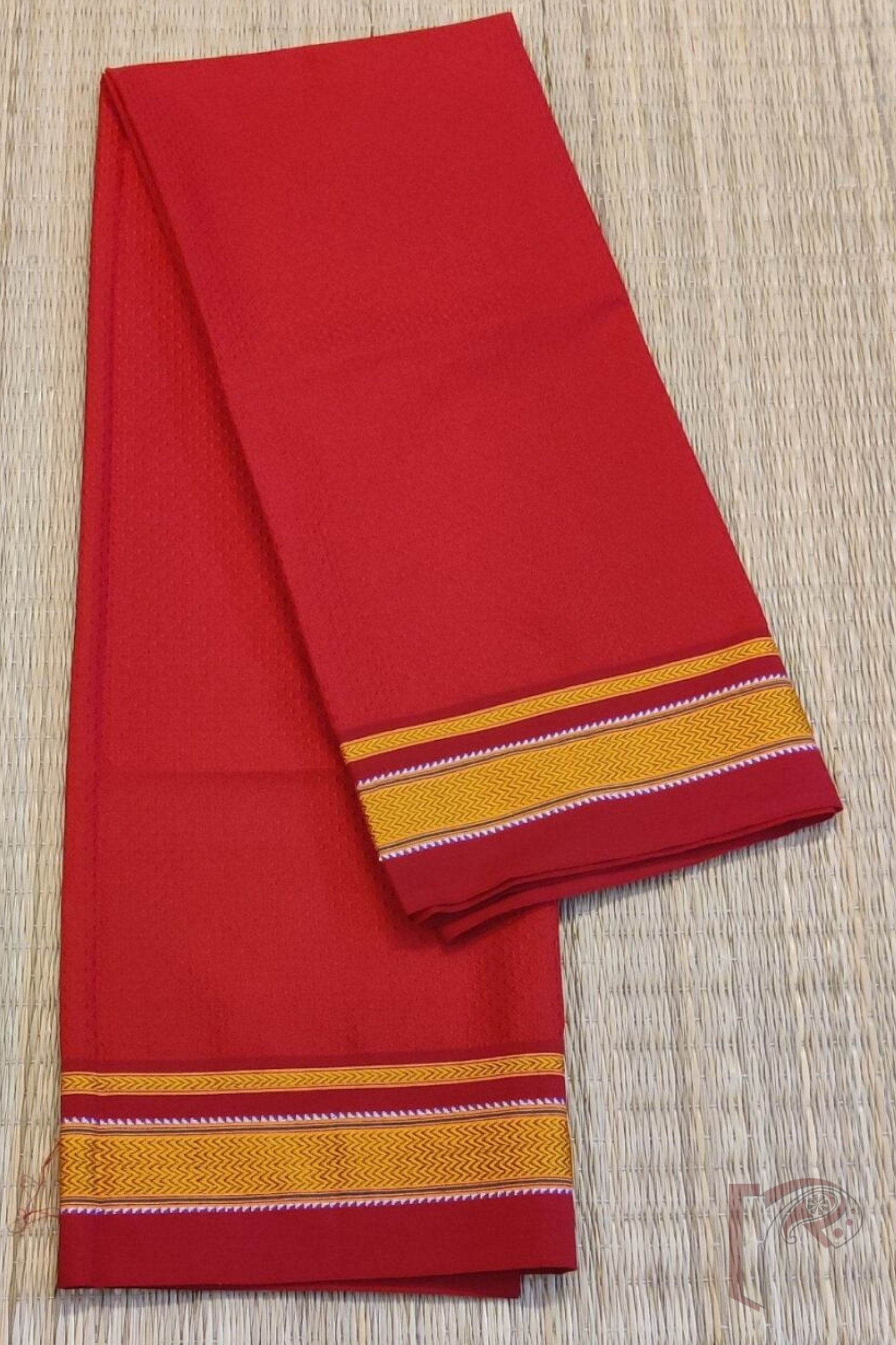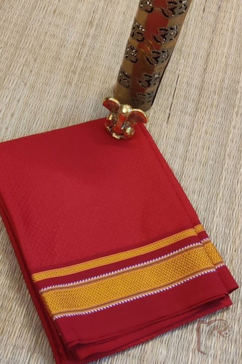 Red Khun Weave Ilkal Blouse Piece with Zigzag Golden Thread Border
