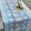 Rustic Runners: Copper Sulphate Blue with Flowers Block Print Casement Cotton Runner 13″ X 74″