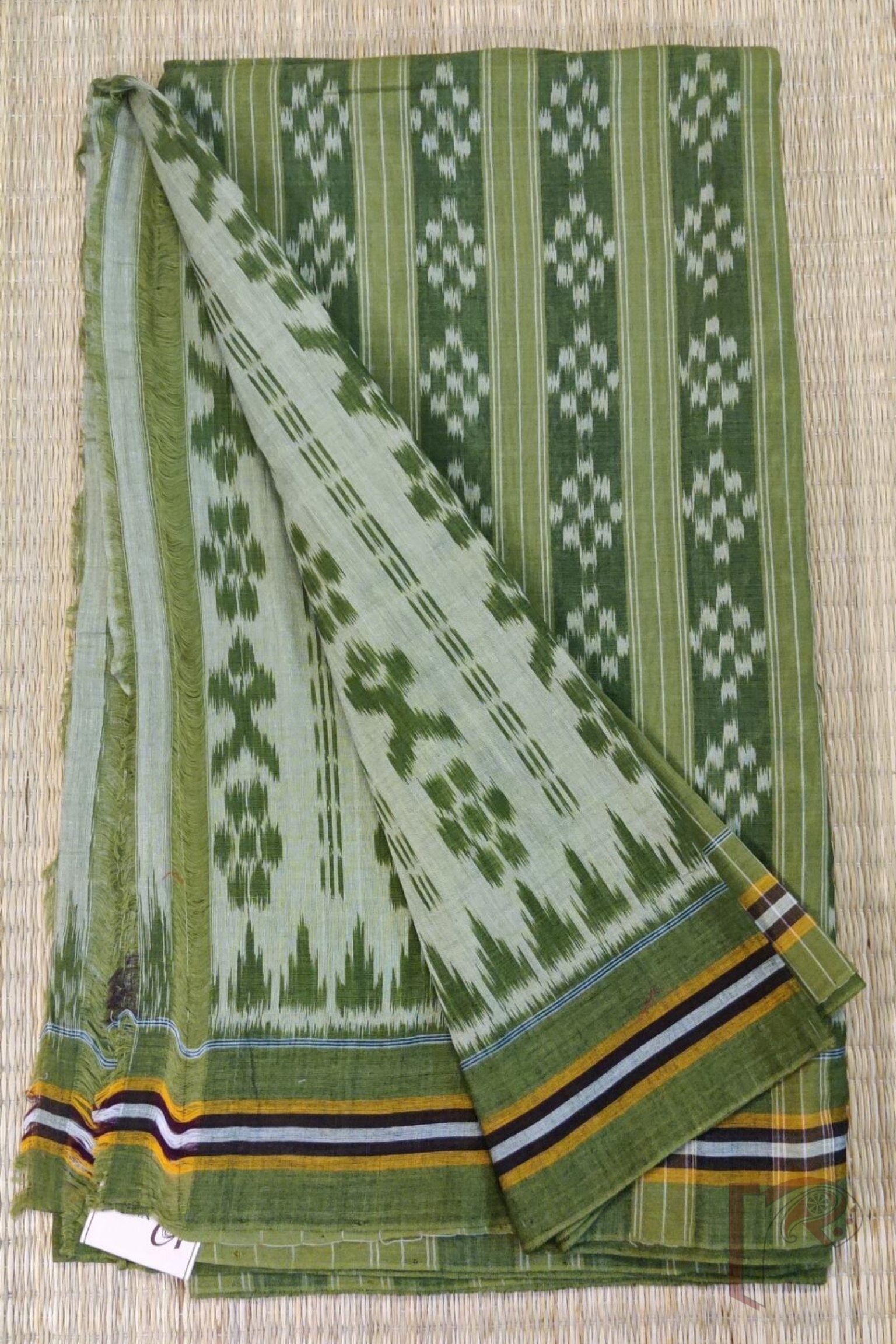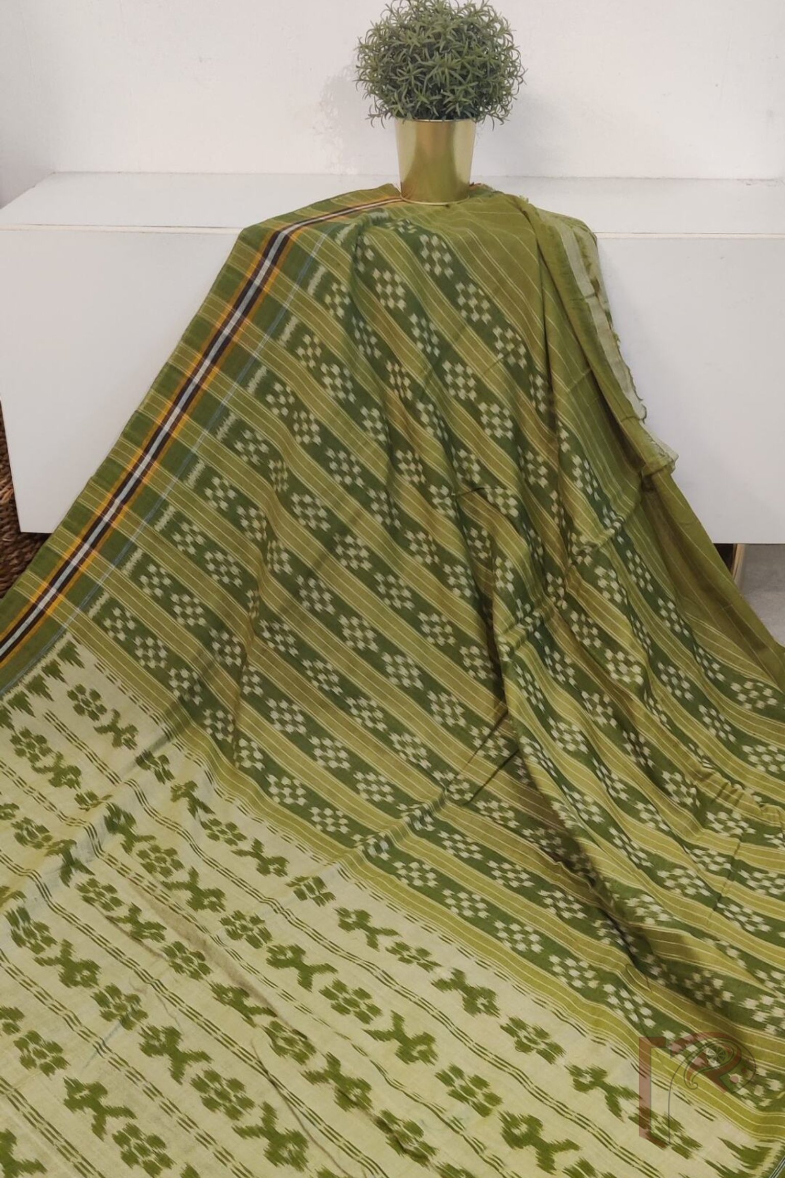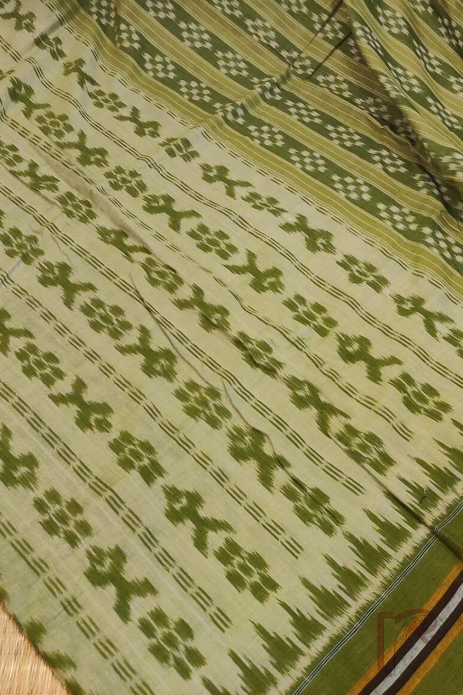 Sambhalpuri Saga – Sage Green Sambhalpuri Cotton Saree with Striped Kantha-like Weave and Yellow Accents