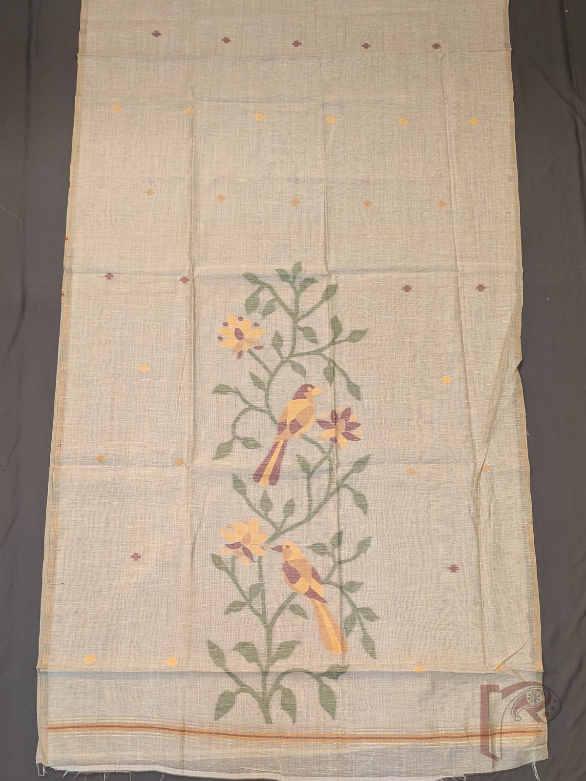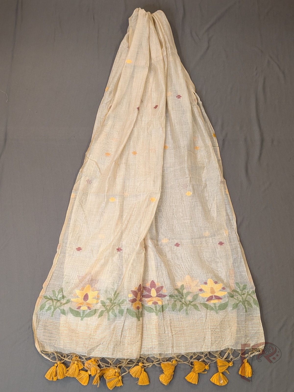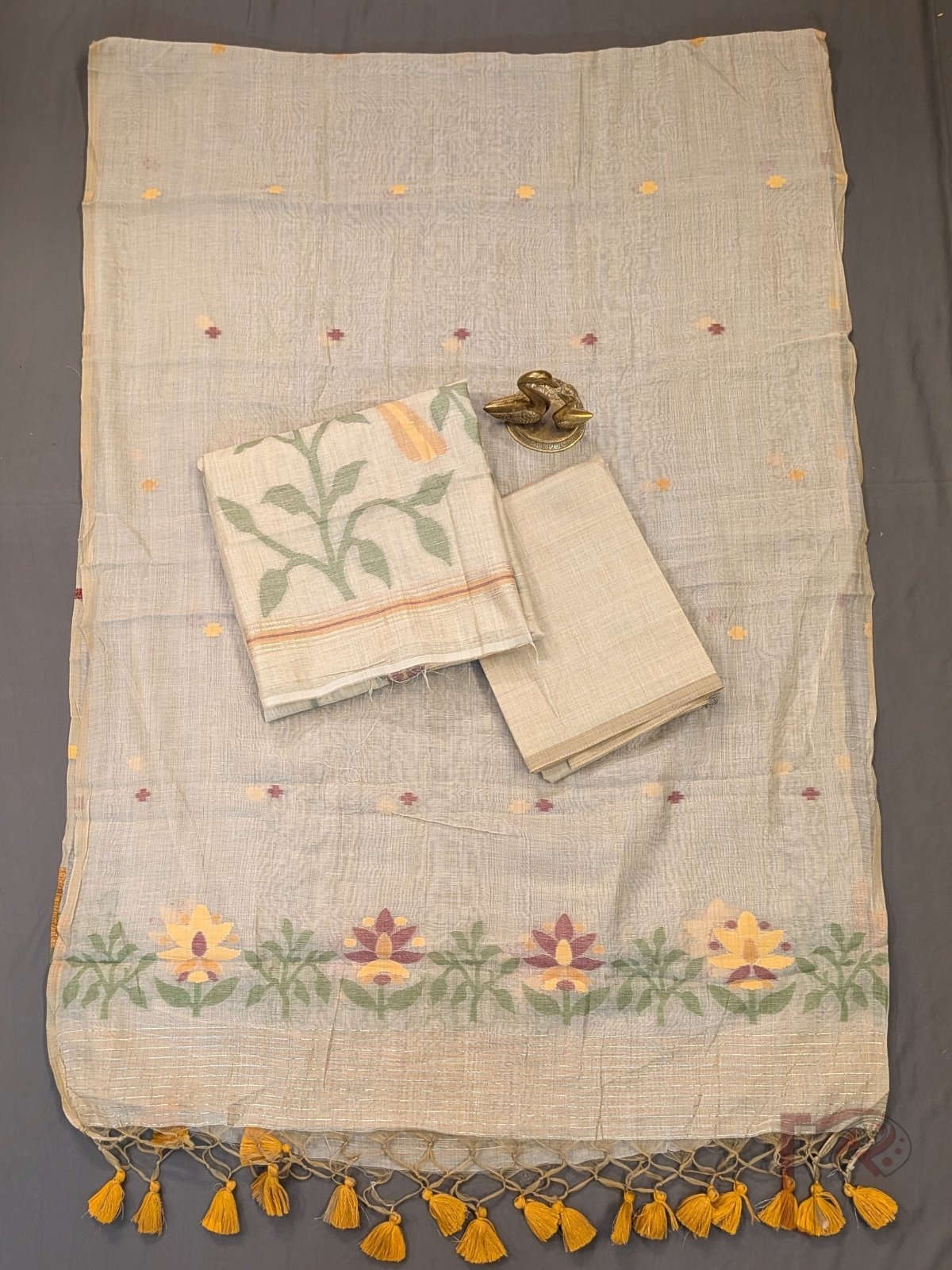 What truly sets this collection apart is the artistry of Jamdani weaving—an intricate handloom technique where motifs are woven directly into the fabric using the extra-weft method. Unlike prints or surface embellishments, these designs become an integral part of the textile, resulting in delicate floral patterns, nature-inspired motifs, and textured surfaces that feel both rich and refined. From lotus blooms and leafy vines to geometric dots and traditional borders, each piece reflects patient craftsmanship and timeless aesthetics.
