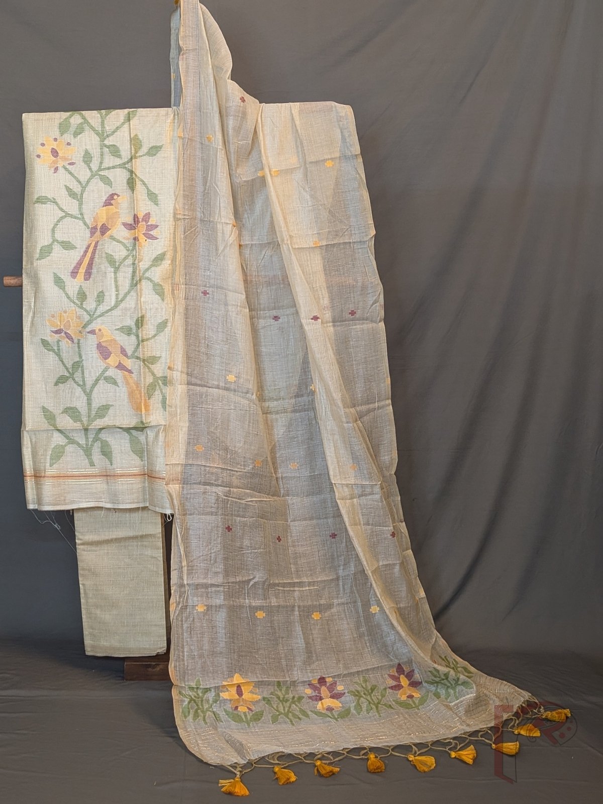 Finished with thoughtfully coordinated dupattas, subtle borders, and elegant tassel details, these suit sets embody effortless elegance, breathable comfort, and heirloom-quality craftsmanship. Perfect for workwear, intimate gatherings, or festive mornings, this collection allows you to embrace authentic Jamdani heritage with the versatility of unstitched tailoring—crafted for the modern woman who values both tradition and individuality.