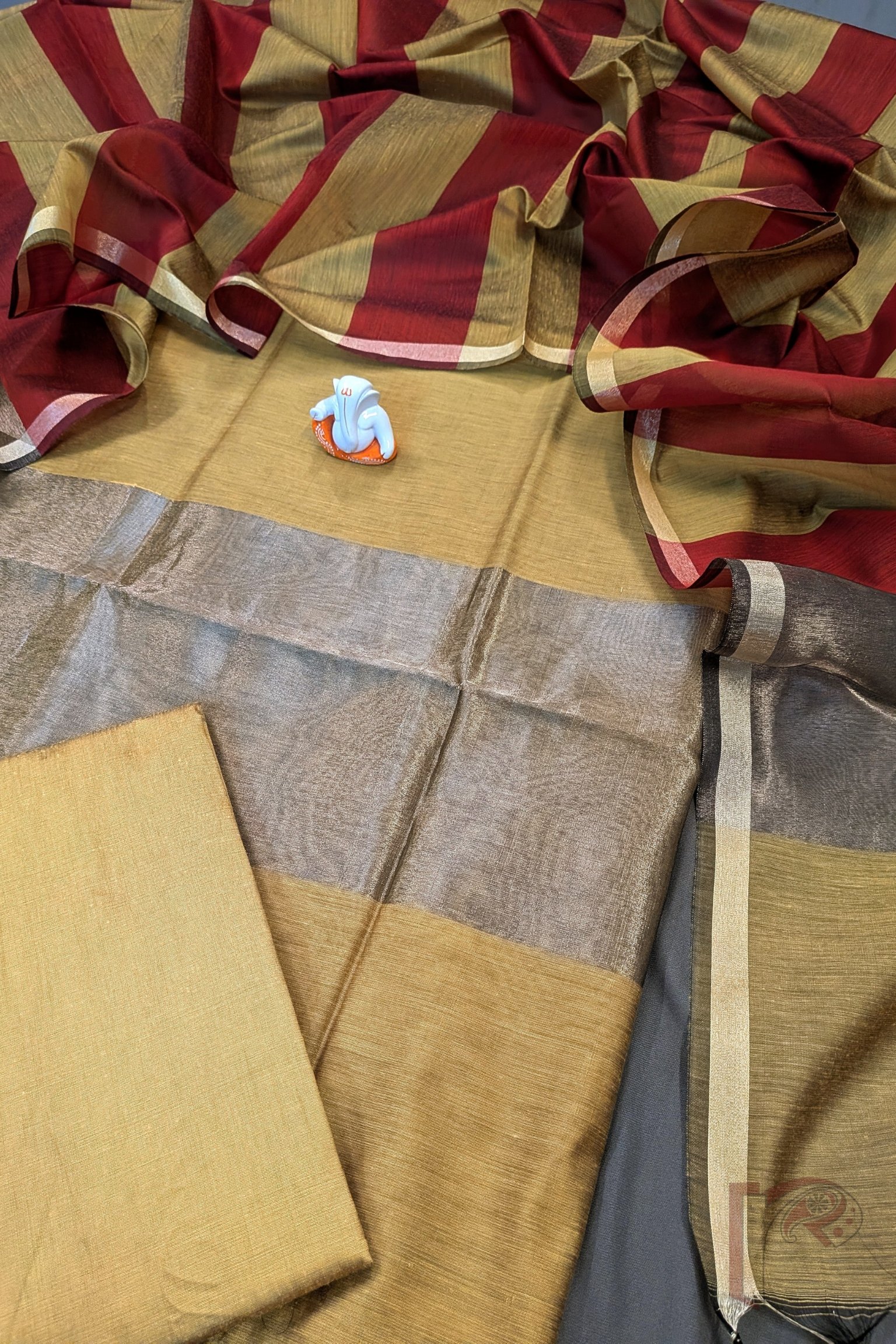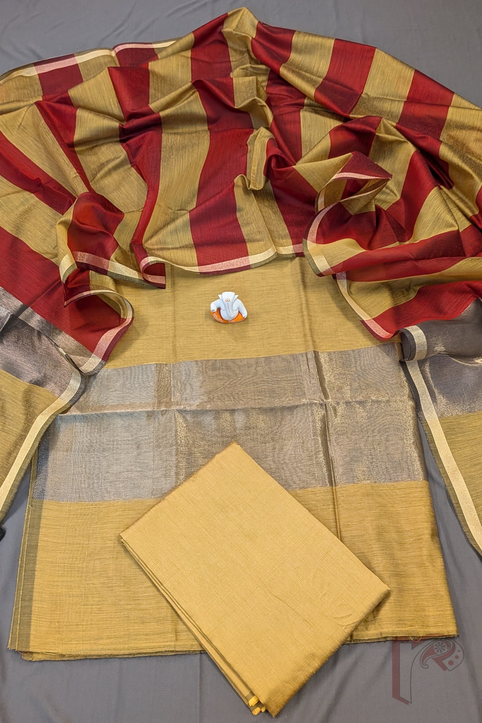 Suit Stories – Gold & Maroon Mercerised Cotton Banarasi Suit Material with Gold Zari Border