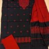 Suit Stories – Grey and Tomato Red Cotton Jamdani Suit Set with Floral Yoke and Border