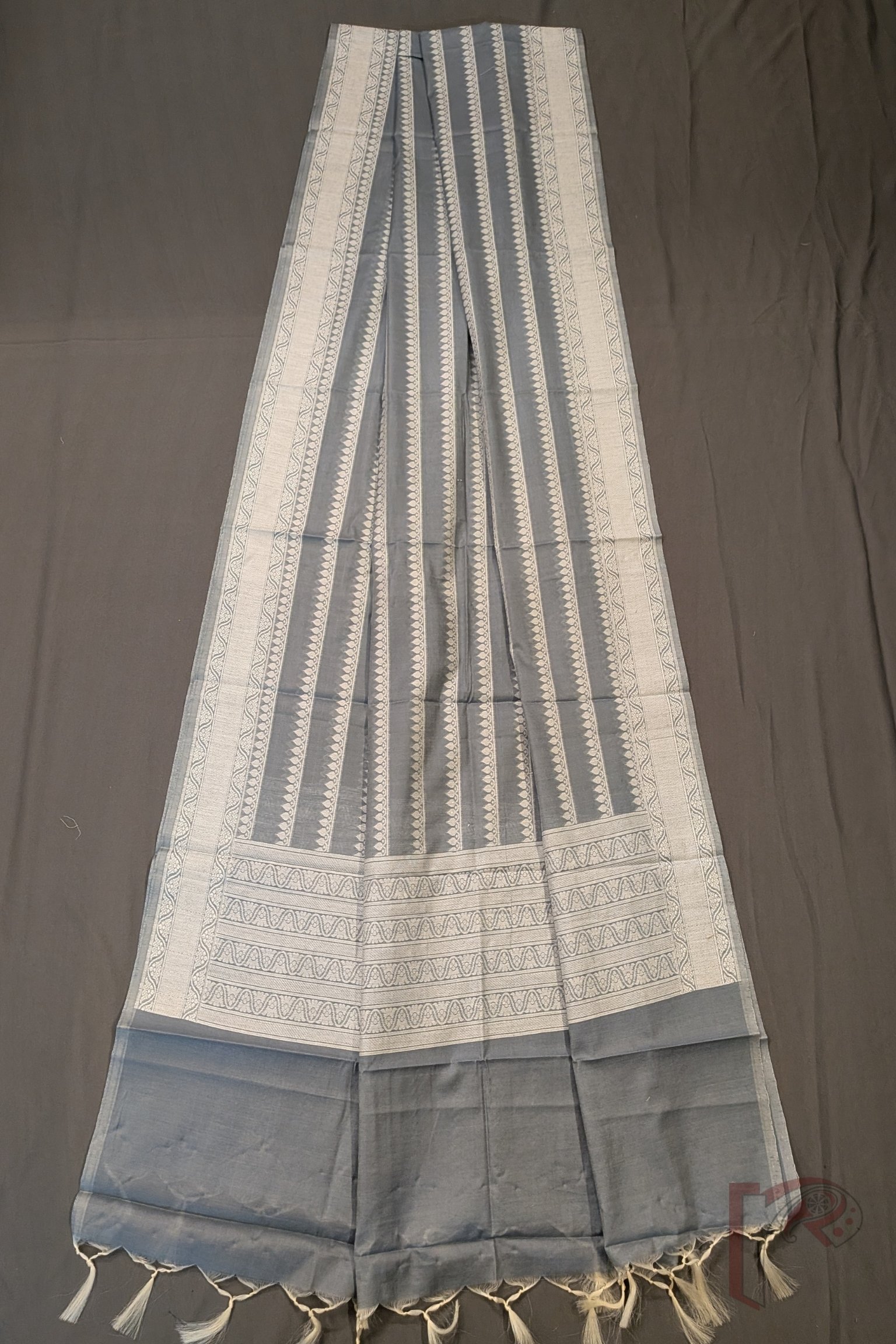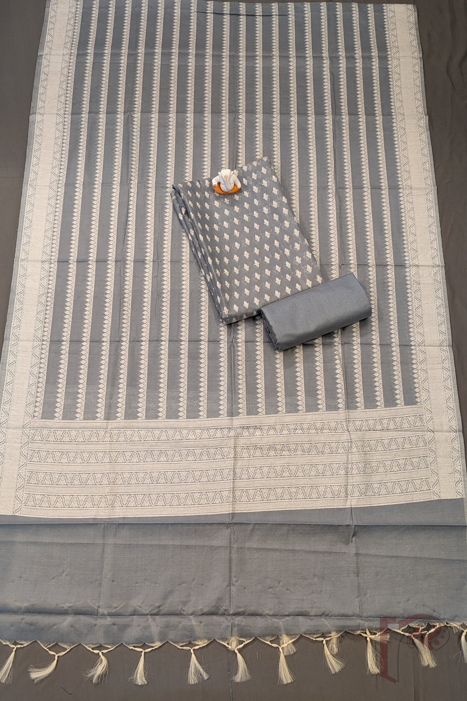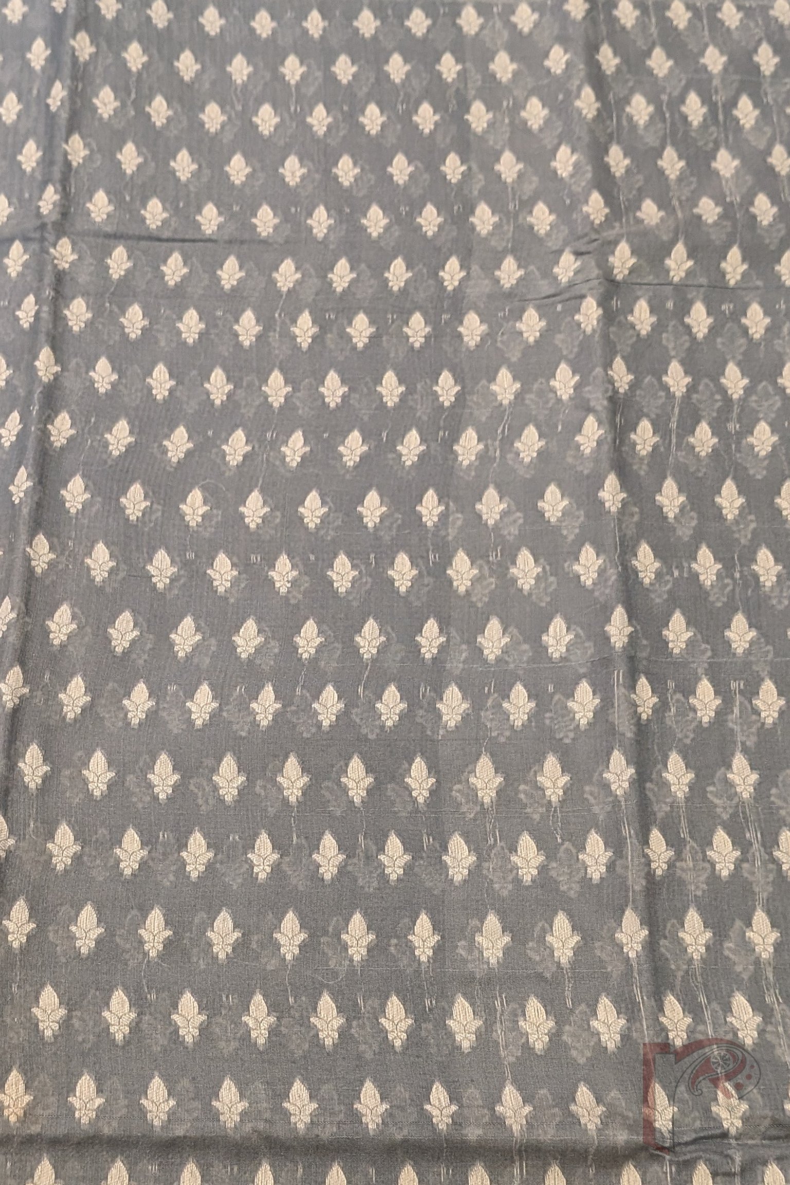 Suit Stories – Grey Cotton Silk Banarasi Suit Material with White Bud-and-Leaf Weave & Parallel Leaf Dupatta