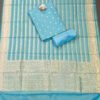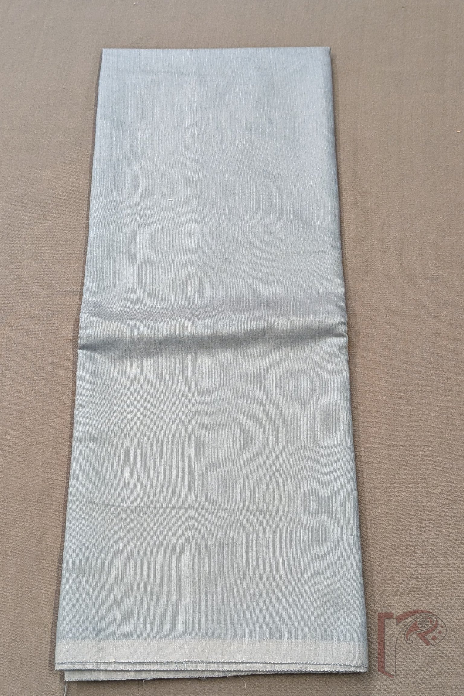 This beautiful grey cotton silk Banarasi suit material reflects refined simplicity through its thoughtfully woven kurta piece featuring white thread bud-and-leaf motifs arranged in an elegant repeating pattern. The contrast of white-on-grey creates a soft yet visually rich texture, lending the fabric a calm, sophisticated appeal. The plain grey cotton silk bottom complements the kurta seamlessly, maintaining a clean and balanced look. The dupatta enhances the ensemble with its parallel leaf-pattern lines woven in white thread and finished with a broad white woven border on both sides, adding a touch of understated grace. With its smooth cotton-silk drape, breathable comfort, and minimalist Banarasi craftsmanship, this suit material is perfect for serene day wear, subtle festive occasions, and elegant traditional styling.