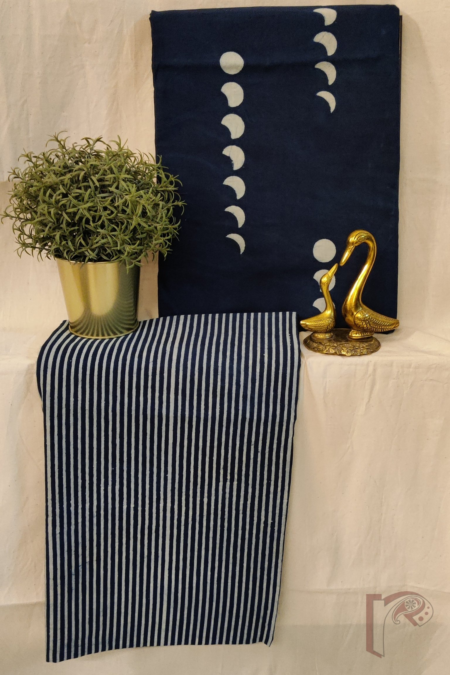 Suit stories – Indigo Mulmul Suit with Moon Phases in Cream and Indigo Bottom with Cream Pinstripes