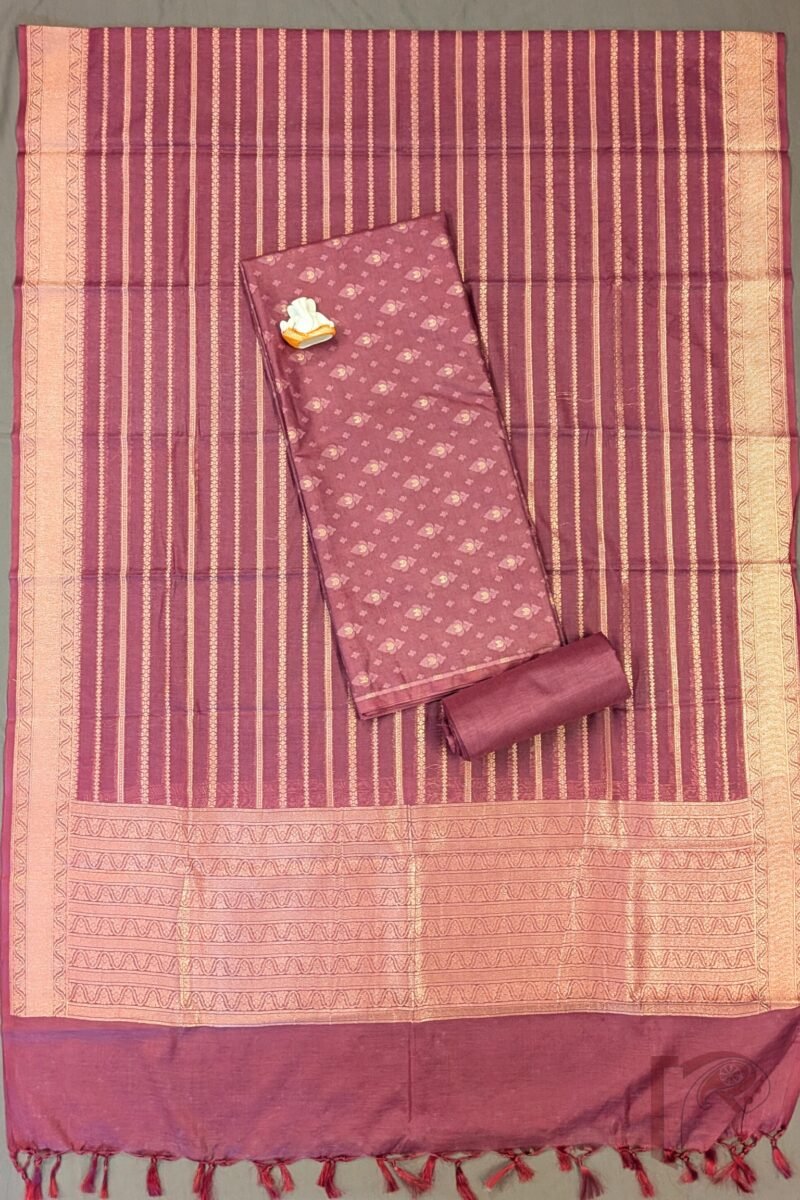 Suit Stories – Jamun Pink Banarasi Cotton Silk Suit with Gold Leaf Bunch Motifs & Straight-Line Gold Dupatta