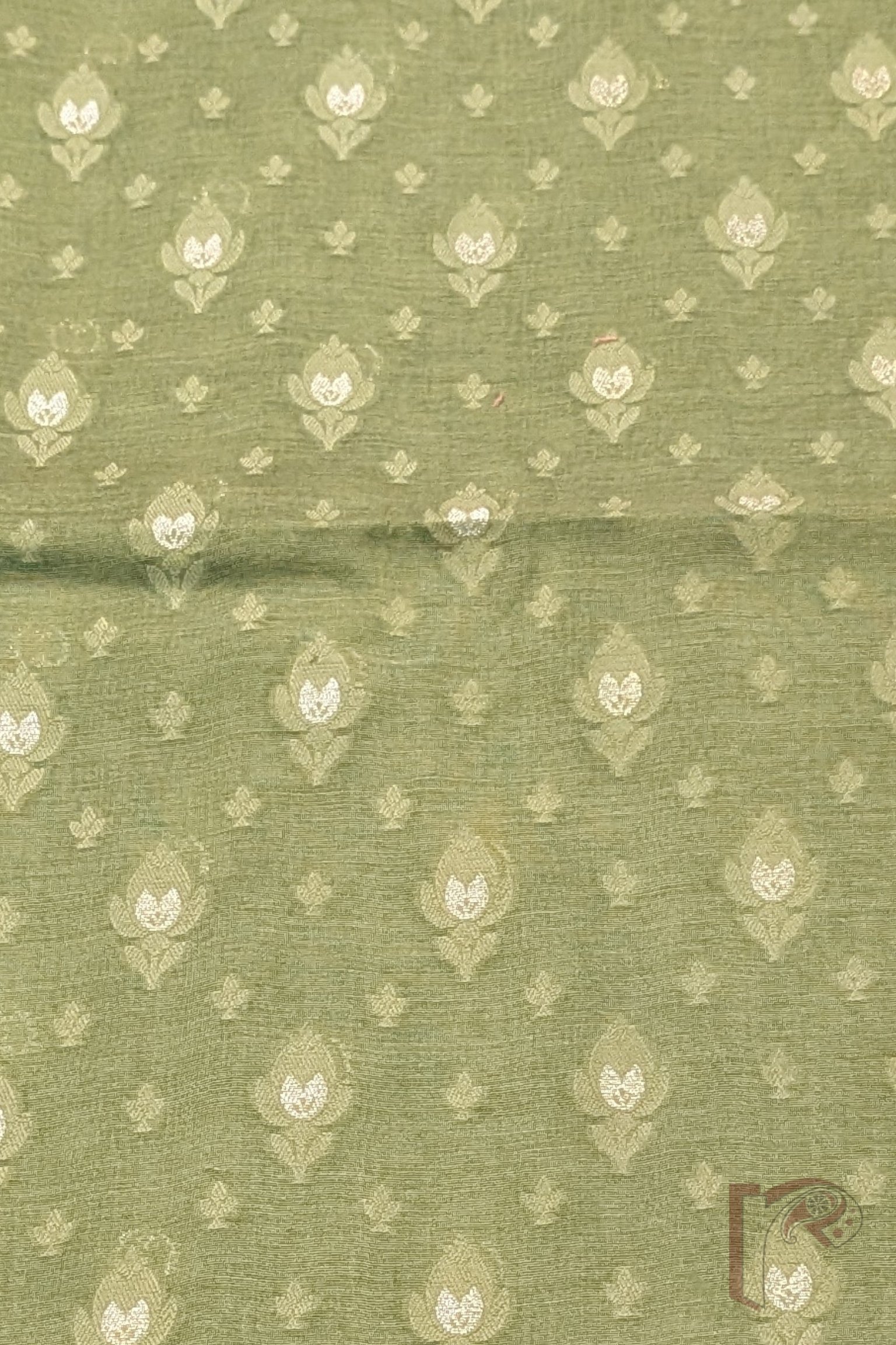 Suit Stories – New Leaf Green Cotton Silk Banarasi Suit Material with Leaf Weave & Gold Pan-Leaf Line Dupatta