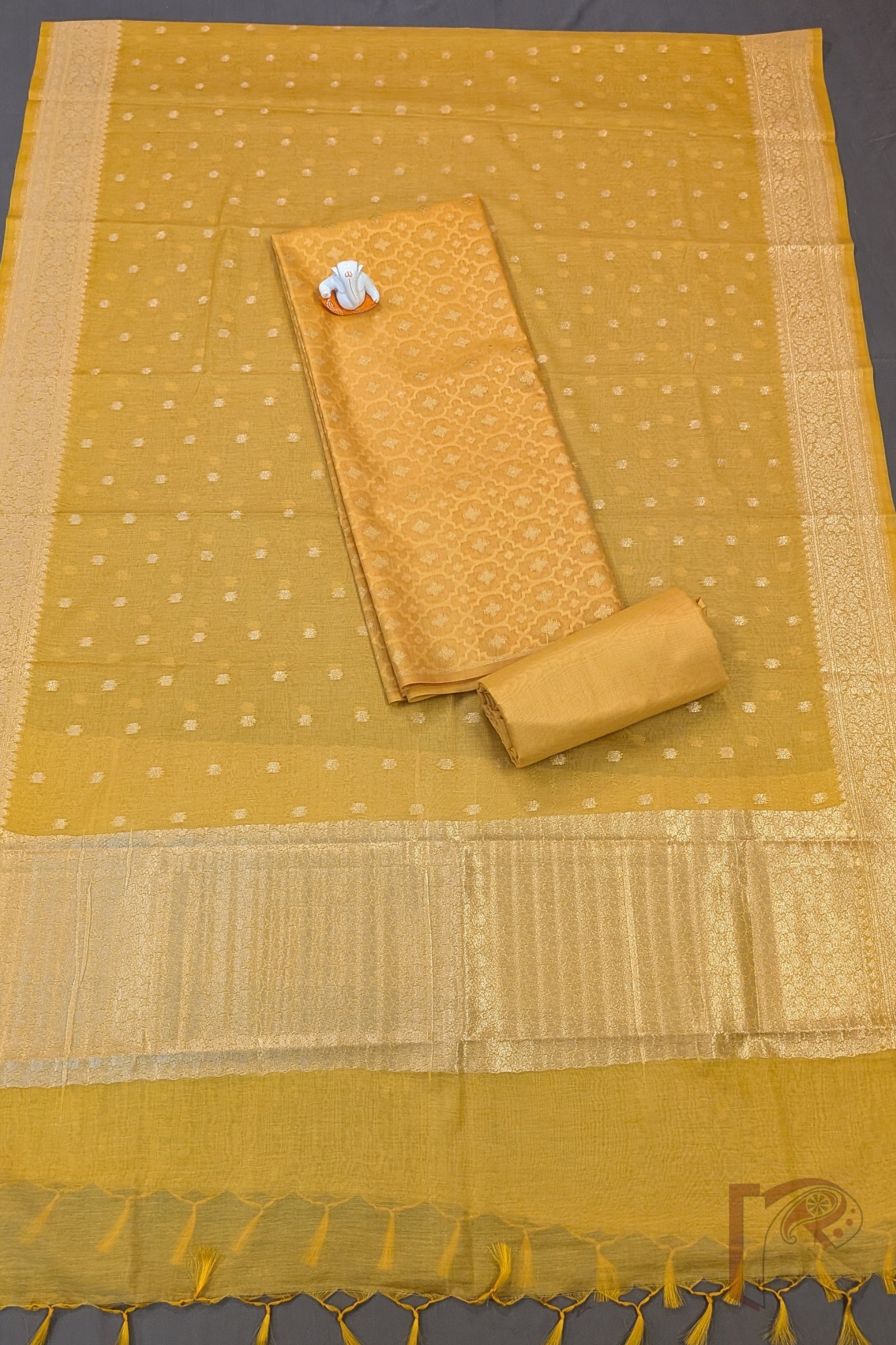 Suit Stories – Yellow Banarasi Cotton Silk Suit with Jal Motifs & Gold Stem-Flower Dupatta