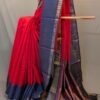 Vibrant and celebratory, this hot pink raw silk tussar saree is beautifully balanced with a navy blue temple weave border that grounds its brightness. The pallu becomes the highlight with heavy gold thread weaving arranged in a checkered pattern, offering richness and festive drama. A 1″ gold zari border outlines the saree gracefully, while the navy blue blouse with gold borders completes the look. Ideal for weddings and grand festivities, this saree makes a confident and joyful statement.