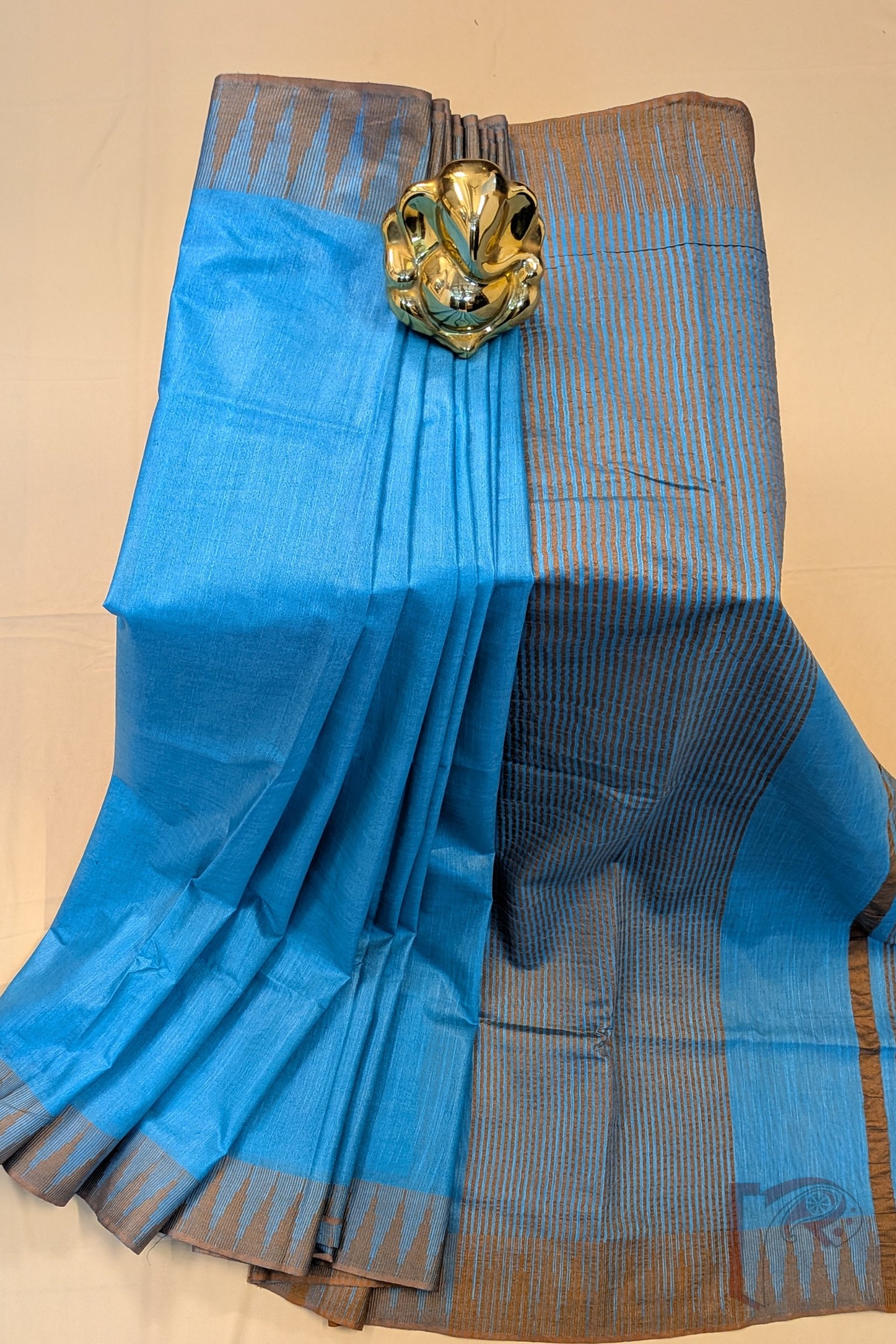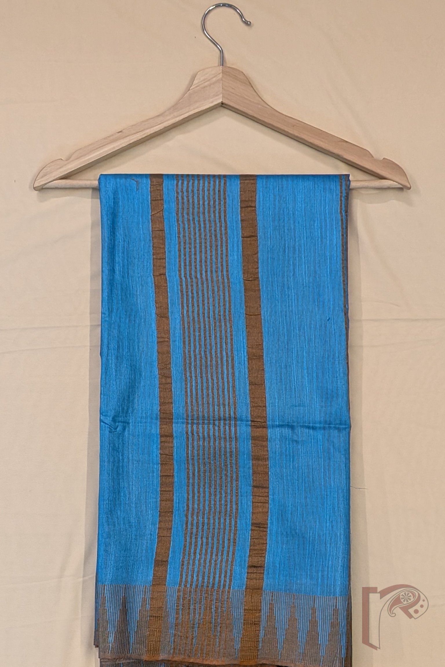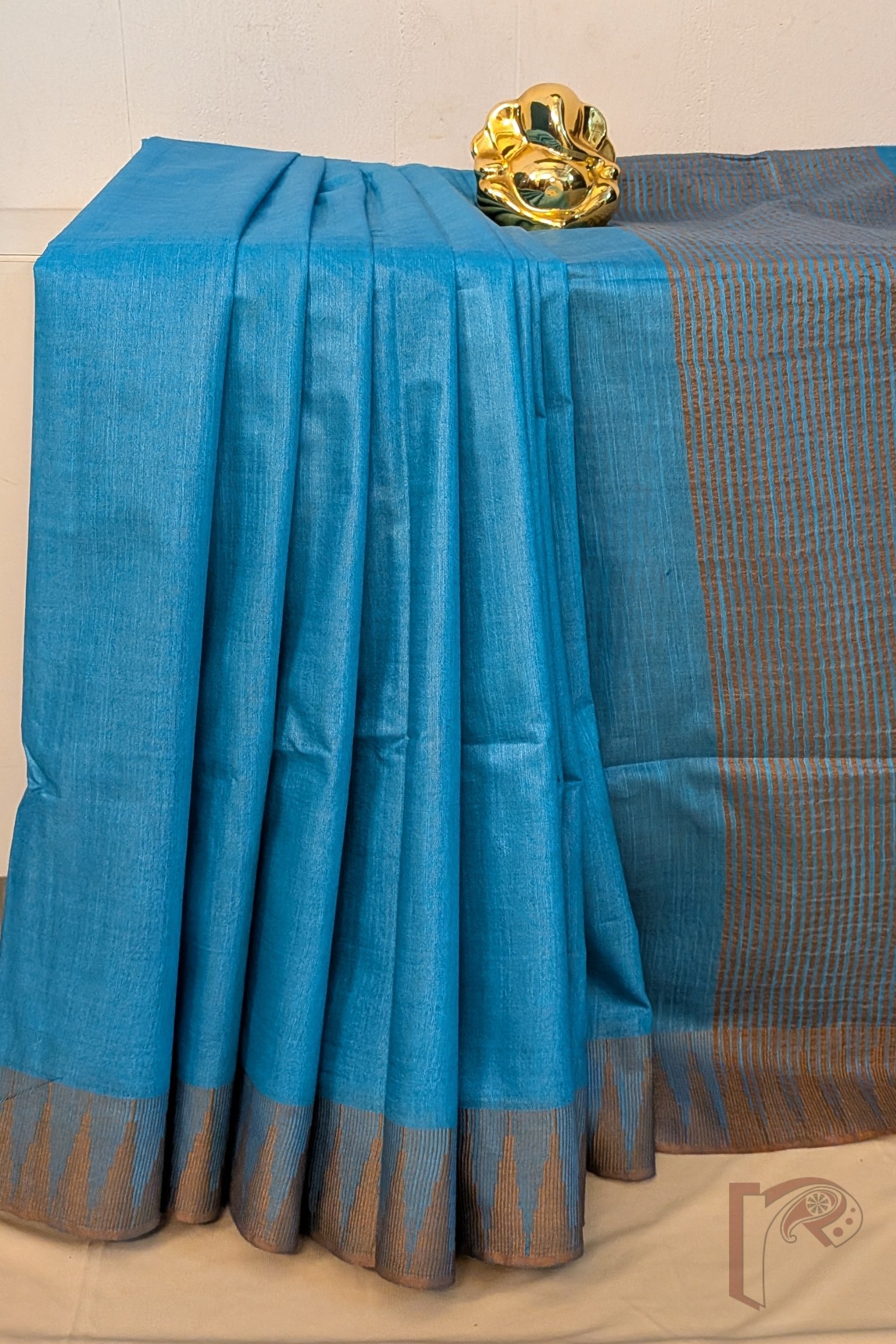 Viscose Vibrance: Blue and Fawn Brown Temple Border Kota Viscose Saree