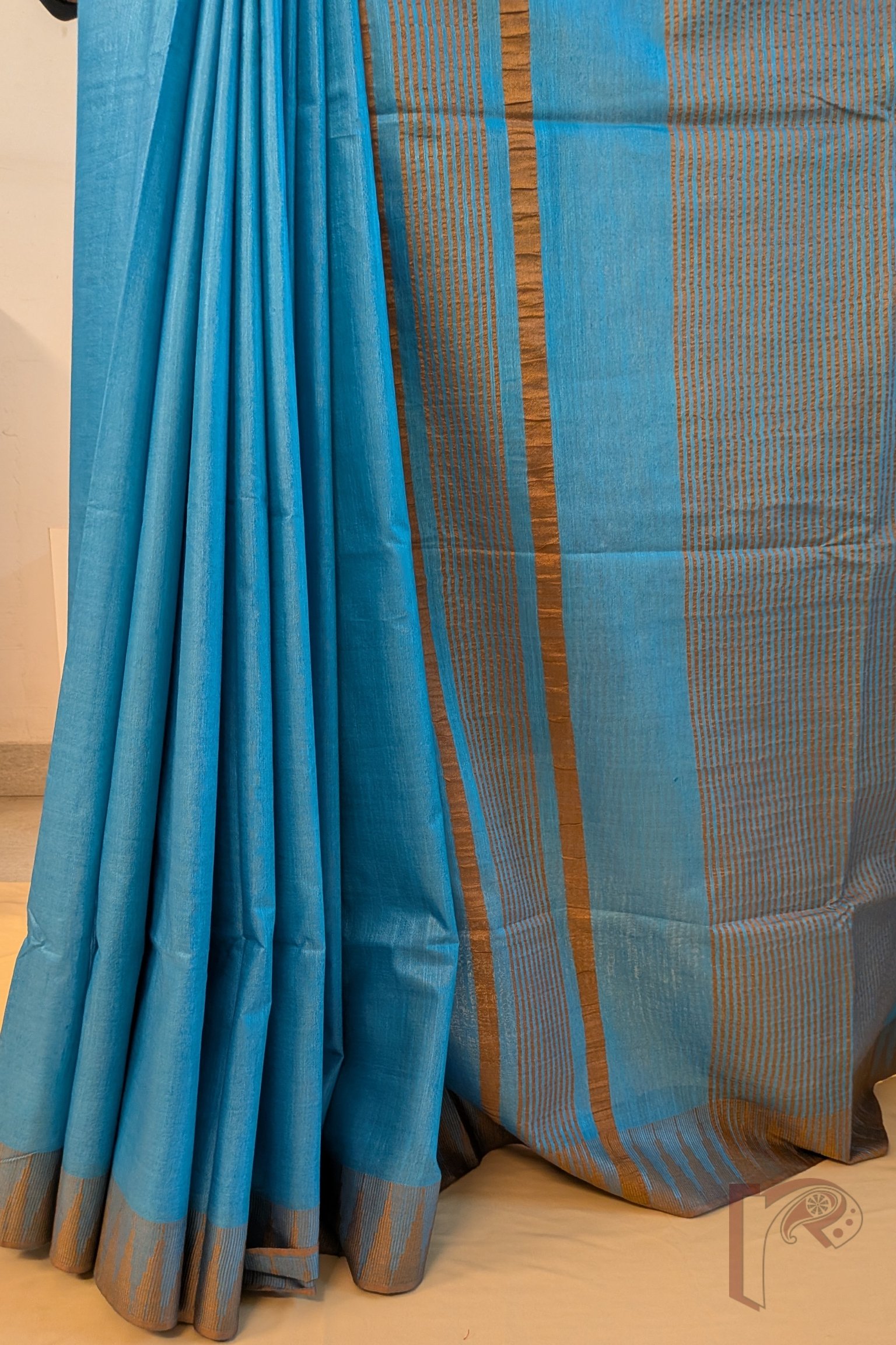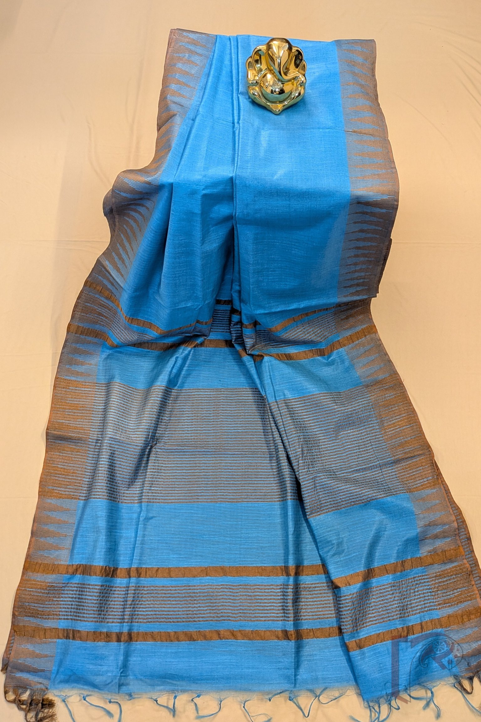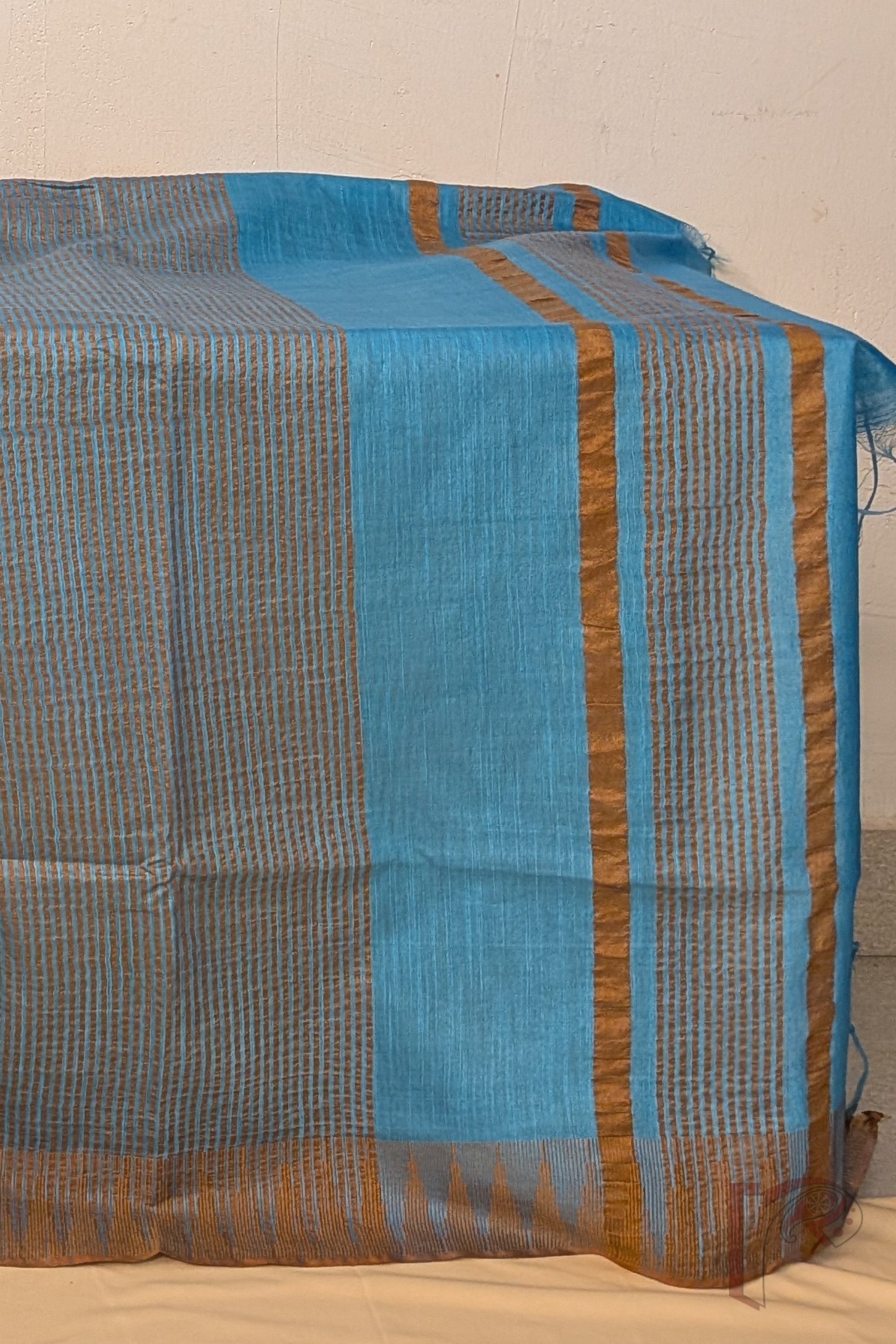 Viscose Vibrance: Blue and Fawn Brown Temple Border Kota Viscose Saree