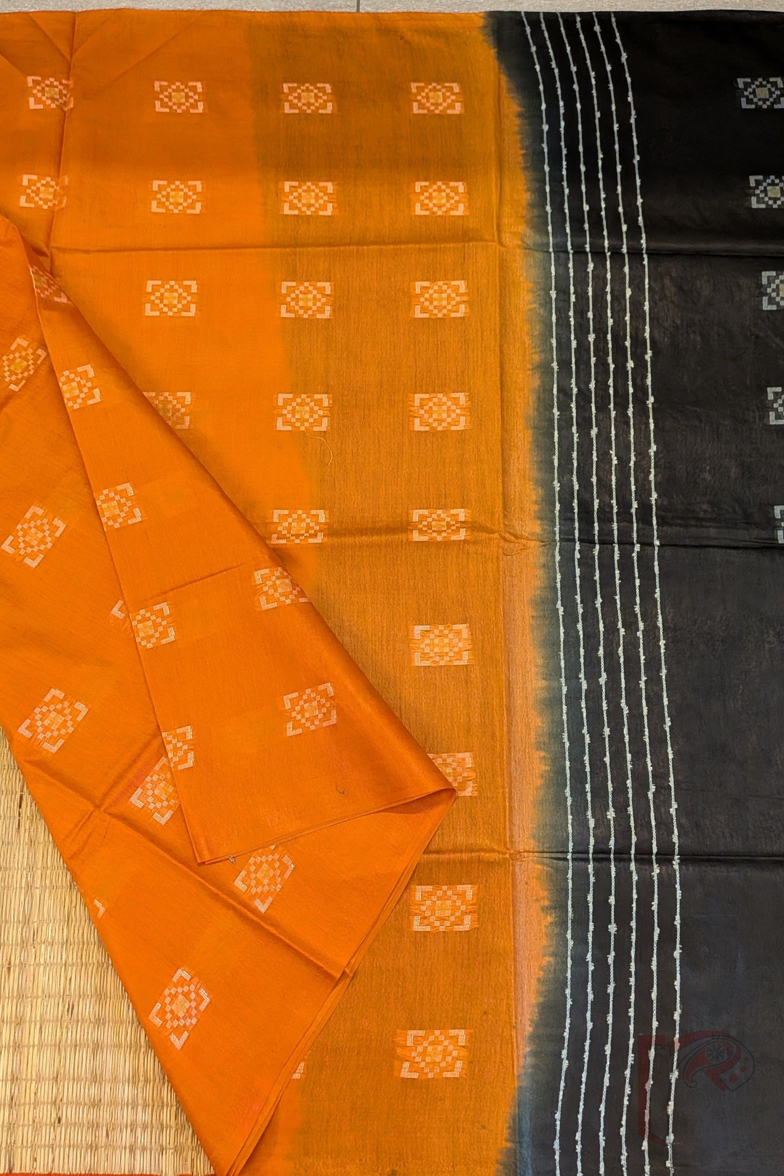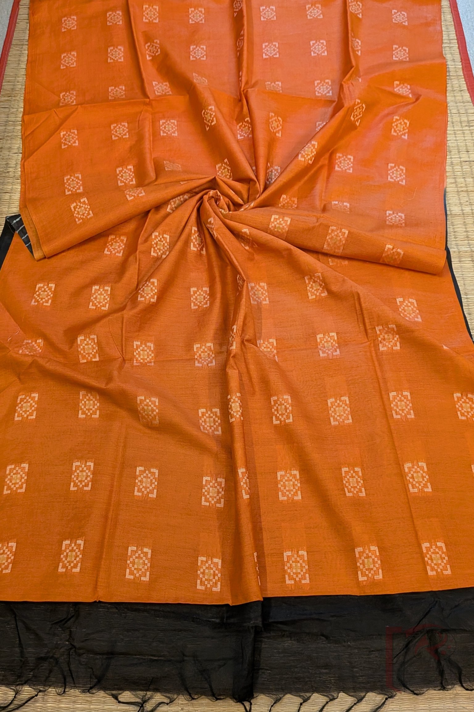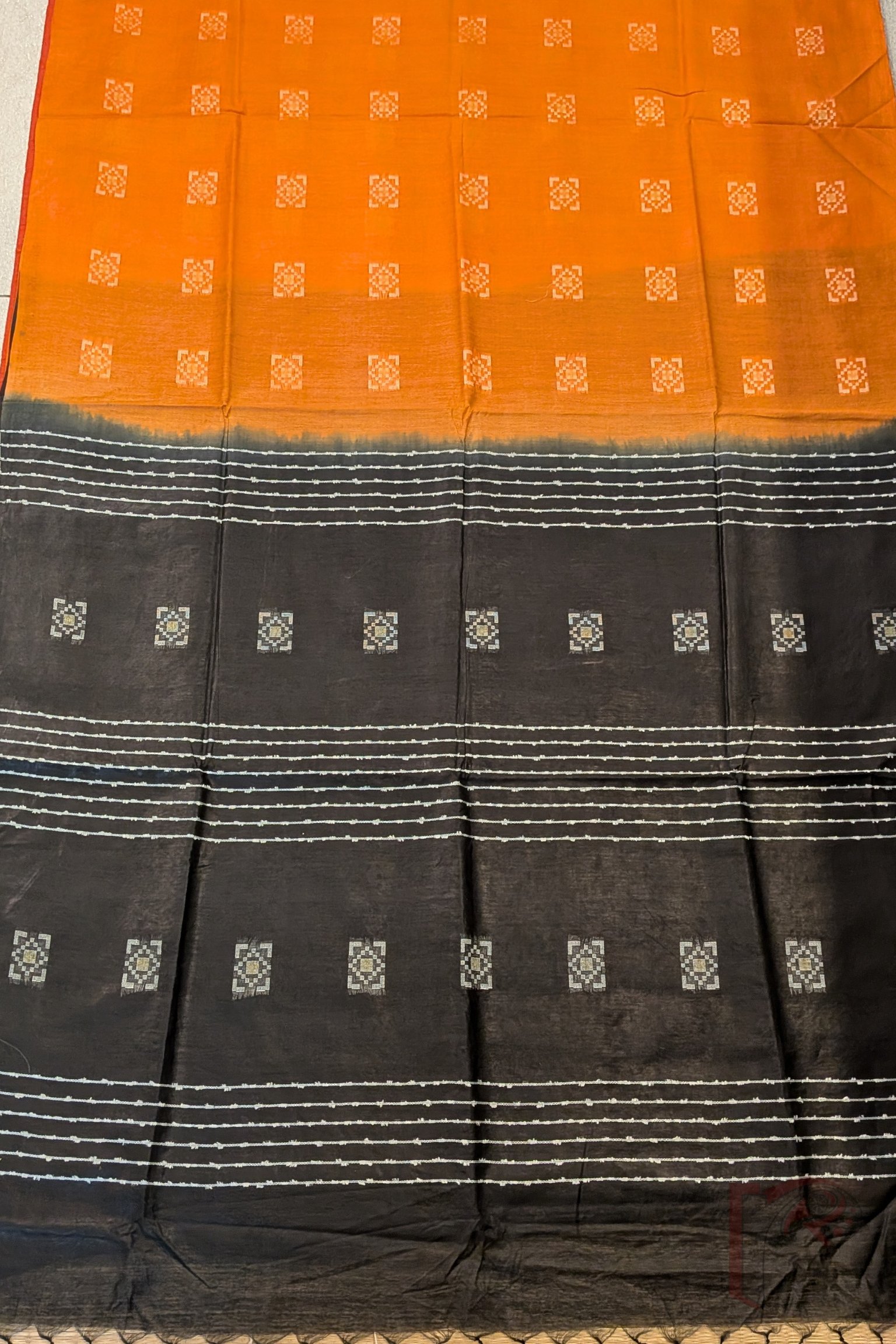 Viscose Vibrance: Bright Orange and Black Geometrical Embroidery Kota Viscose Saree