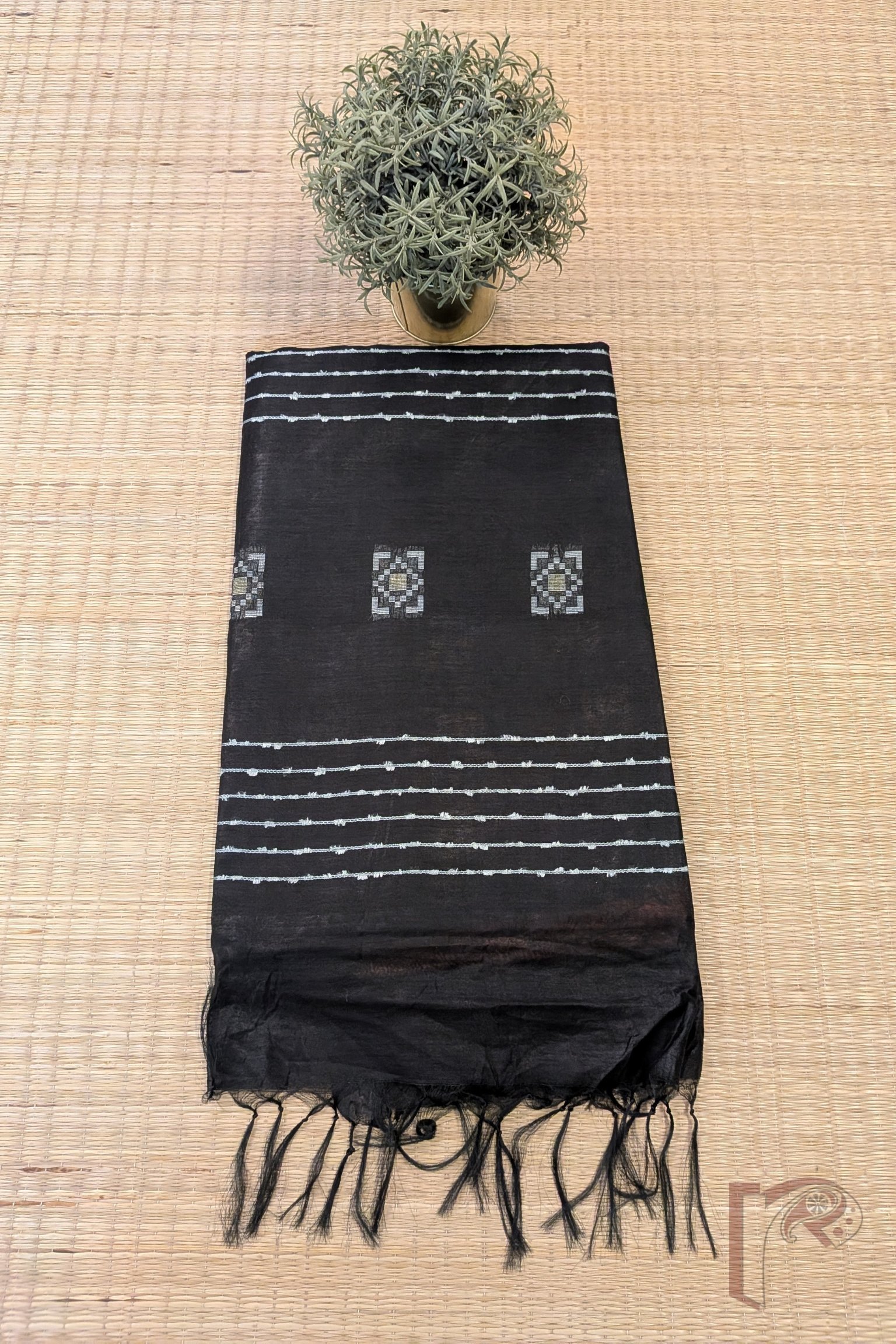 Bold and lively, the Bright Orange and Black Geometrical Embroidery Kota Viscose Saree is a true head-turner. The orange body is covered with intricate dull white and yellow geometric embroidery, bringing dimension and light to the weave. Its black pallu with white stripe detailing provides a striking contrast, while the plain black blouse completes this elegant composition. The light, breathable Kota viscose fabric ensures that every fold flows beautifully, making it an ideal choice for festive occasions and celebrations that call for vibrant sophistication.