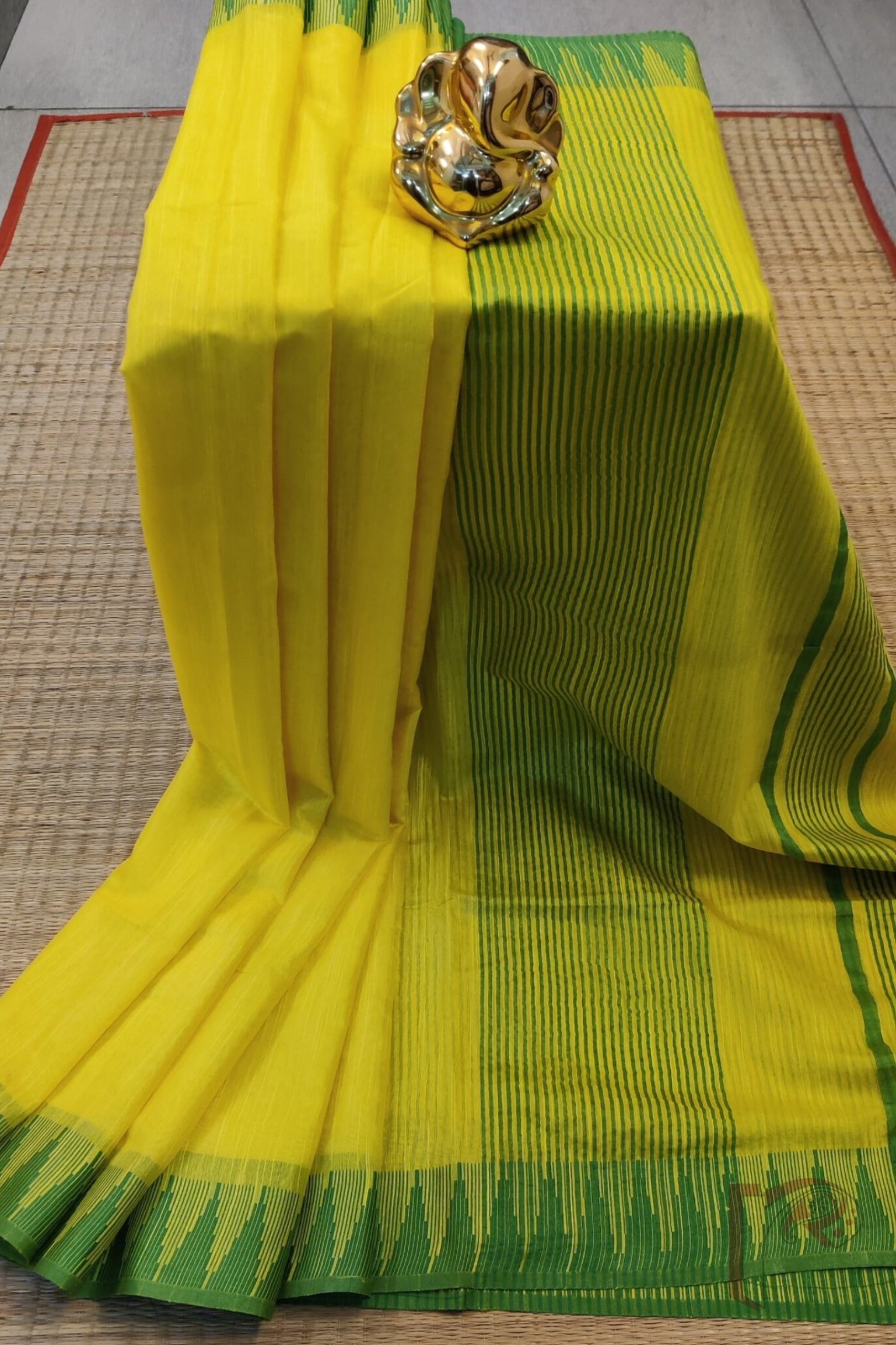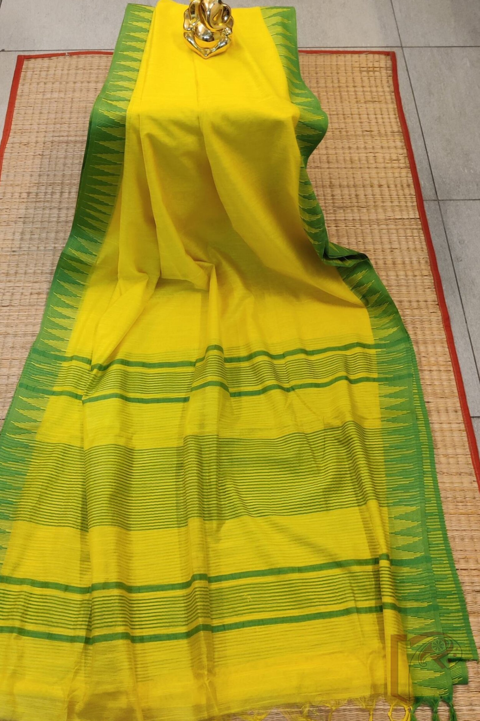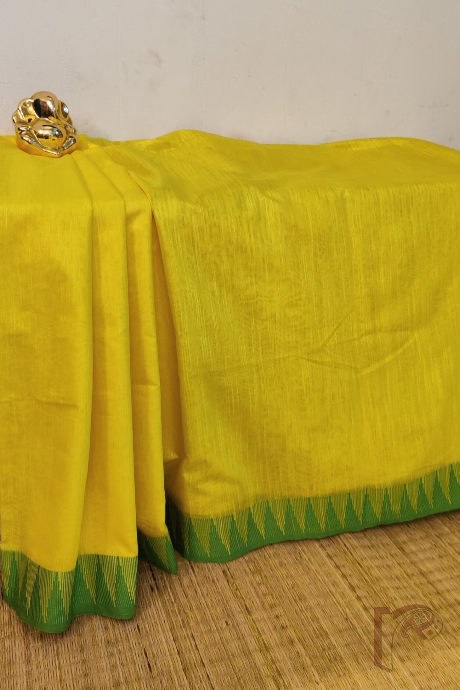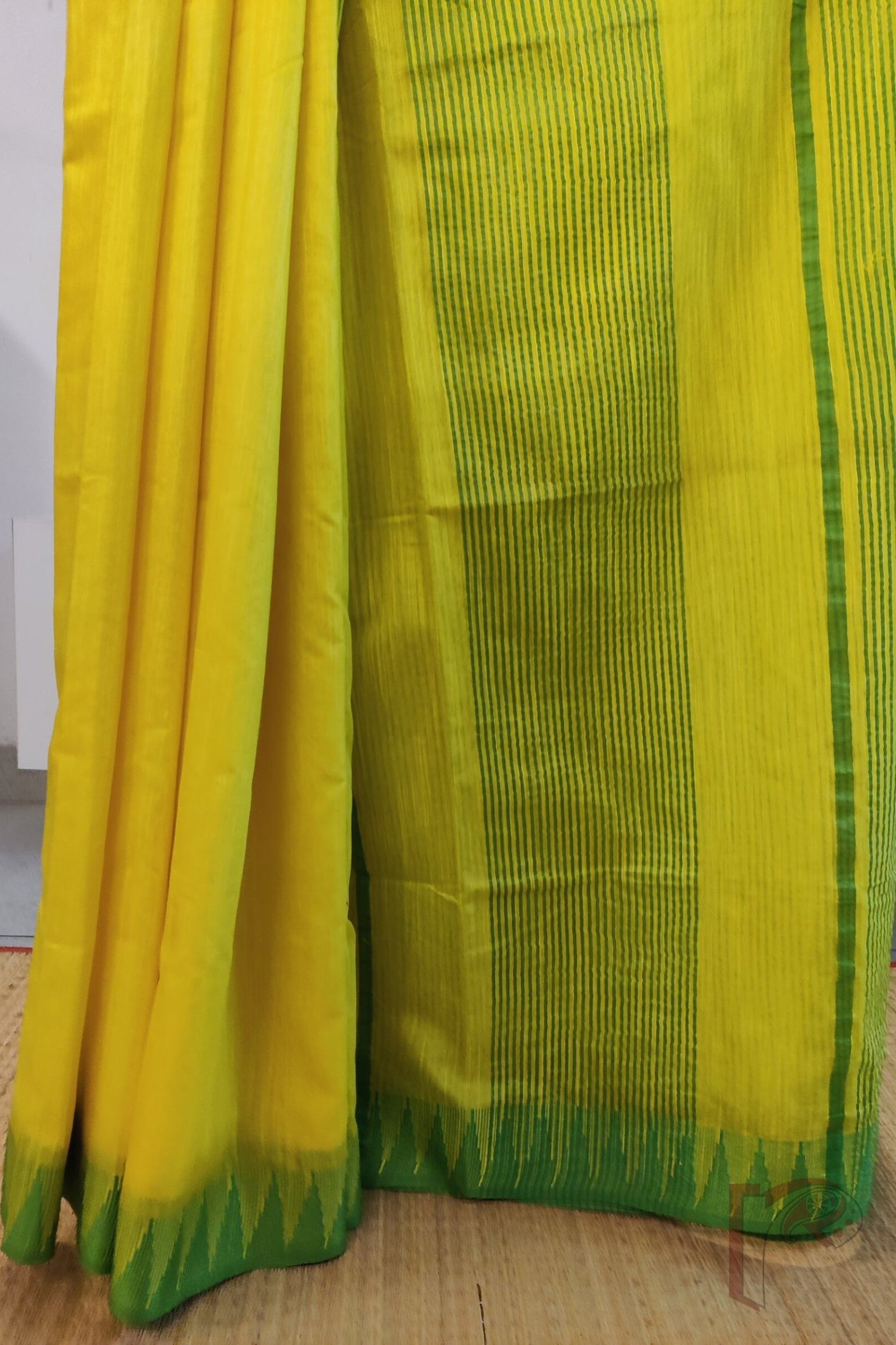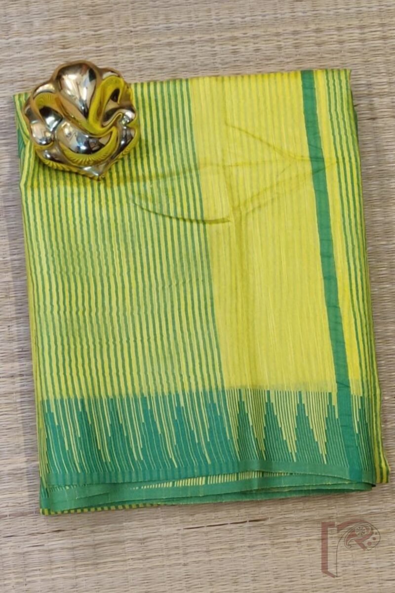 Viscose Vibrance: Lemon Yellow and Parrot Green Temple Border Kota Viscose Saree