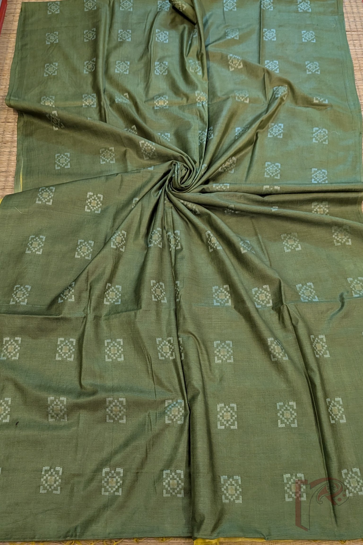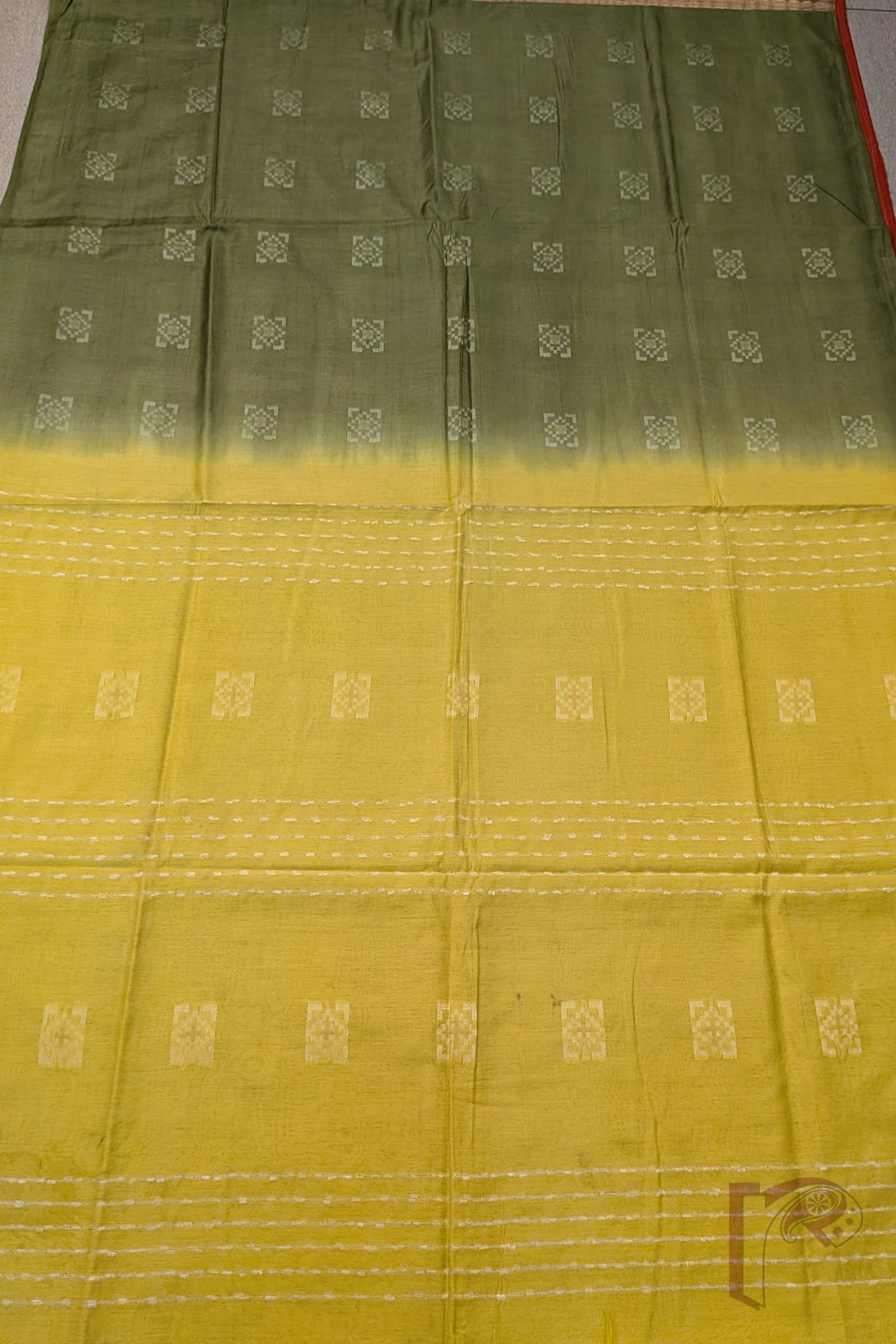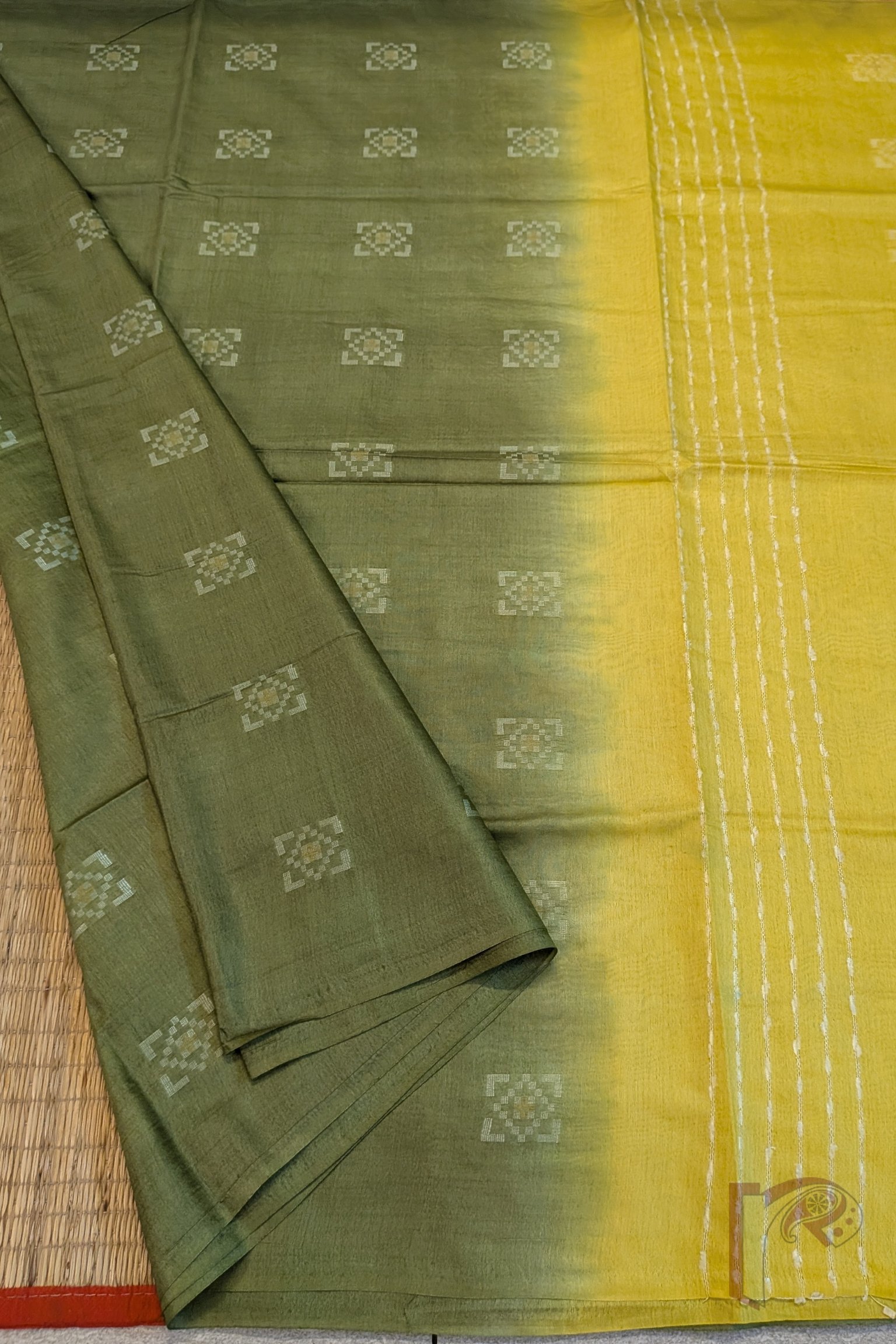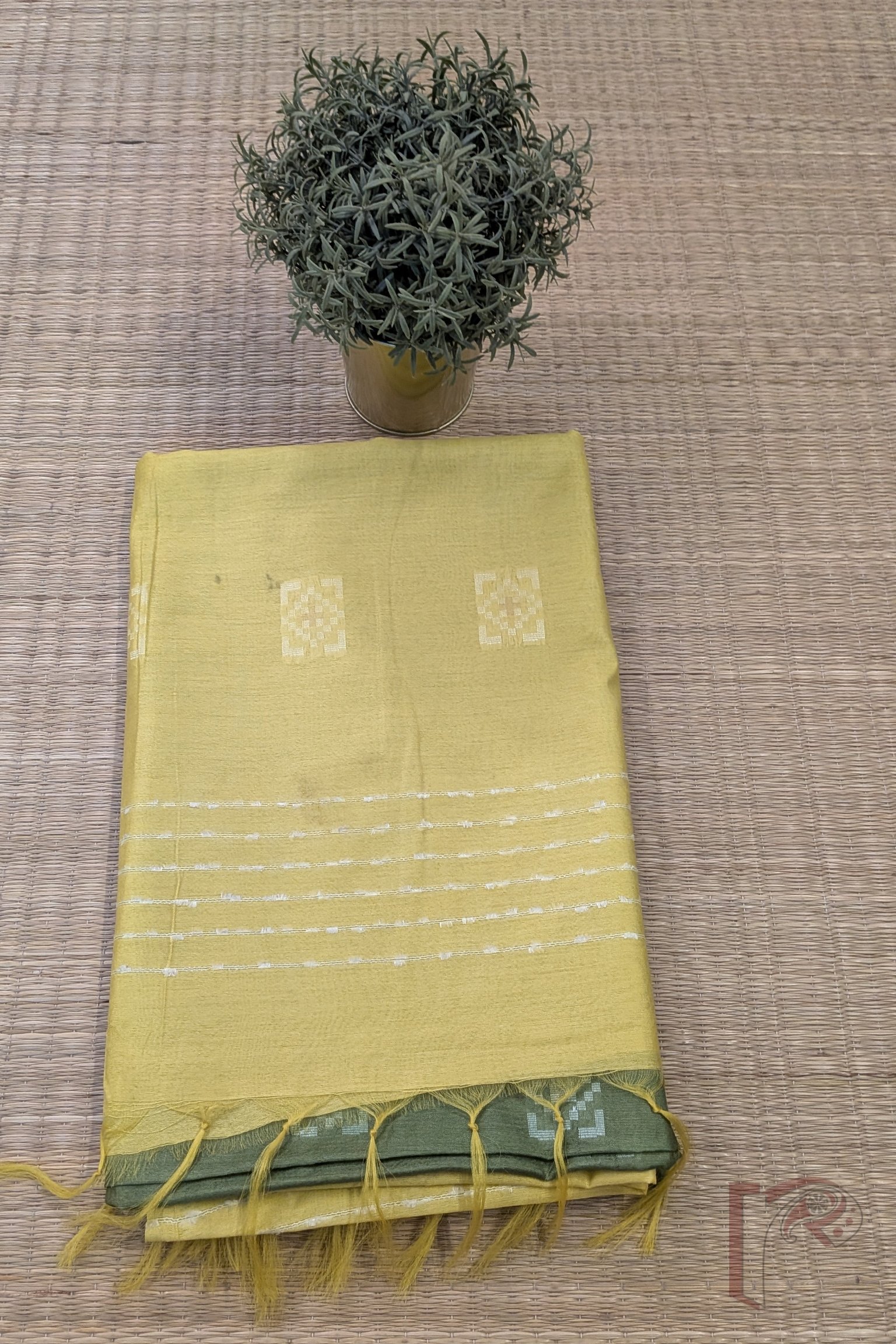 Viscose Vibrance: Mehandi Green and Lemon Yellow Geometrical Embroidery Kota Viscose Saree