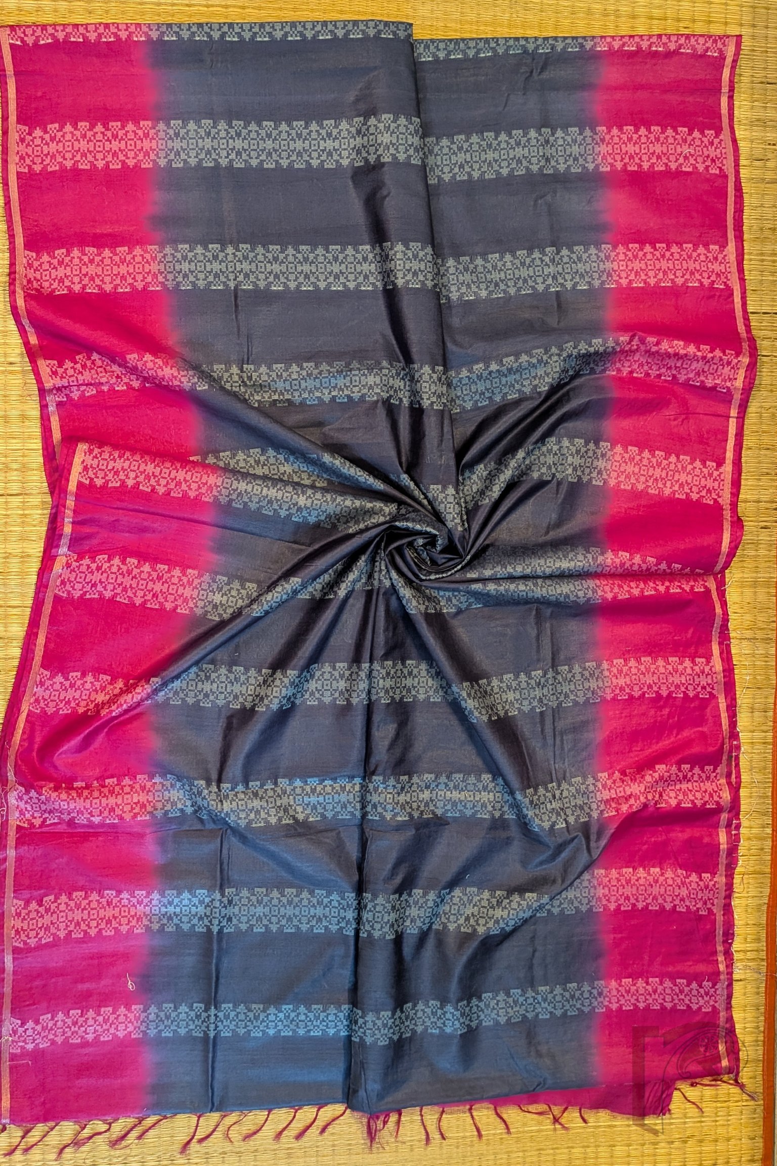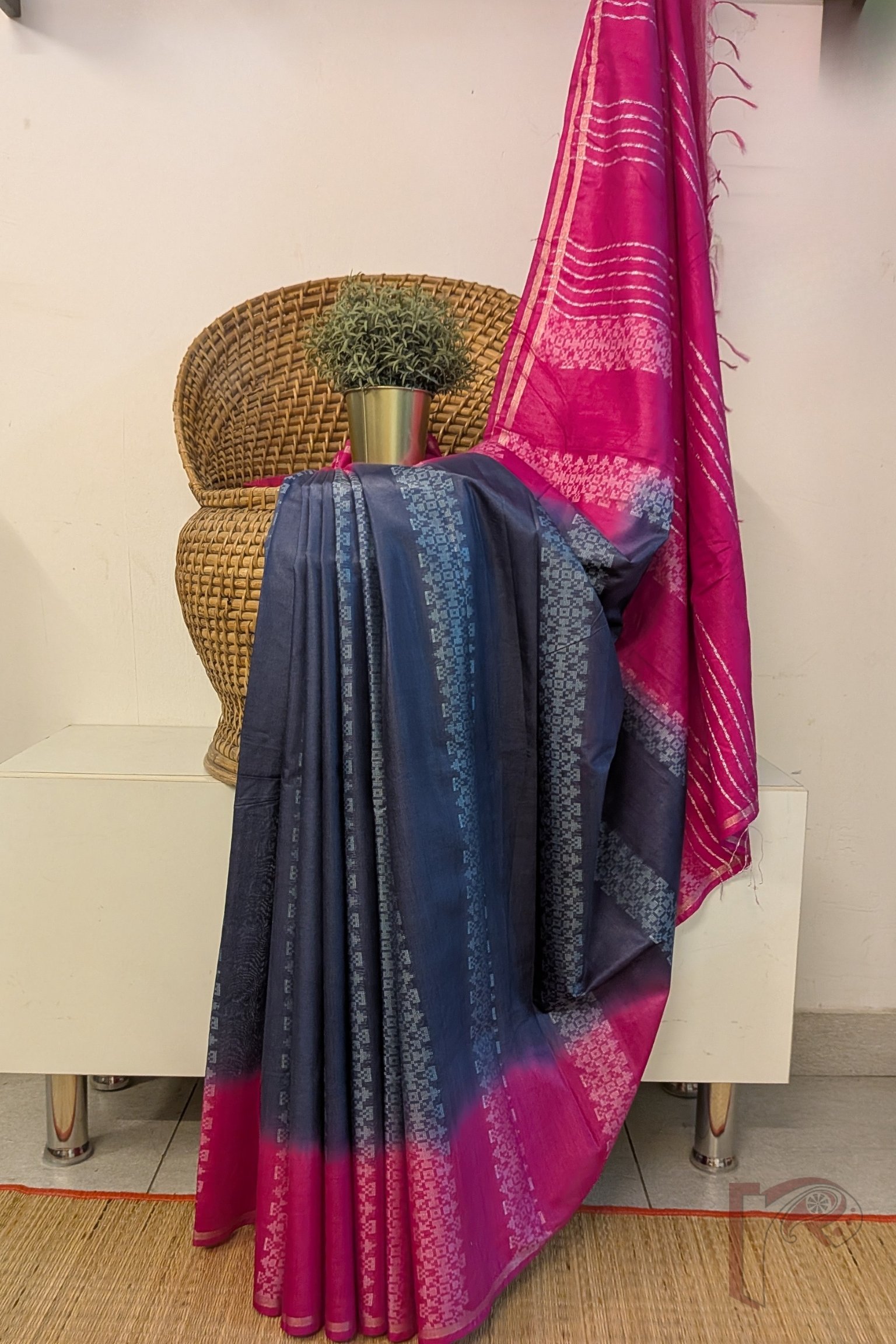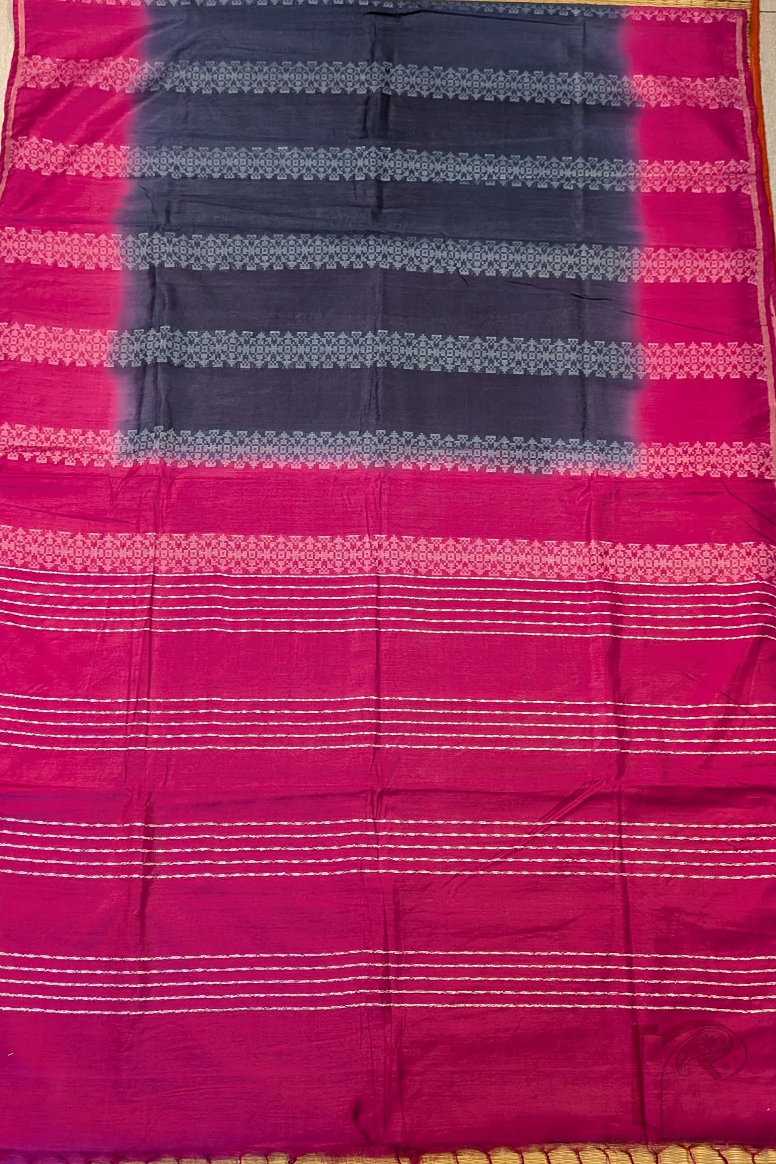 Viscose Vibrance: Navy Blue and Bright Pink Linear Embroidery Kota Viscose Saree