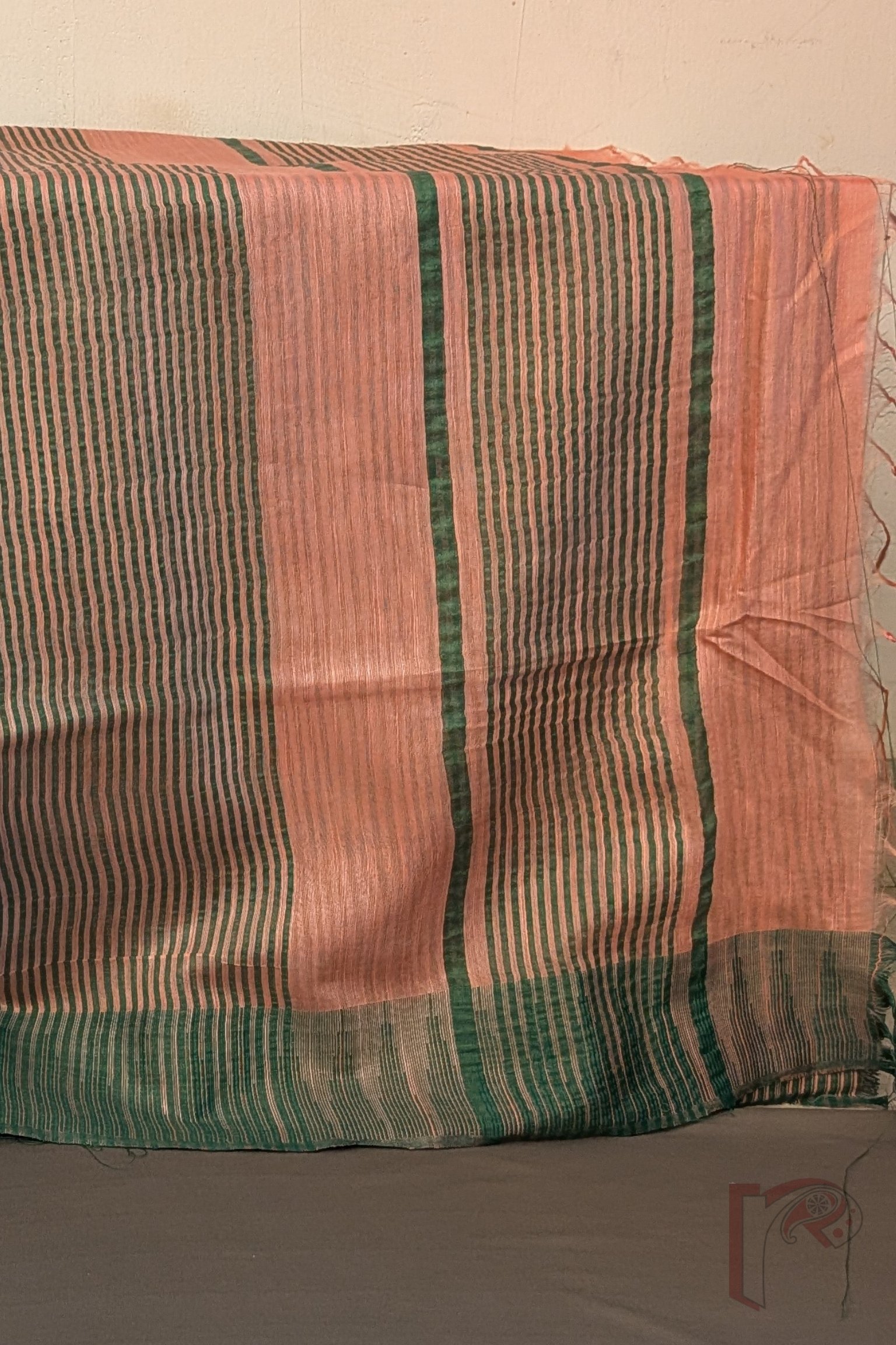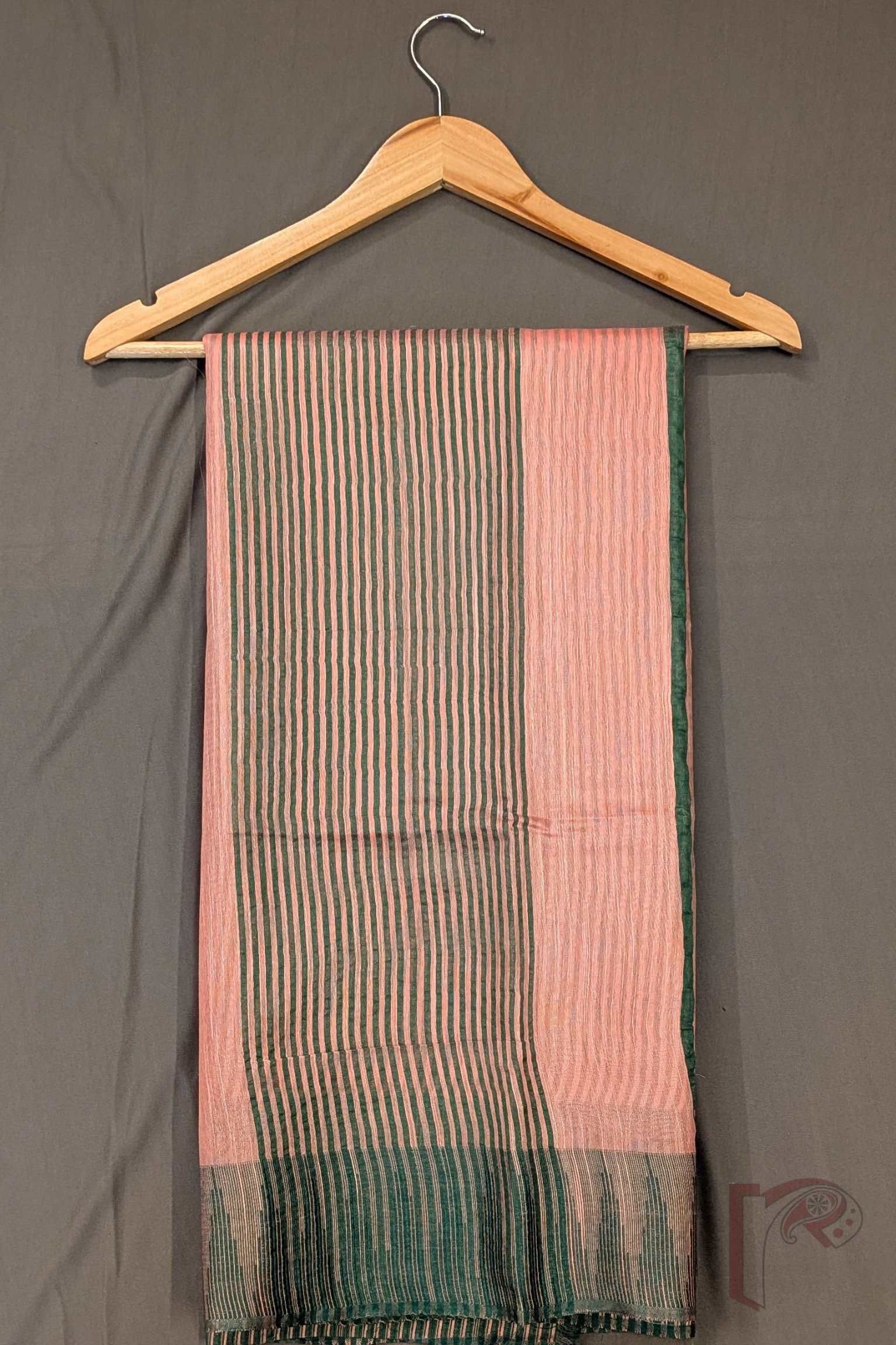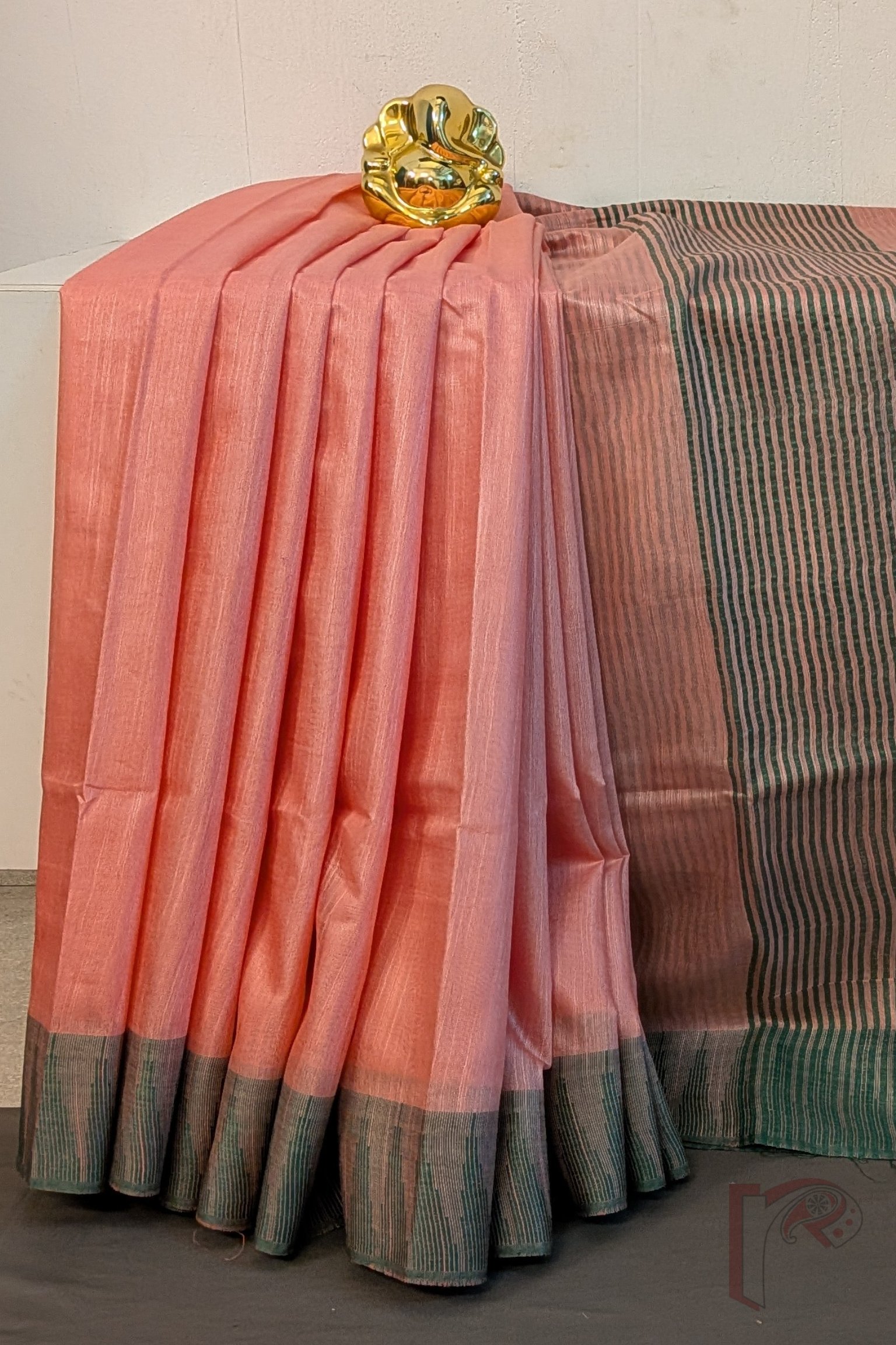 Viscose Vibrance: Peachish Pink and Green Temple Border Kota Viscose Saree