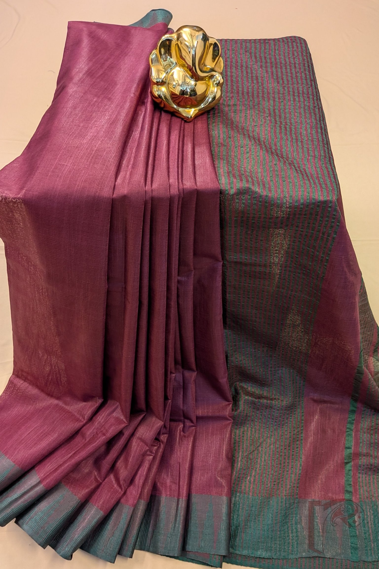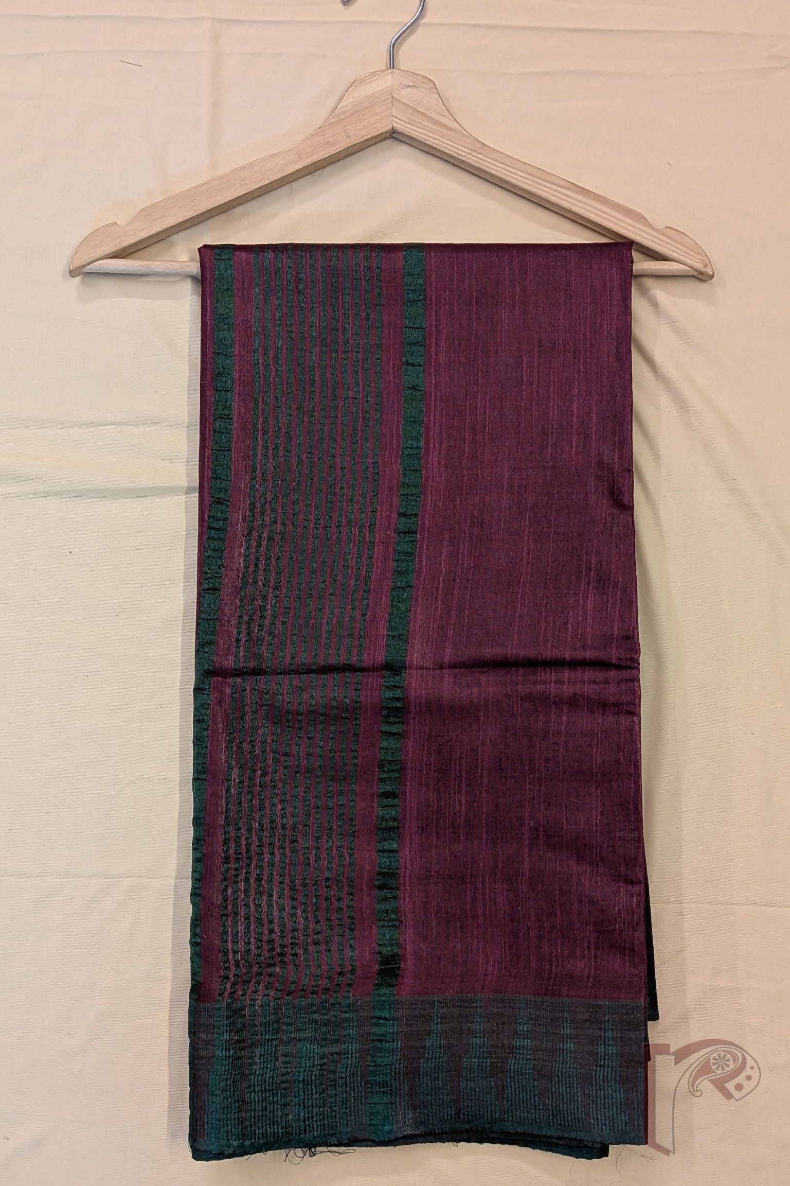Graceful and refined, this Wine and Sea Green Temple Border Kota Viscose Saree exudes quiet luxury. The deep wine-toned plain body is beautifully offset by a contrasting sea green temple border, lending freshness to its rich base. The striped pallu and blouse piece in sea green enhance continuity and balance. With its breathable Kota viscose fabric, this saree drapes effortlessly, making it a perfect choice for cultural occasions, evening events, and elegant celebrations that call for understated sophistication.